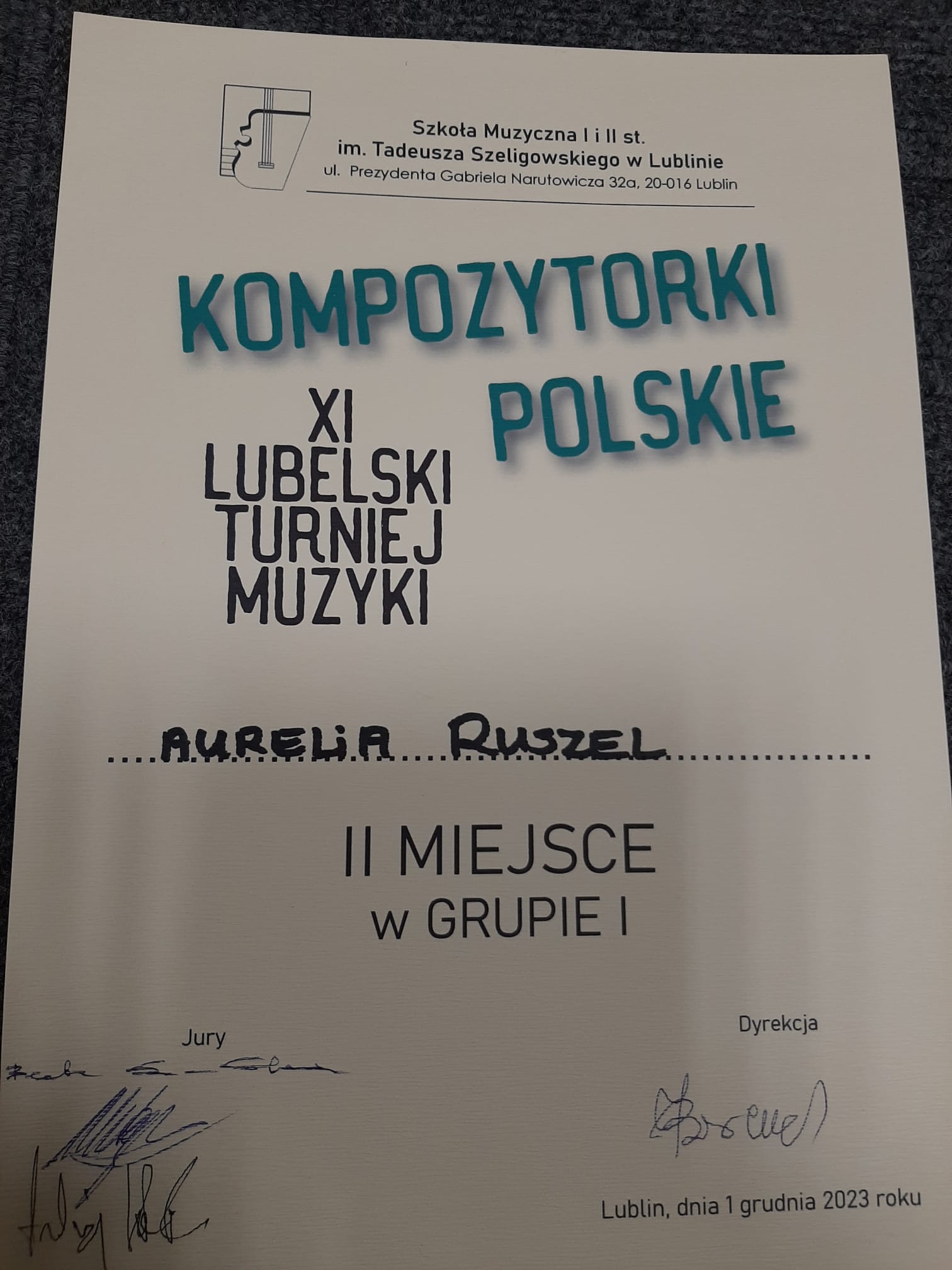 IX Lubelski Turniej Muzyki - 1 grudnia 2023 Aurelia Ruszel - II miejsce. Uczennicę przygotowała Anna Piwko Zdjęcia (3) Pokaż zdjęcie 1 z galerii. Pokaż zdjęcie 2 z galerii. Pokaż zdjęcie 3 z galerii.