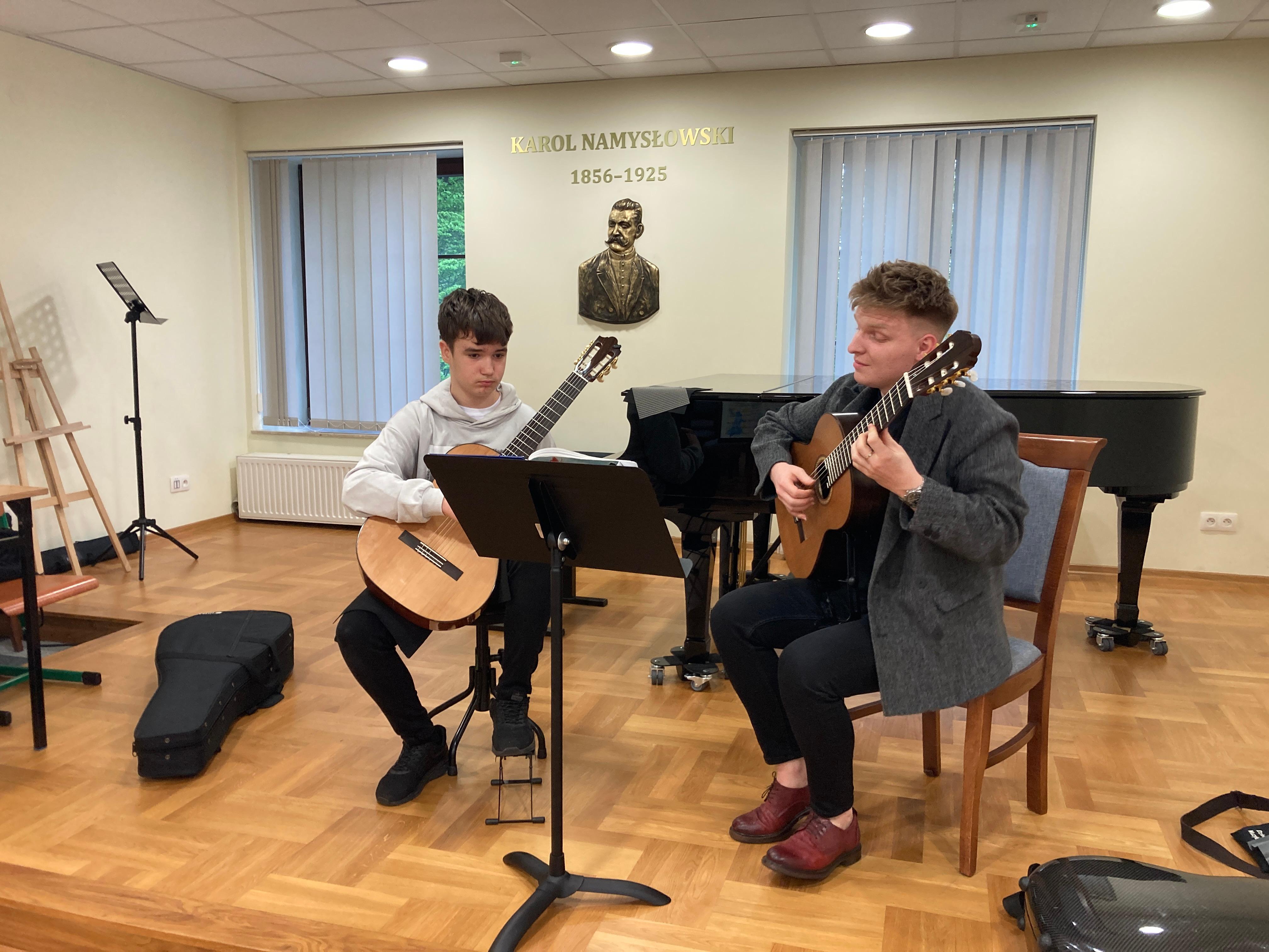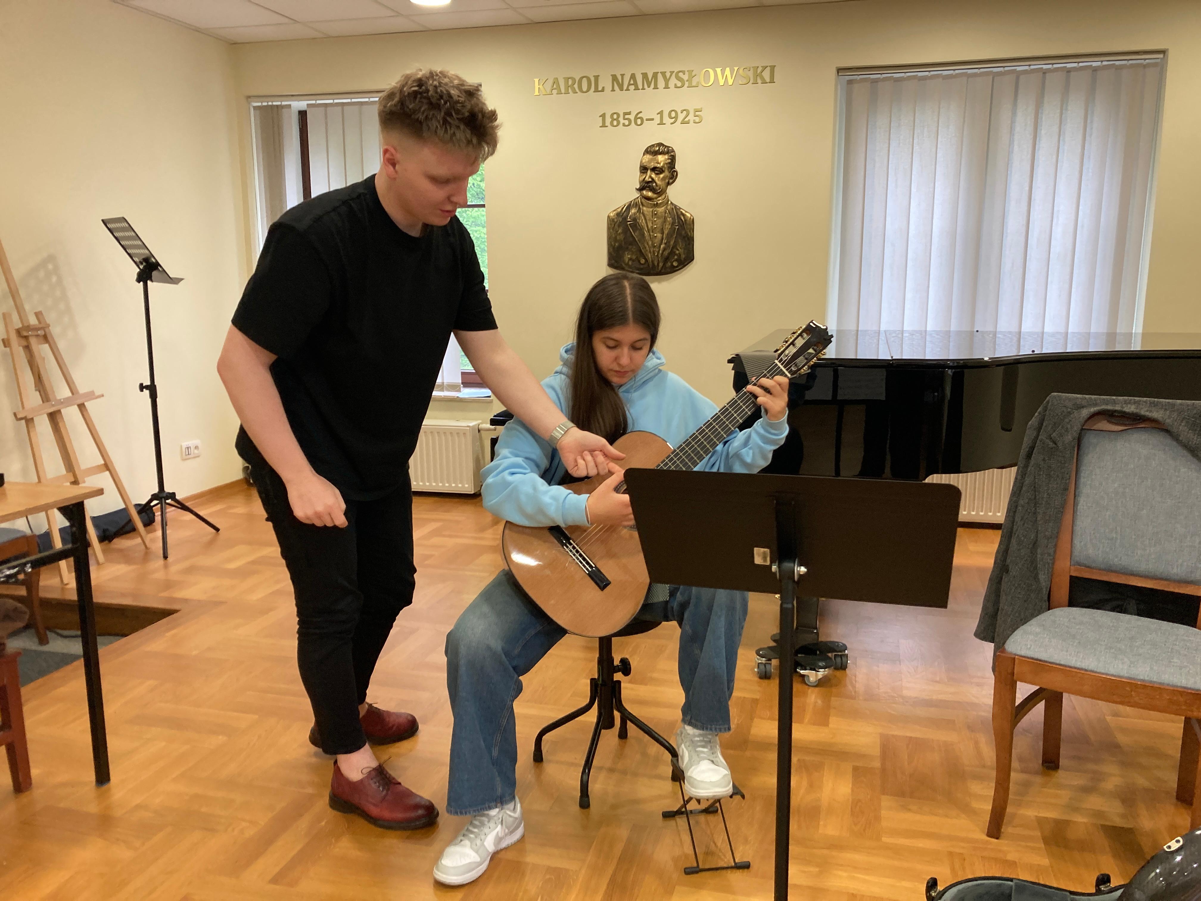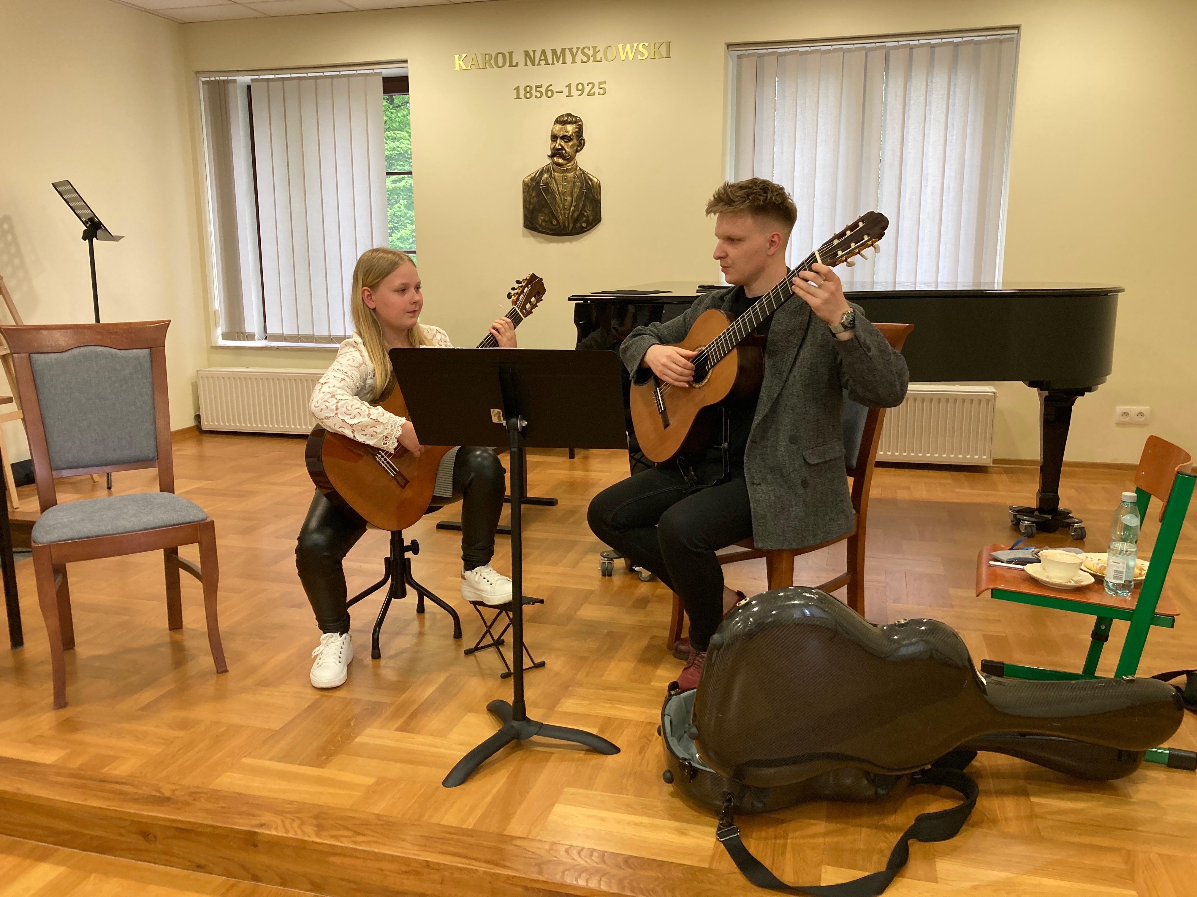 W dn. 15 kwietnia 2024 w naszej szkole odbyły się warsztaty gitarowe, które poprowadził pan Mateusz Kowalski - światowej sławy gitarzysta, wirtuoz, wykładowca Uniwersytetu Muzycznego Fryderyka Chopina w Warszawie. Uczniowie z klasy pani Iwony Grabowskiej i pani Beaty Płocharz doskonalili swoje umiejętności i korzystali z wiedzy mistrza. Zwieńczeniem imprezy był piękny koncert Mateusza Kowalskiego, który ujął słuchaczy zapierającymi dech w piersiach interpretacjami.