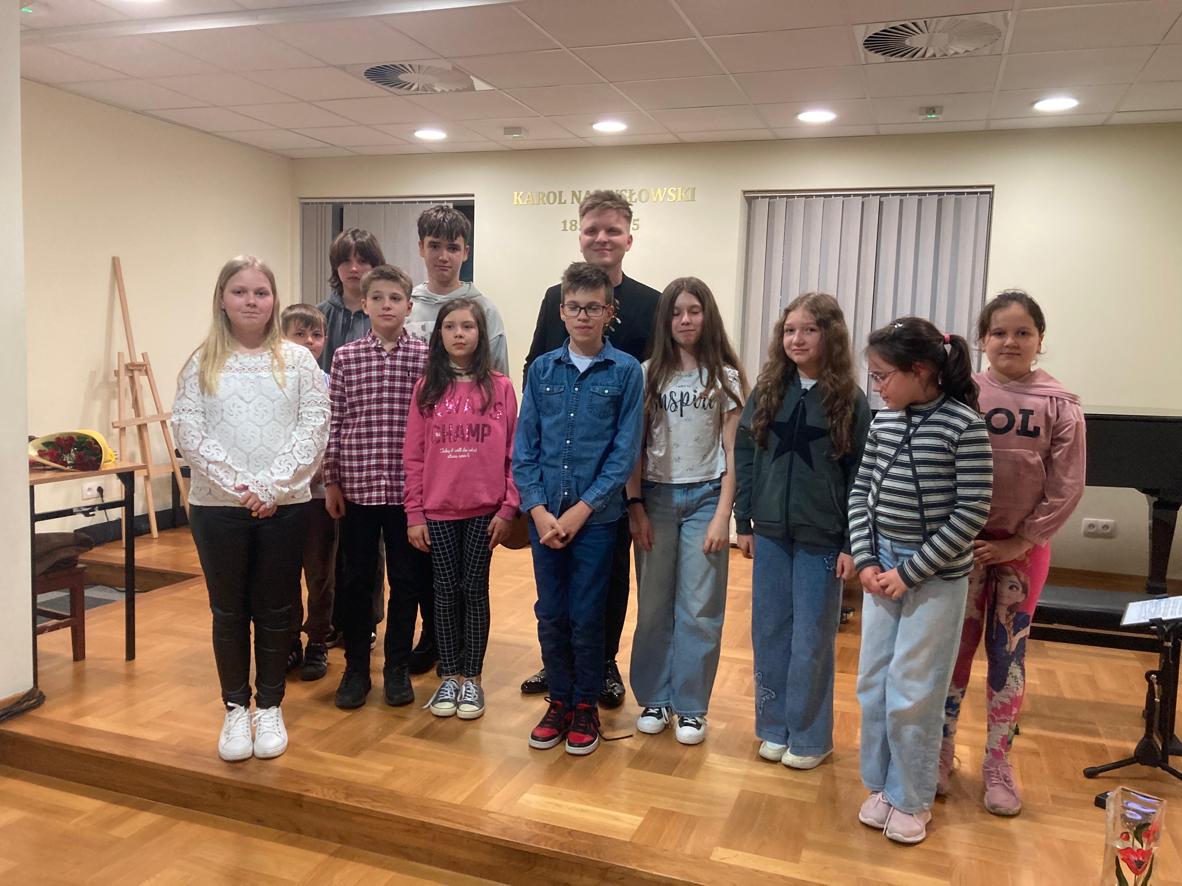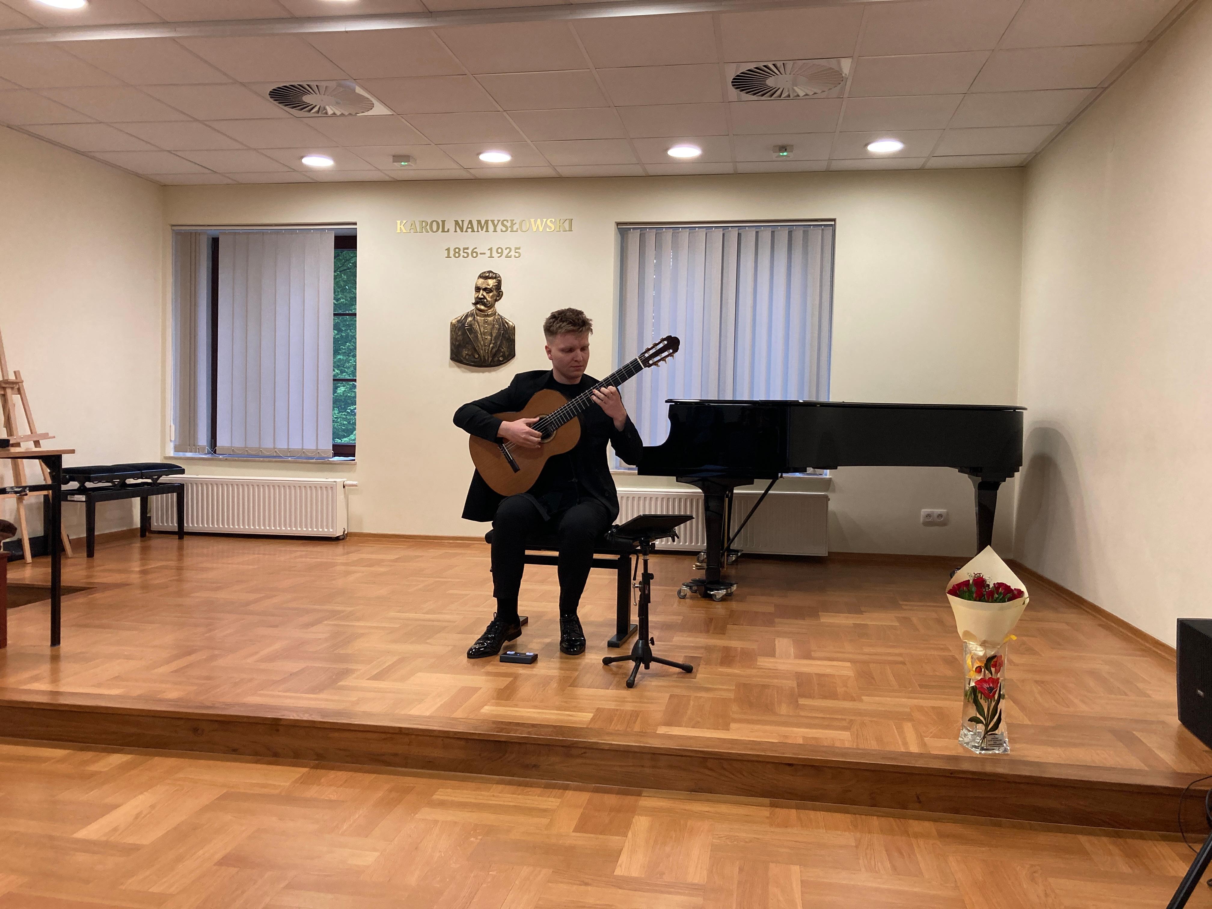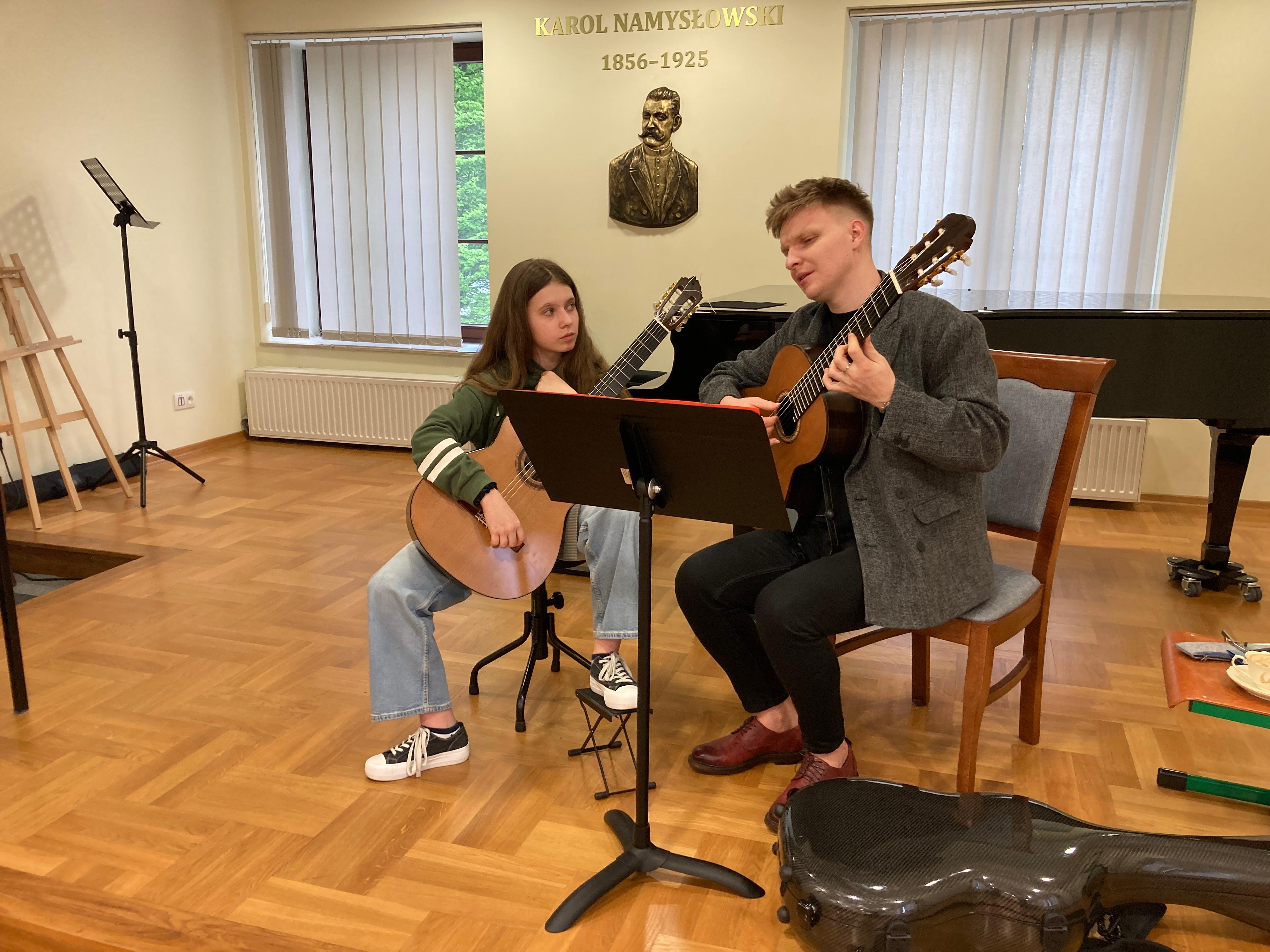 W dn. 15 kwietnia 2024 w naszej szkole odbyły się warsztaty gitarowe, które poprowadził pan Mateusz Kowalski - światowej sławy gitarzysta, wirtuoz, wykładowca Uniwersytetu Muzycznego Fryderyka Chopina w Warszawie. Uczniowie z klasy pani Iwony Grabowskiej i pani Beaty Płocharz doskonalili swoje umiejętności i korzystali z wiedzy mistrza. Zwieńczeniem imprezy był piękny koncert Mateusza Kowalskiego, który ujął słuchaczy zapierającymi dech w piersiach interpretacjami.
