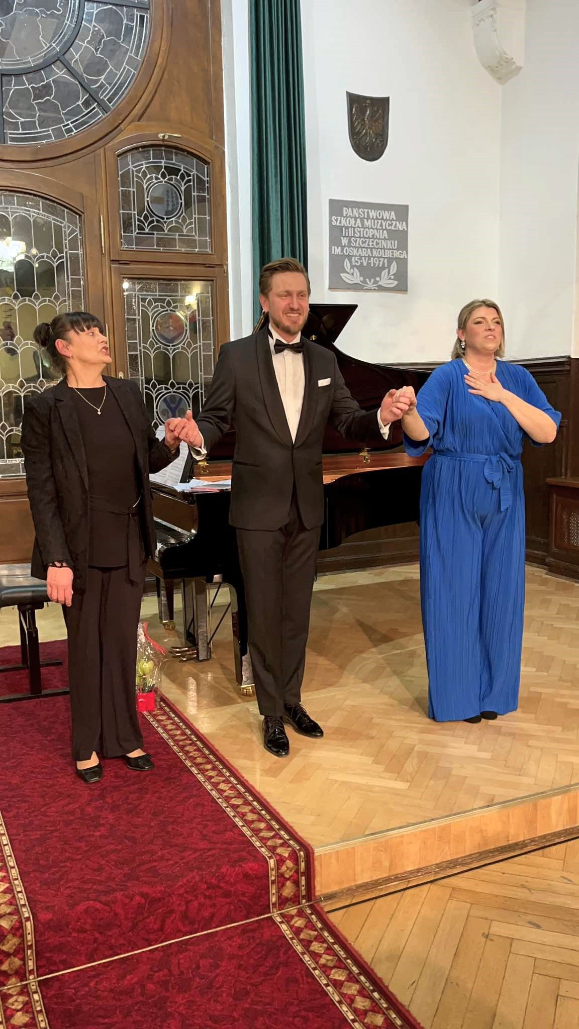 Wieczór poprowadził Anna Jakóbczyk, która nadała mu wyjątkowy klimat i następa w operowo-operetkowym nastroju. Publiczność zachwyciła Magdalena Szuba – nauczycielka śpiewu w naszej szkole, której poruszające się interpretacje trafiły prosto do serc słuchaczy. Niezwykłą energię włączono także Damian Wilma – jego głosy i charyzma porwały wszystkich obecnych. Wyróżniający się dopełniony mistrzowski akompaniament Oleny Ostrolutskiej, która nadała utworom wyjątkowy blask i głębię.
