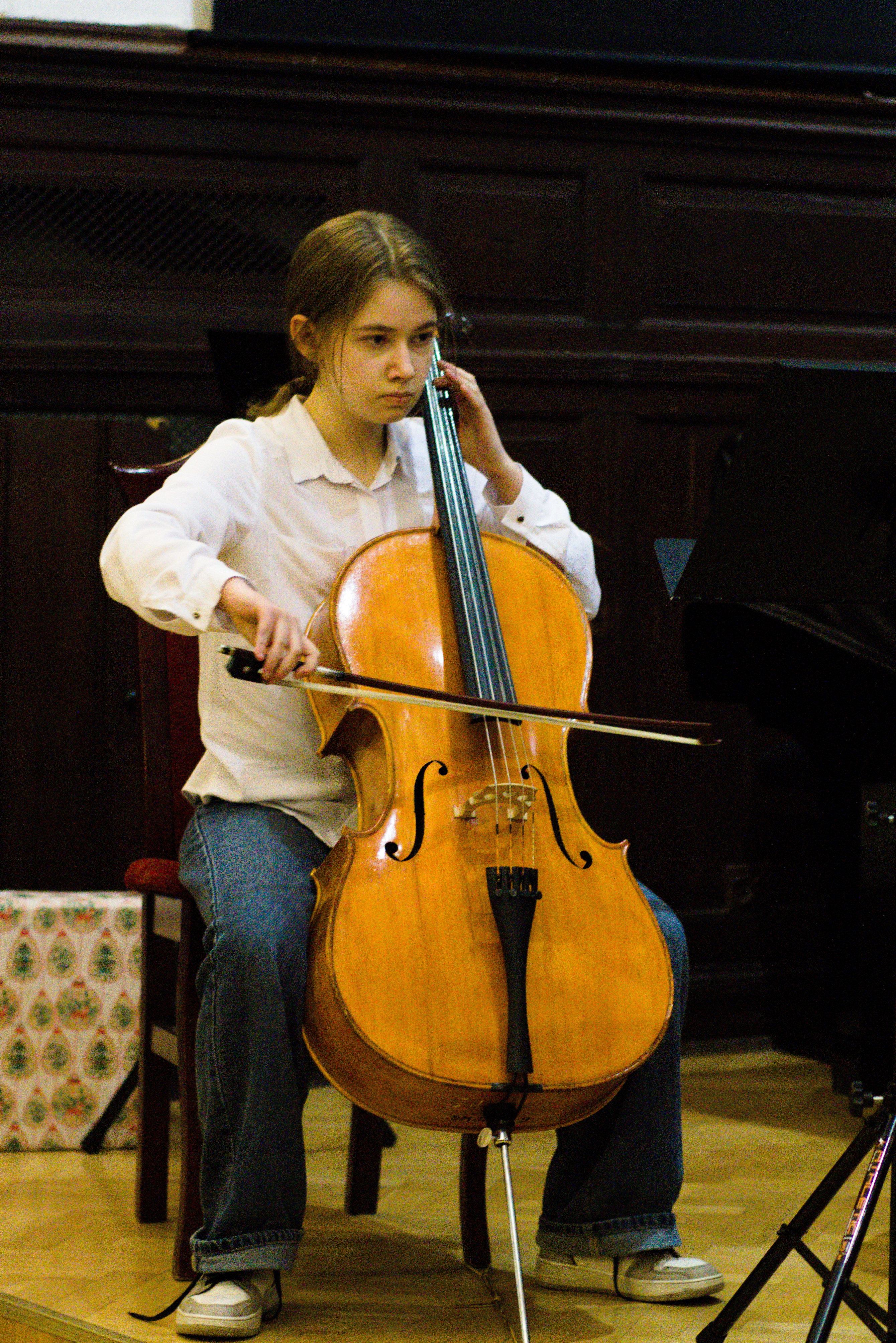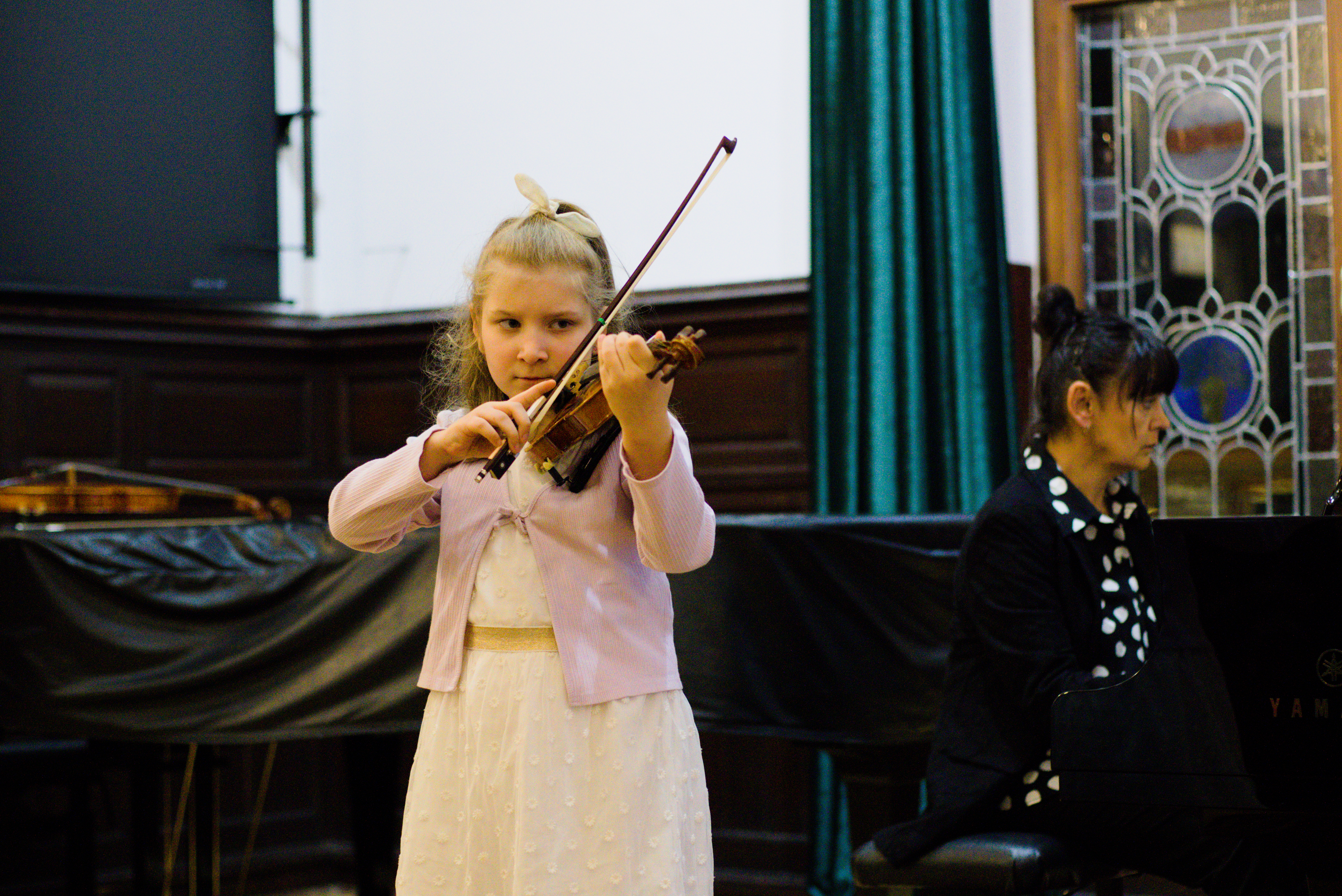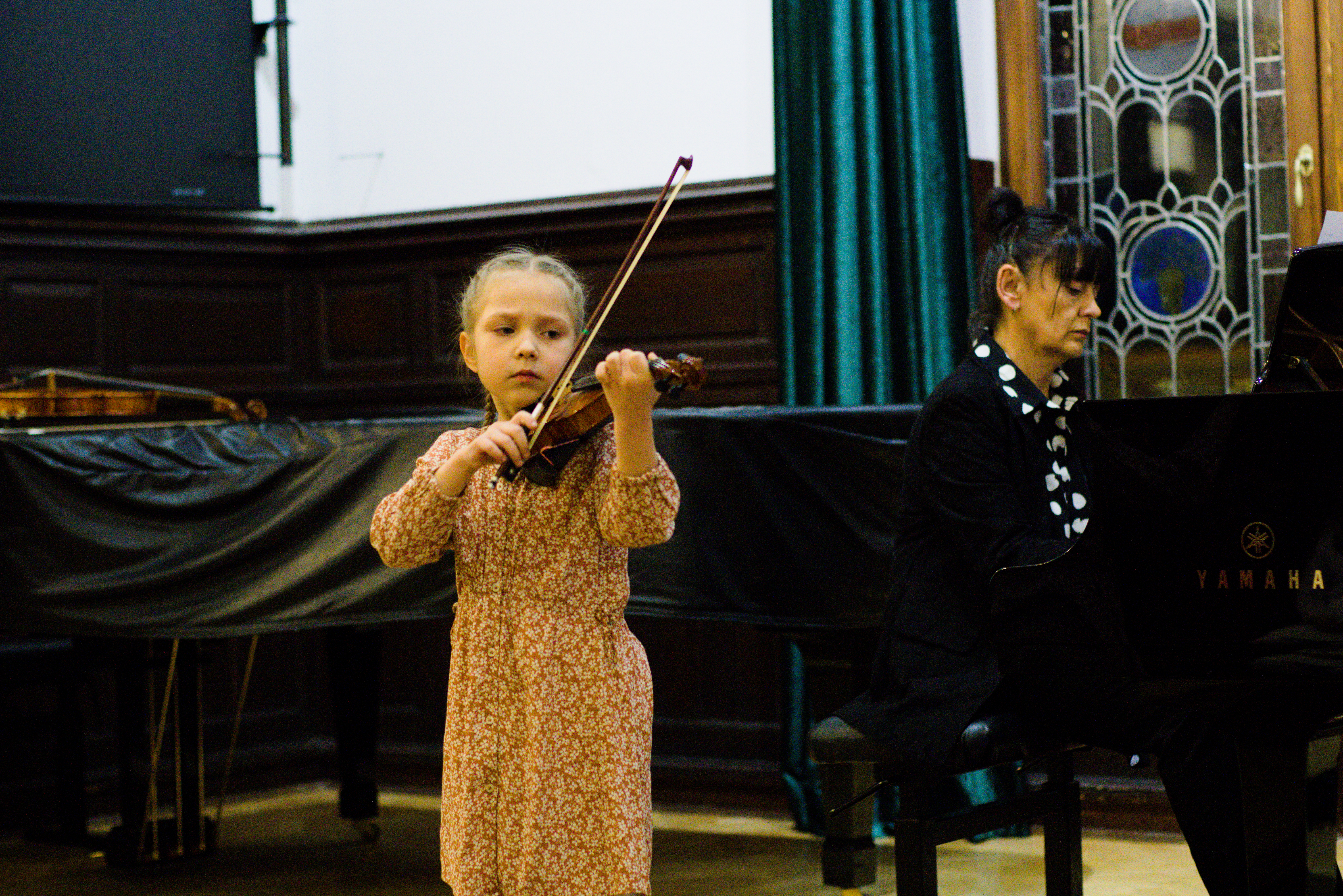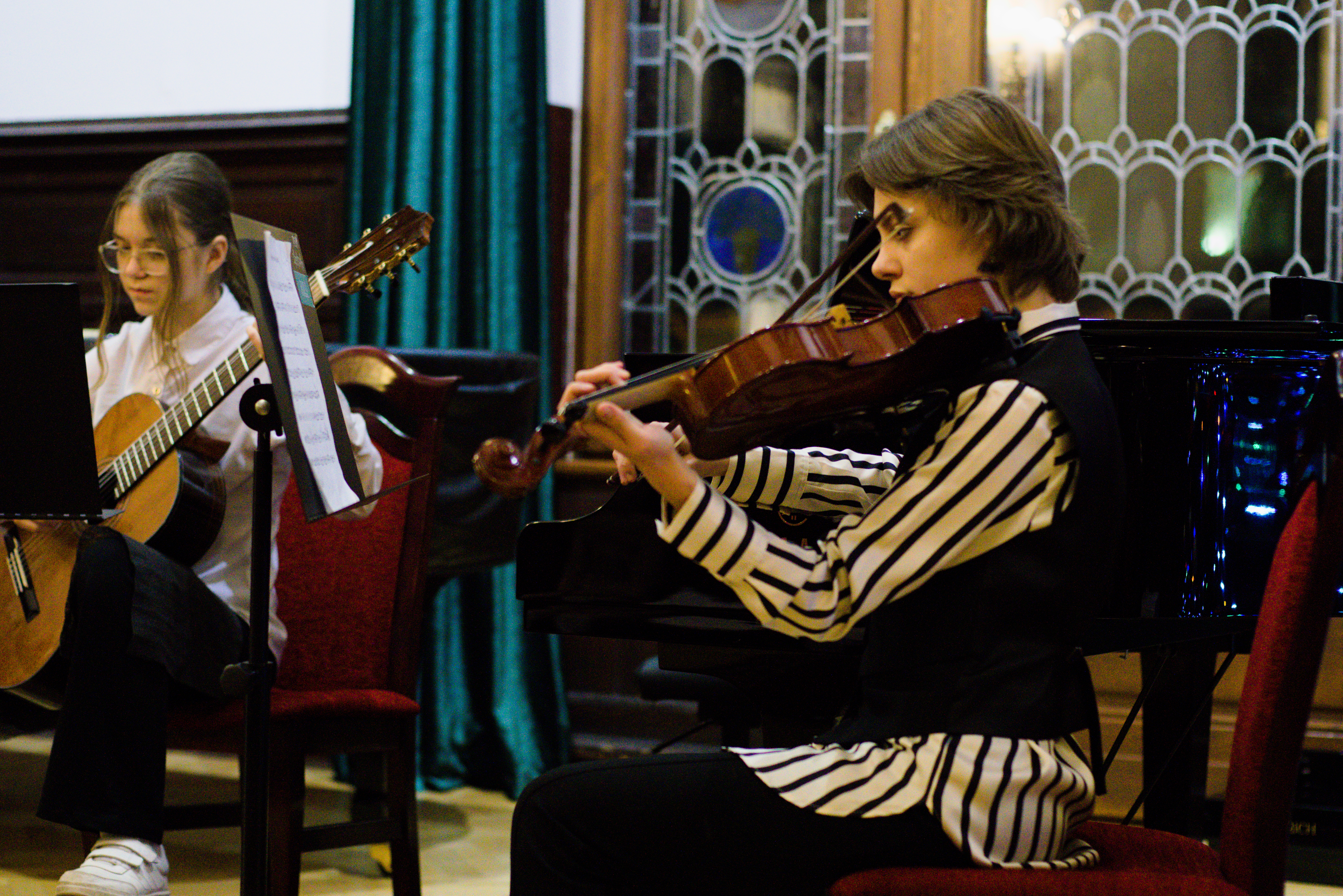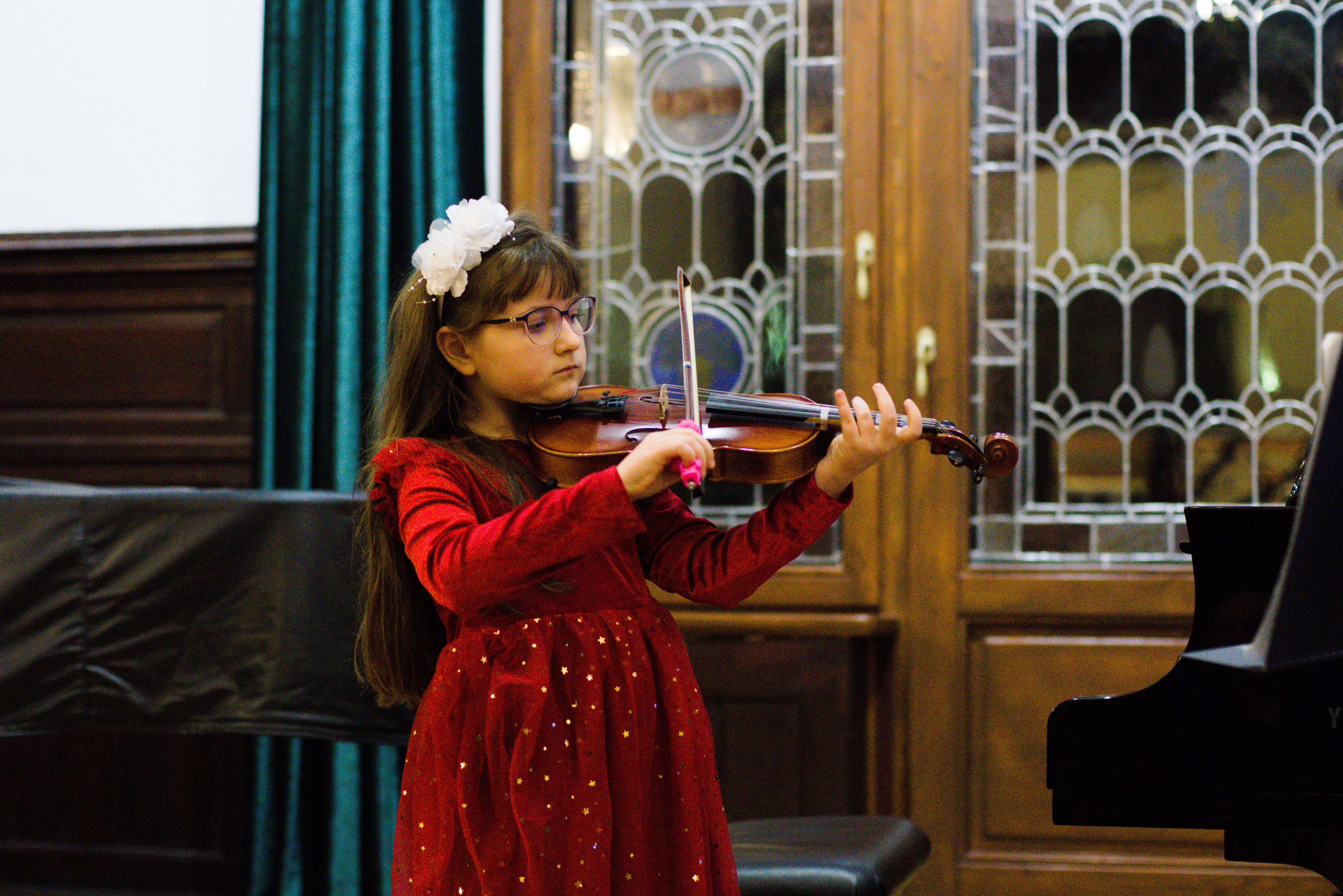 W piątek - 24 stycznia 2025 r. w Auli naszej szkoły odbył się koncert uczniów klas pierwszych i zespołów sekcji strunowej. Było to szczególne wydarzenie przede wszystkim dla najmłodszych uczniów. Mieli oni okazję zaprezentować się po raz pierwszy przed publicznością na scenie. Występom towarzyszyły wielkie emocje! Koncert ubarwiły też prezentacje dwóch zespołów. Uczniów z klasy skrzypiec przygotowały pani Malwina Szczerba i pani Anna Kaleta, a z klasy altówki pani Alicja Słowińska. Przy fortepianie wykonawcom towarzyszyła pani Olena Ostrolutska.