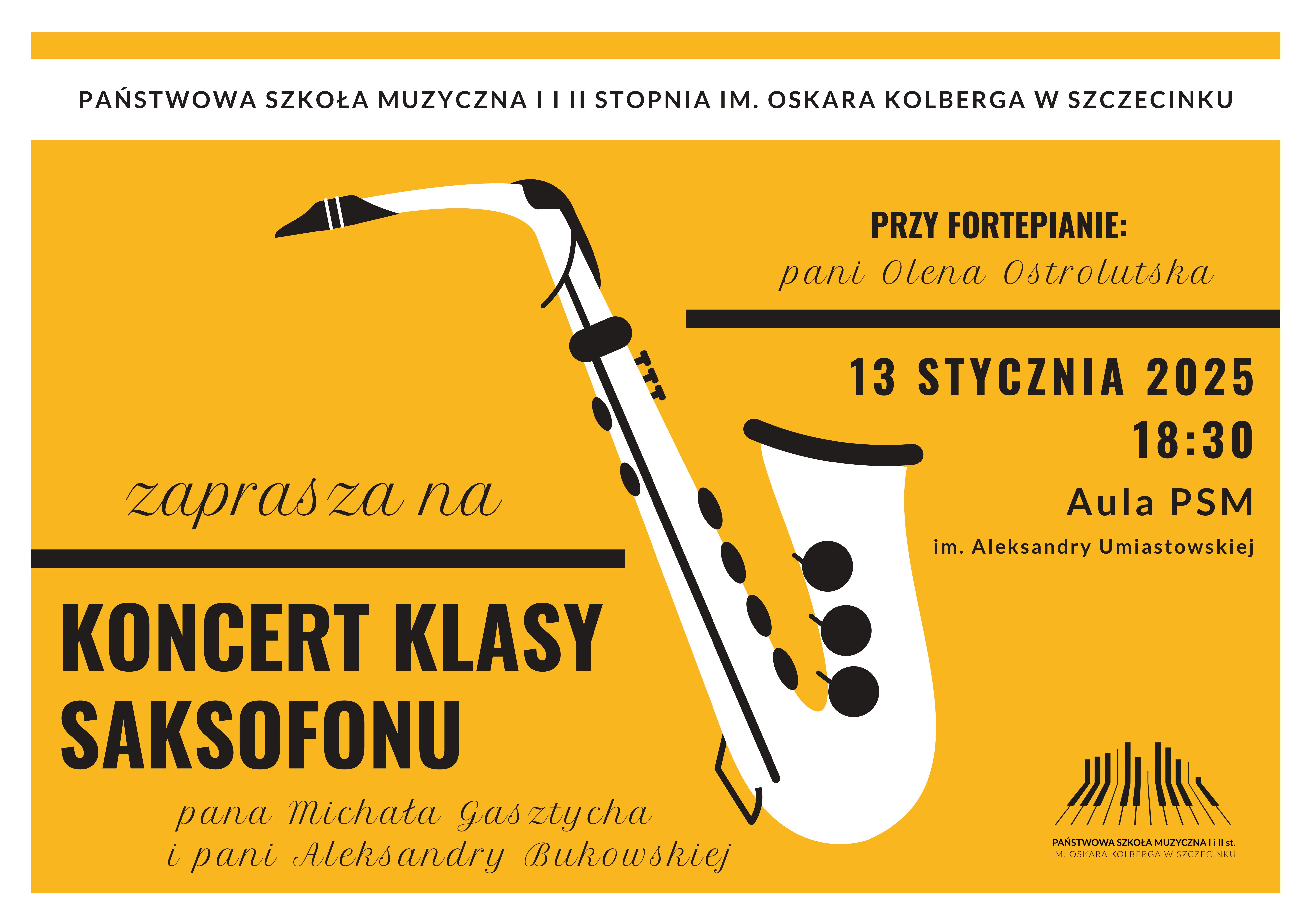 Już 13 stycznia 2025 r, o godzinie 18:30 w Auli PSM wybrzmi wspaniały koncert saksofonowy!