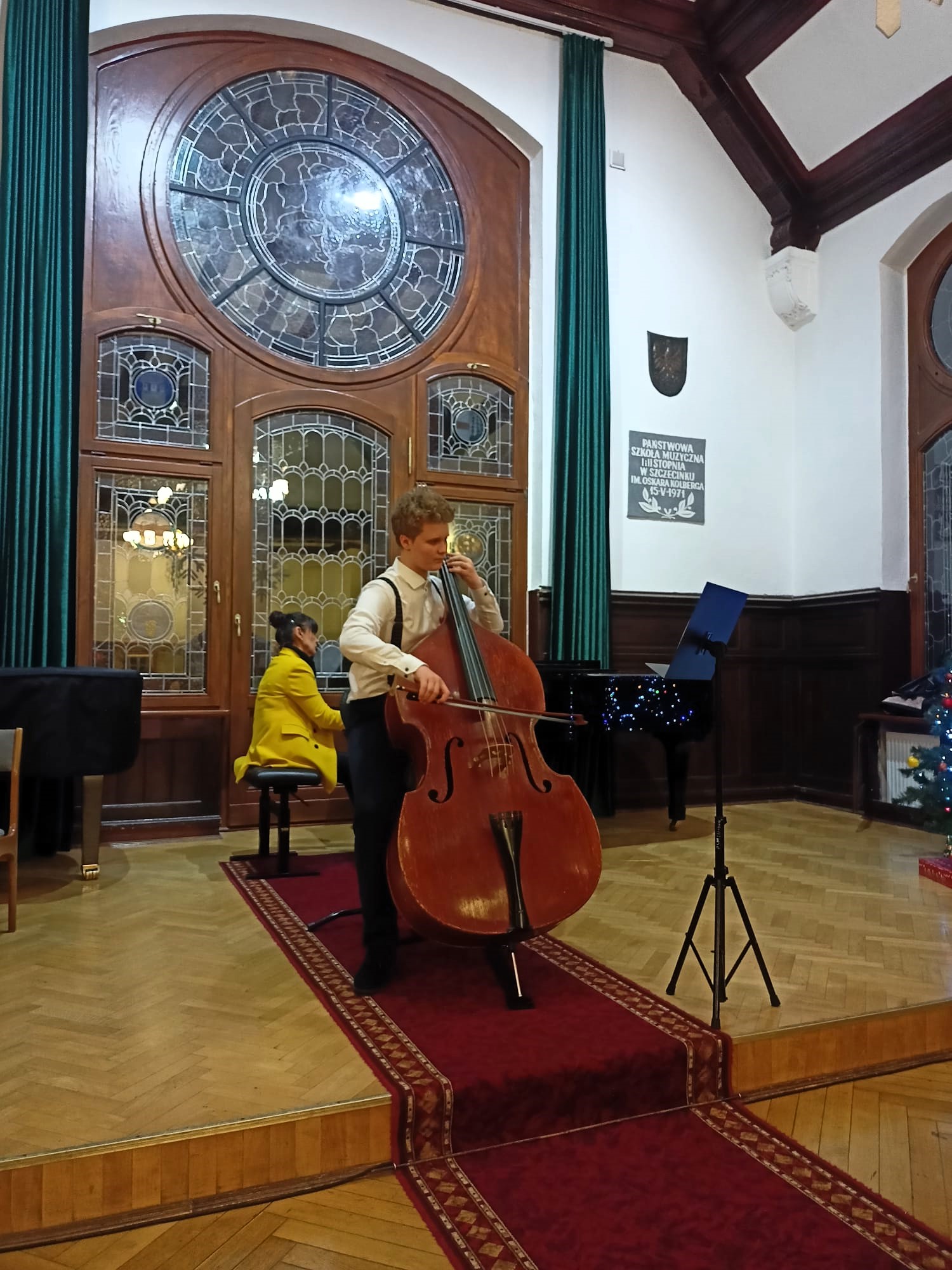 14 stycznia w Auli naszej szkoły wybrzmiał koncert sekcji strunowych. Wsysłuchaliśmy uczniów klasy skrzypiec mgr Marcina Orłowskiego, wiolonczeli mgr Emilii Jackiewicz oraz kontrabasu mgr Jana Nowickiego.