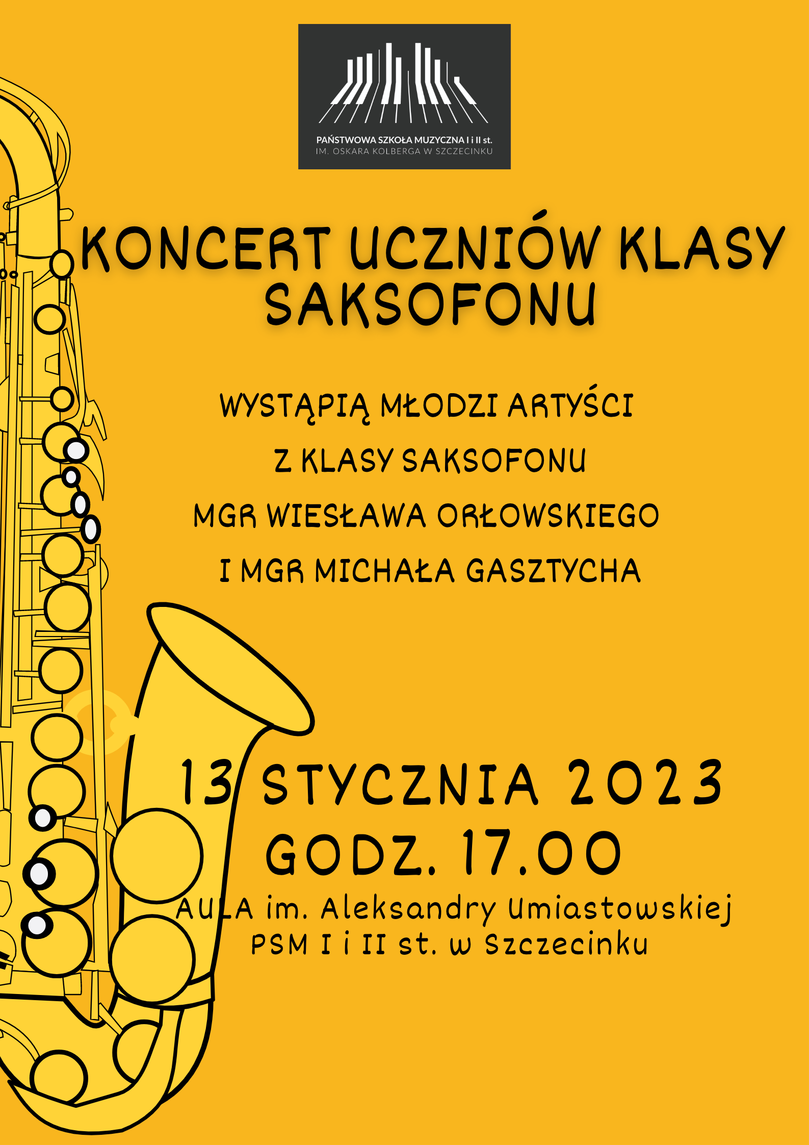 Zapraszamy na koncert uczniów klasy saksofonu mgr Wiesława Orłowskiego i mgr Michała Gasztycha
