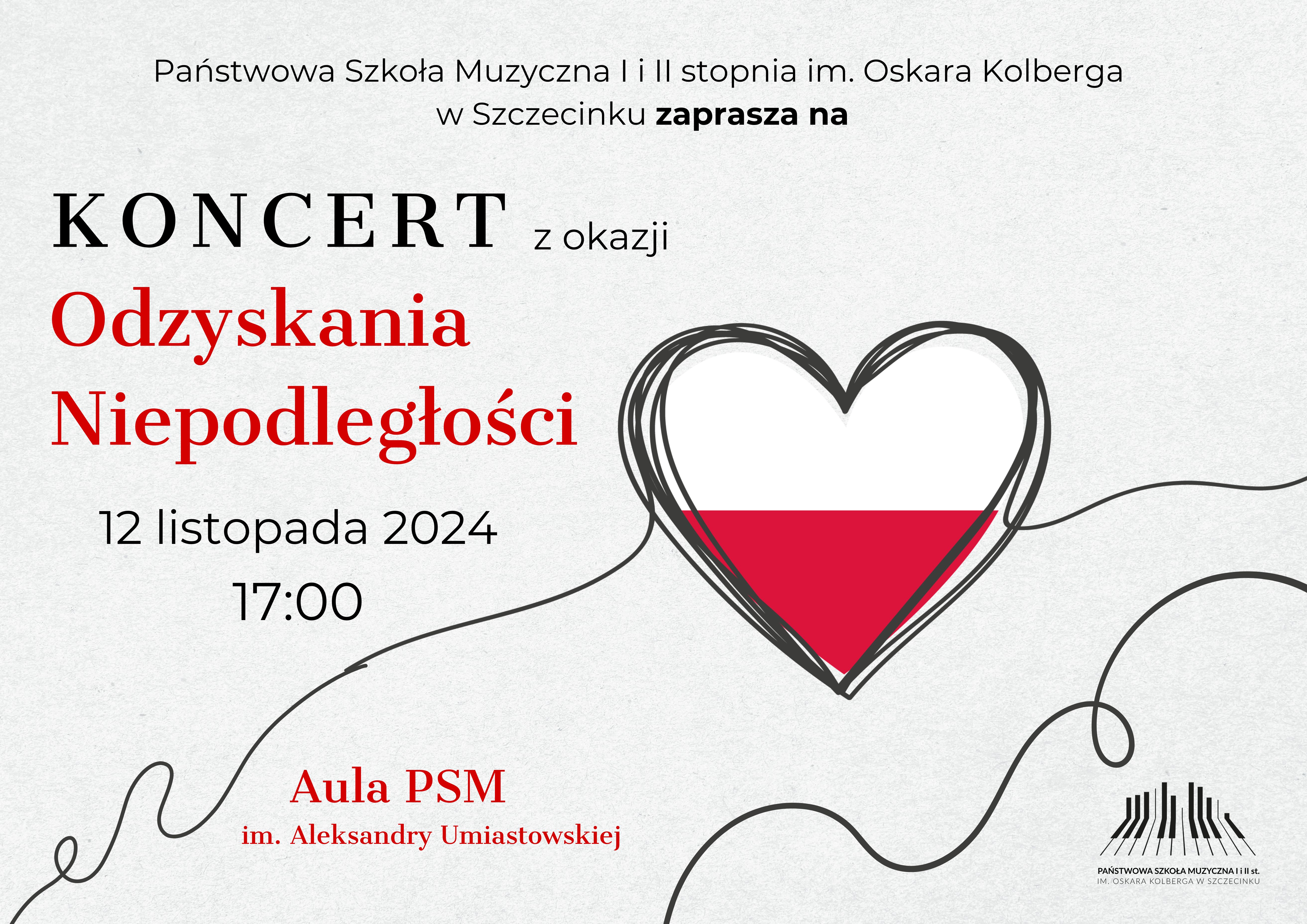12 listopada 2024 o godzinie 17:00 zaprosimy Państwa na wyjątkowy koncert. Właściwie wyjtkowa jest w tym przypadku okazja, dla której się spotykamy. Święto Odzyskania Niepoległości.