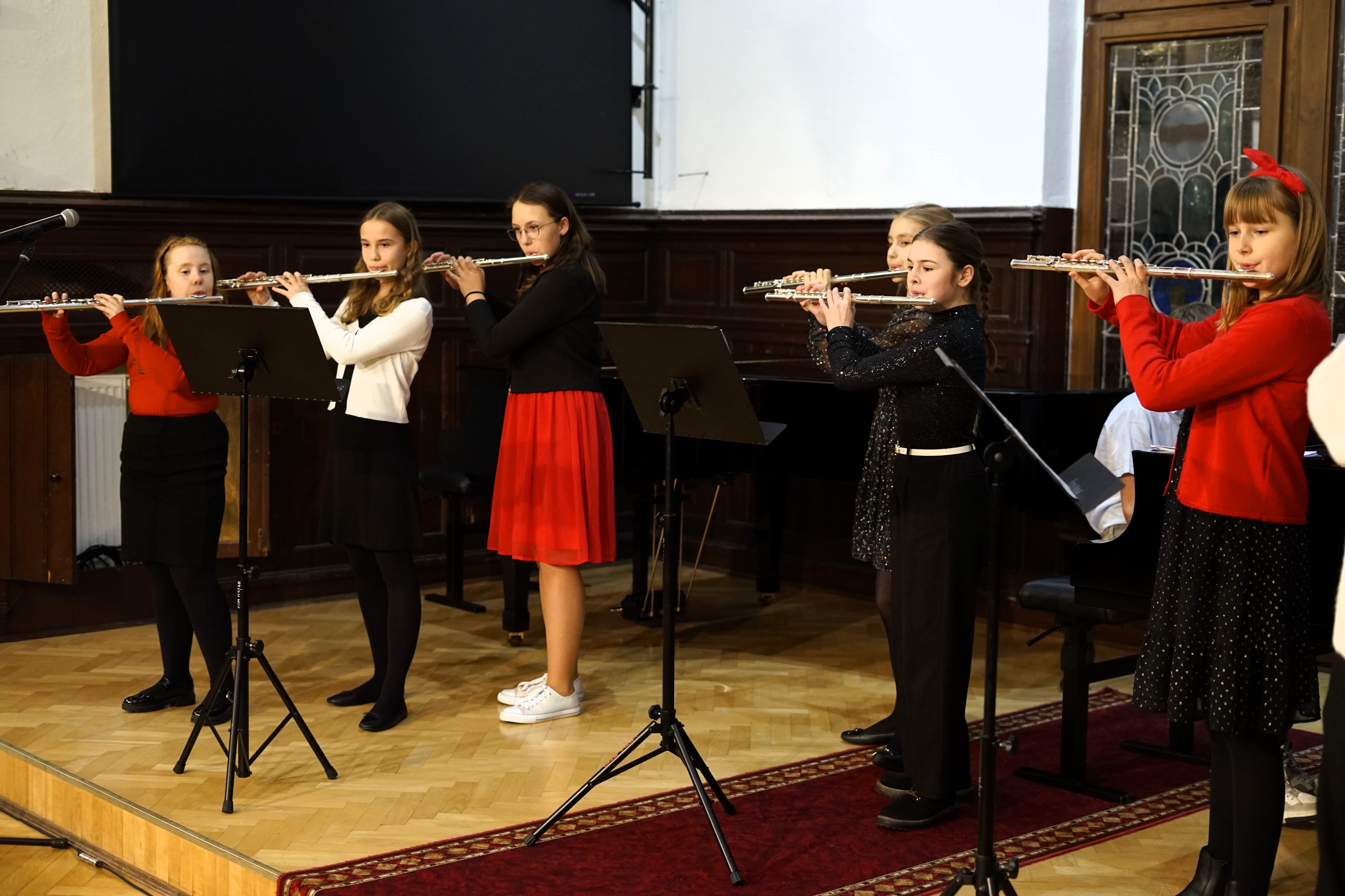 12.11.2024 r. w Auli naszej szkoły odbył się wyjątkowy koncert upamiętniający Odzyskanie przez Polskę Niepodległości. Publiczność miała okazję wysłuchać pięknych interpretacji utworów najwybitniejszych polskich kompozytorów, takich jak Fryderyk Chopin, Stanisław Moniuszko, Feliks Maklakiewicz i Mieczysław Karłowicz. Muzyka niosła ducha wolności i narodowej tożsamości, przypominając nam o niezwykłej historii naszego kraju.