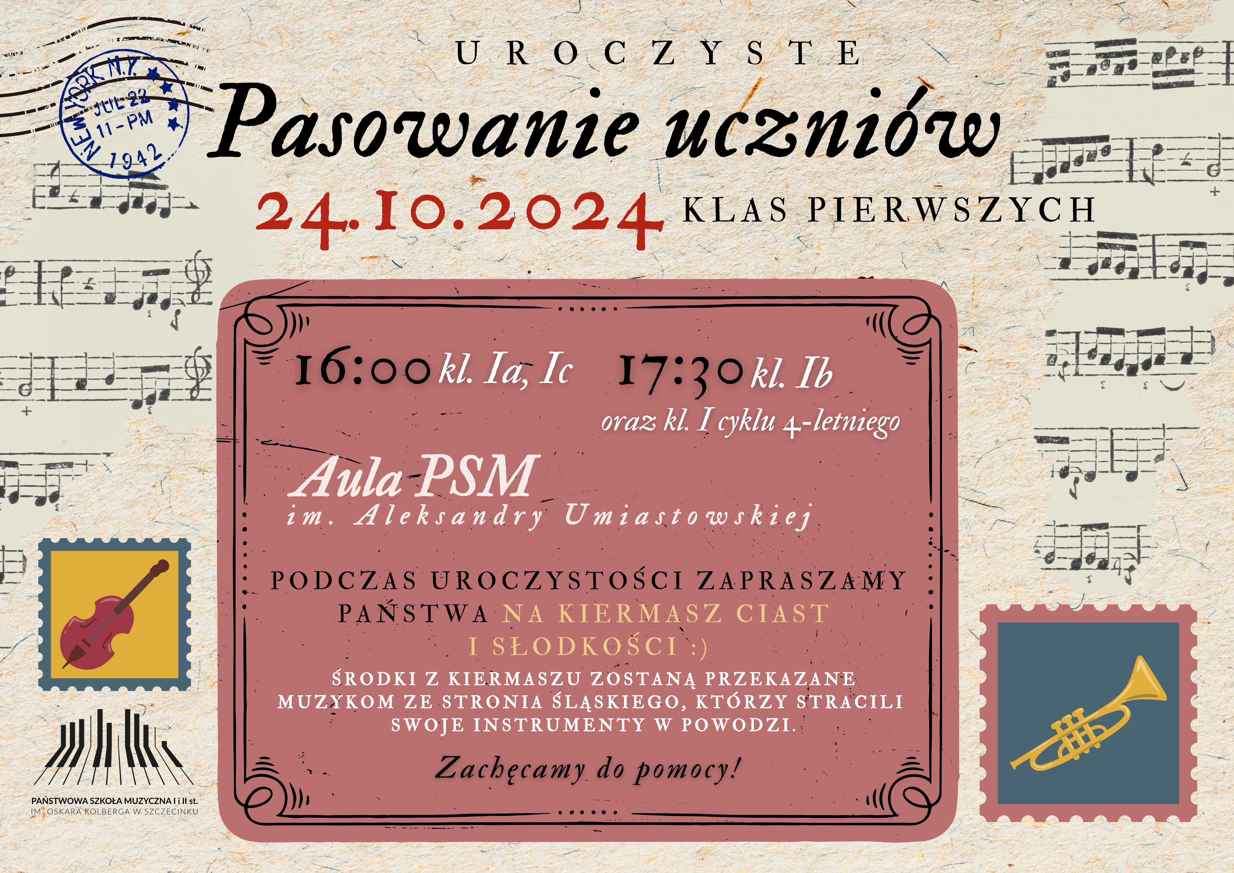 Z inicjatywy Samorządu Szkolnego podczas wydarzenia zaprosimy Państwa na kiermasz ciast i słodkości. Środki z kiermaszu zostaną przekazane muzykom ze Stronia Śląskiego, którzy stracili swoje instrumenty w powodzi. Zachęcamy wszystkich do pomocy!
