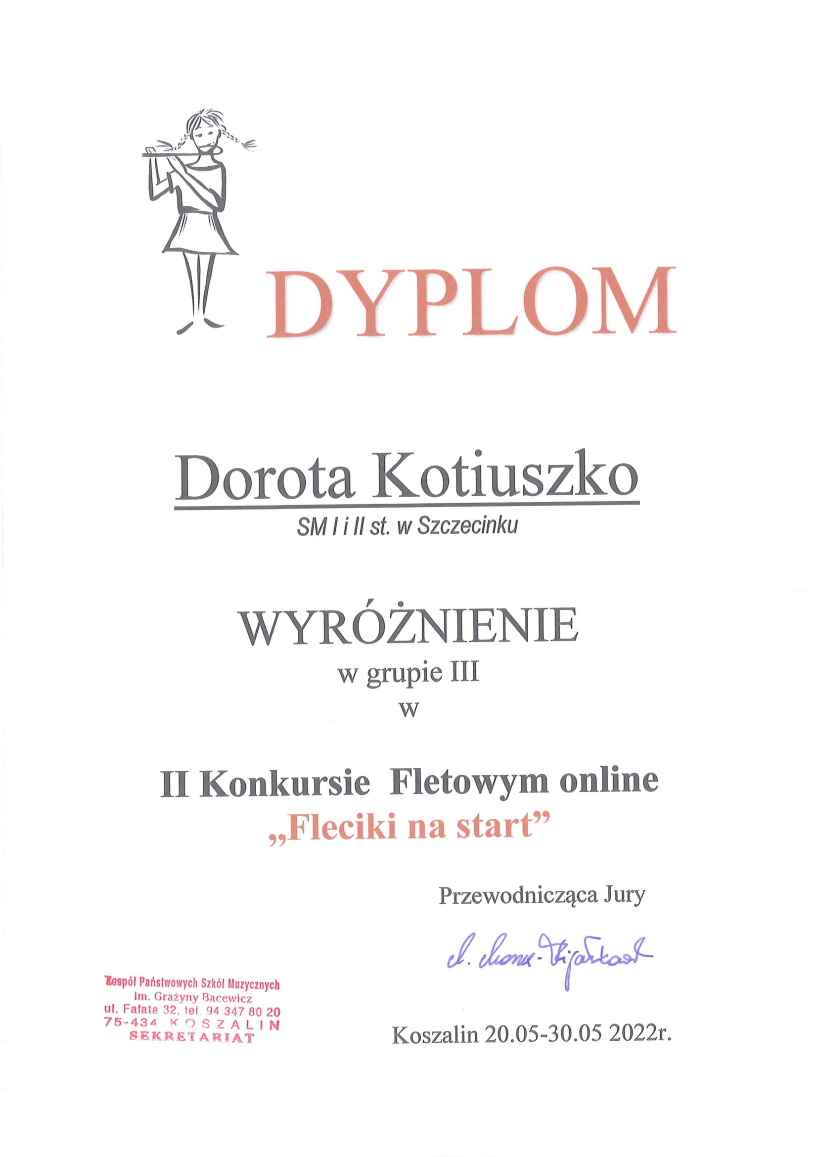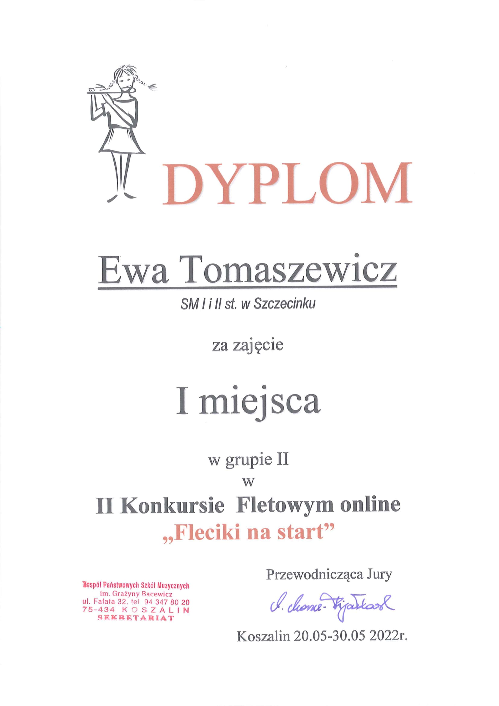 W dniu 30 maja 2022 r. ogłoszono wyniki II Konkursu Fletowego online "Fleciki na start" zorganizowanego przez Zespół Państwowych Szkół Muzycznych im. Grażyny Bacewicz w Koszalinie.