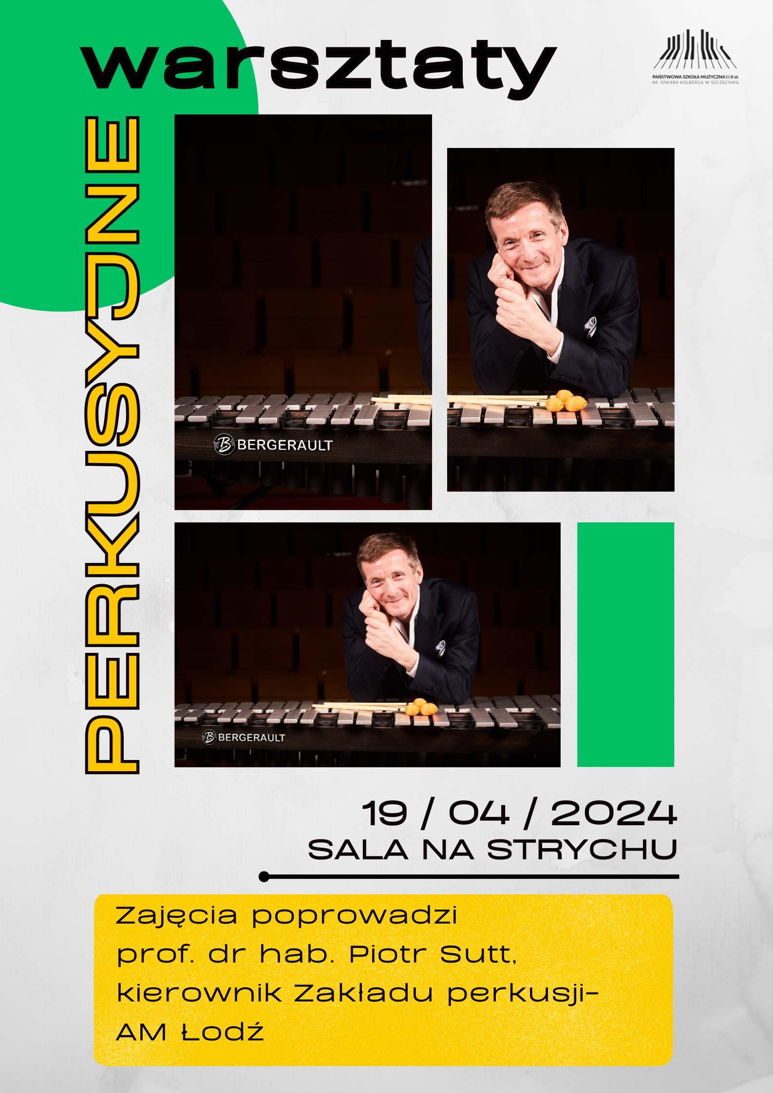 Wszystkich perkusistów oraz zainteresowanych zapraszamy na warsztaty perkusyjne z prof. dr hab. Piotrem Suttem:) 19 kwietnia 2024r godz. 12.00 sala "na strychu"