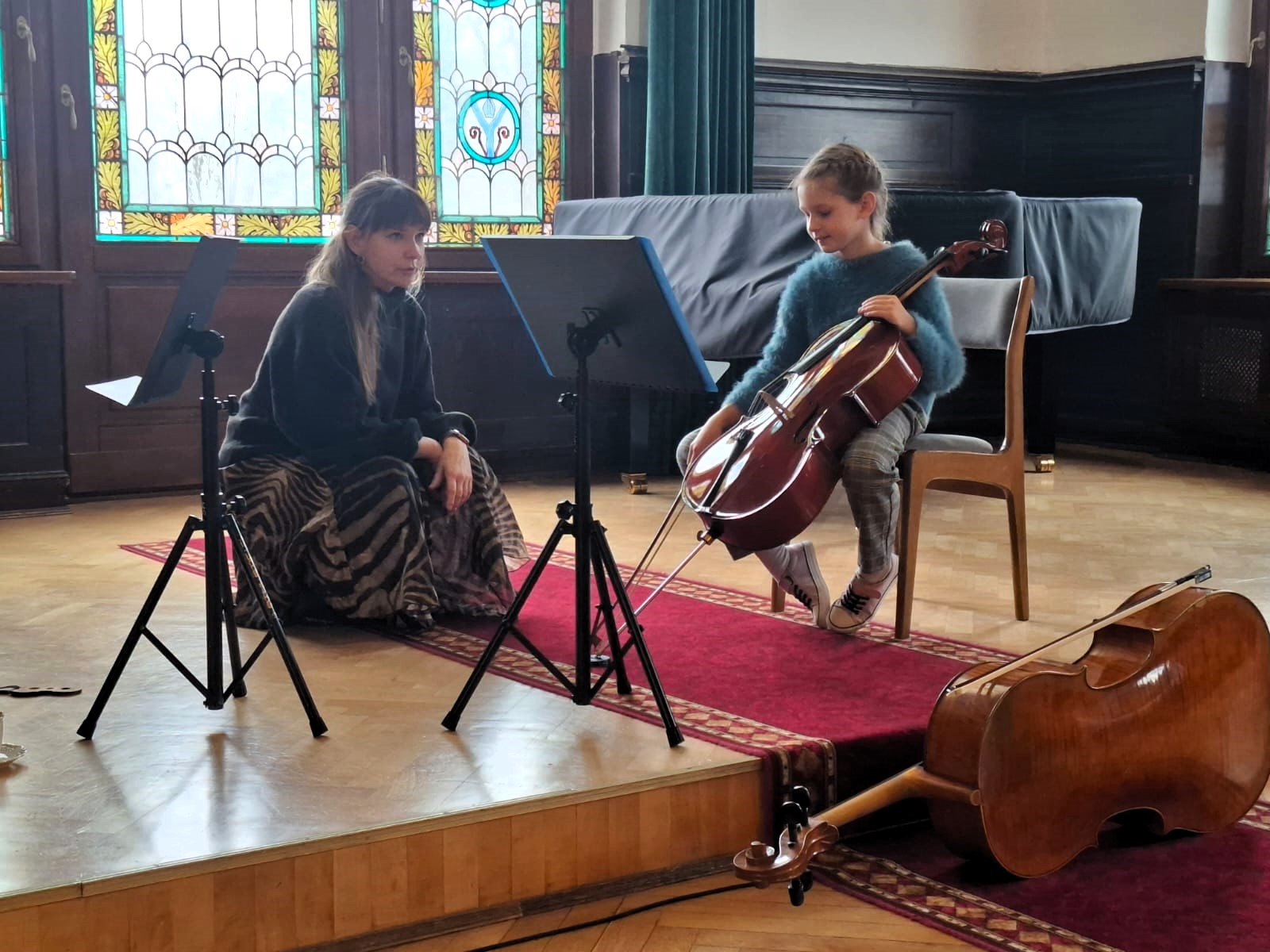 24 lutego 2025 klasa wiolonczeli mgr Emilii Jackiewicz wzięła udział w fantastycznych warsztatach z dr Magdaleną Bojanowicz-Koziak. Uczniowie dowiedzieli się jak ważne są aparat i technika gry w prawidłowym kształtowaniu dźwięku na wiolonczeli. To był niezwykle wartościowy czas!