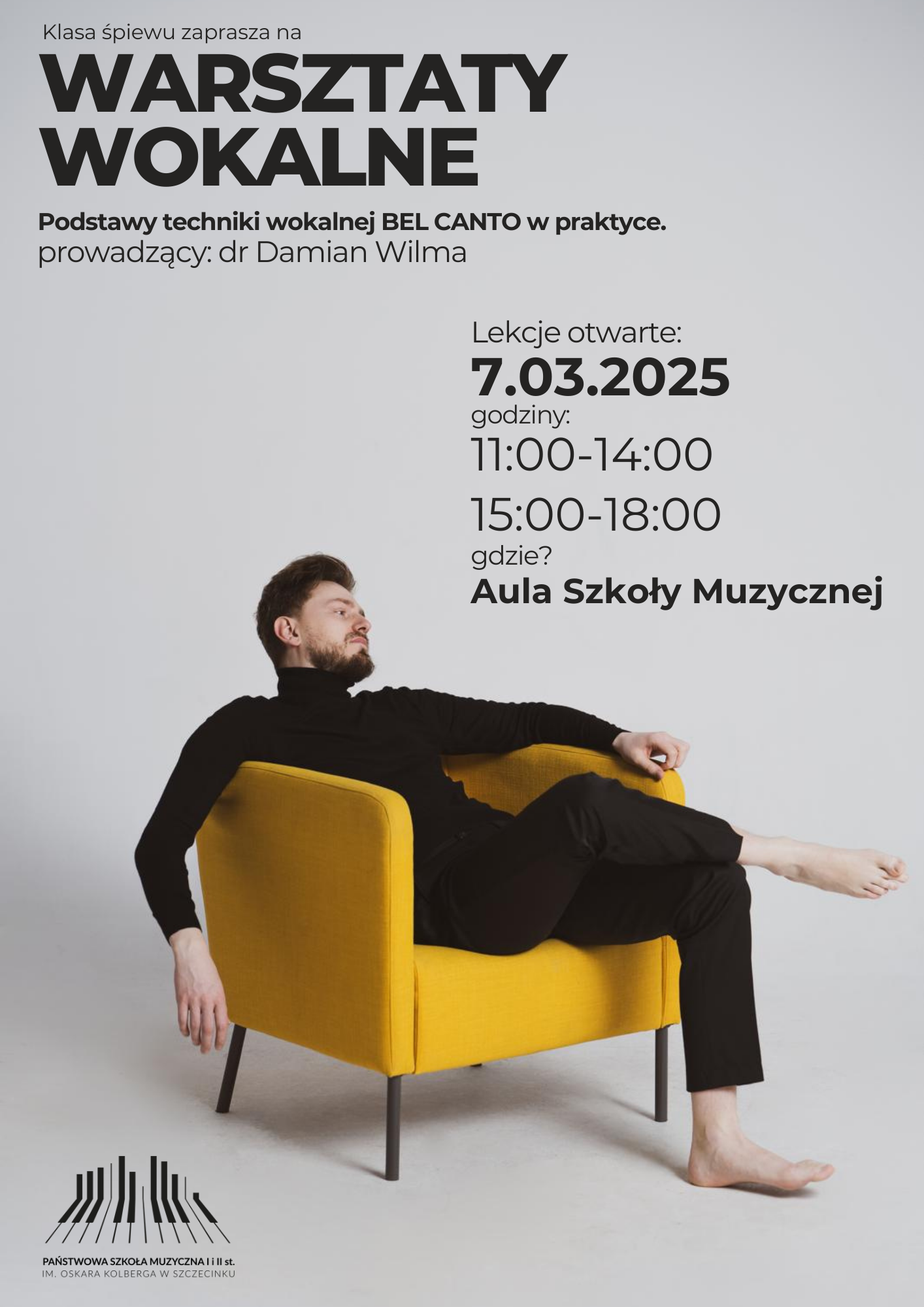 Już 7 marca uczniowie klasy śpiewu Państwowej Szkoły Muzycznej I i II stopnia im. Oskara Kolberga w Szczecinku wezmą udział w wyjątkowaych warsztatach podstaw techniki wokalnej BEL CANTO, które poprowadzi dla nich dr Damian Wilma. Wyczekujemy tego czasu niecierpliwie!