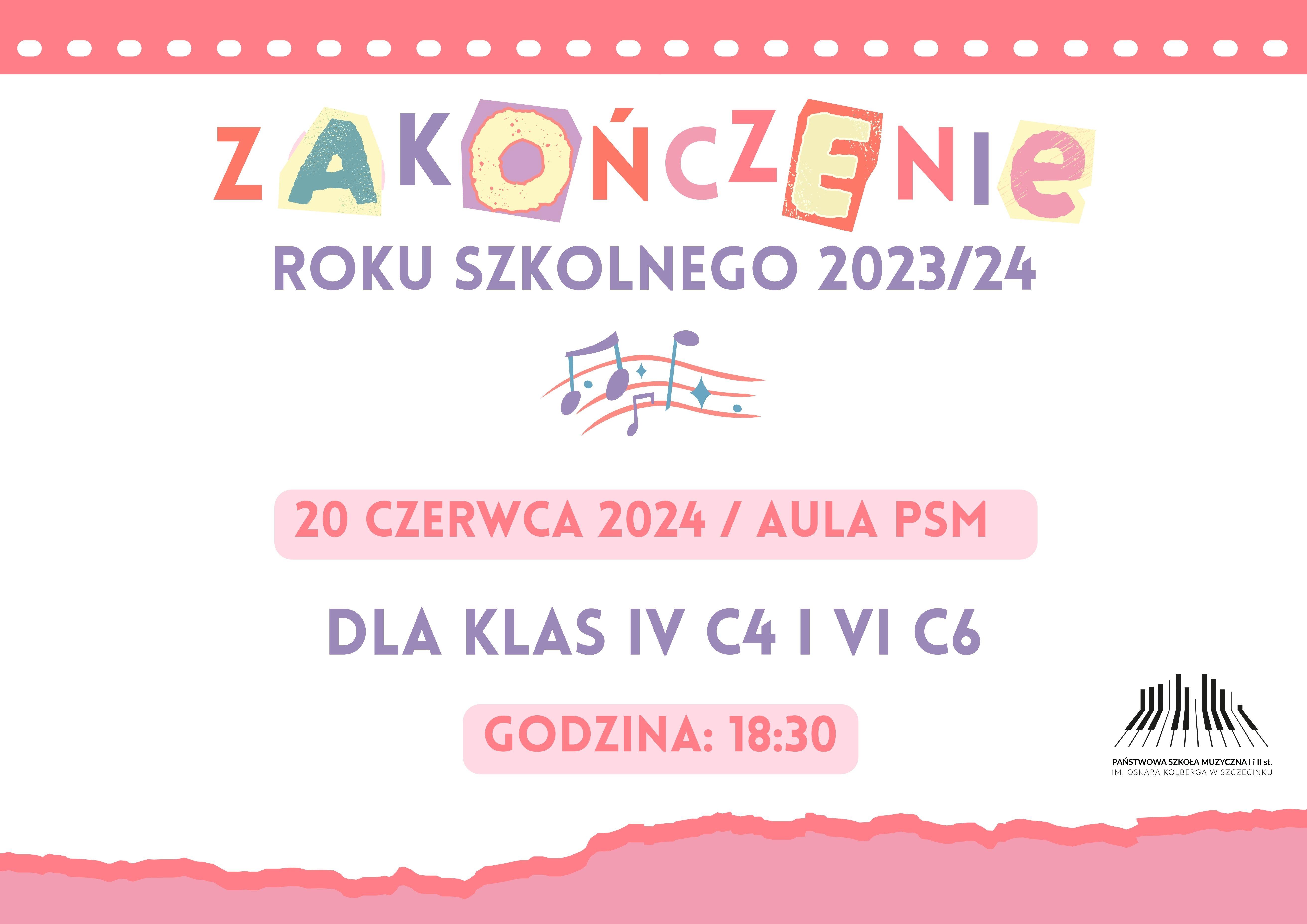 Uroczyste zakończenie roku szkolnego 2023/2024 dla klas VI C6 oraz IV C4
