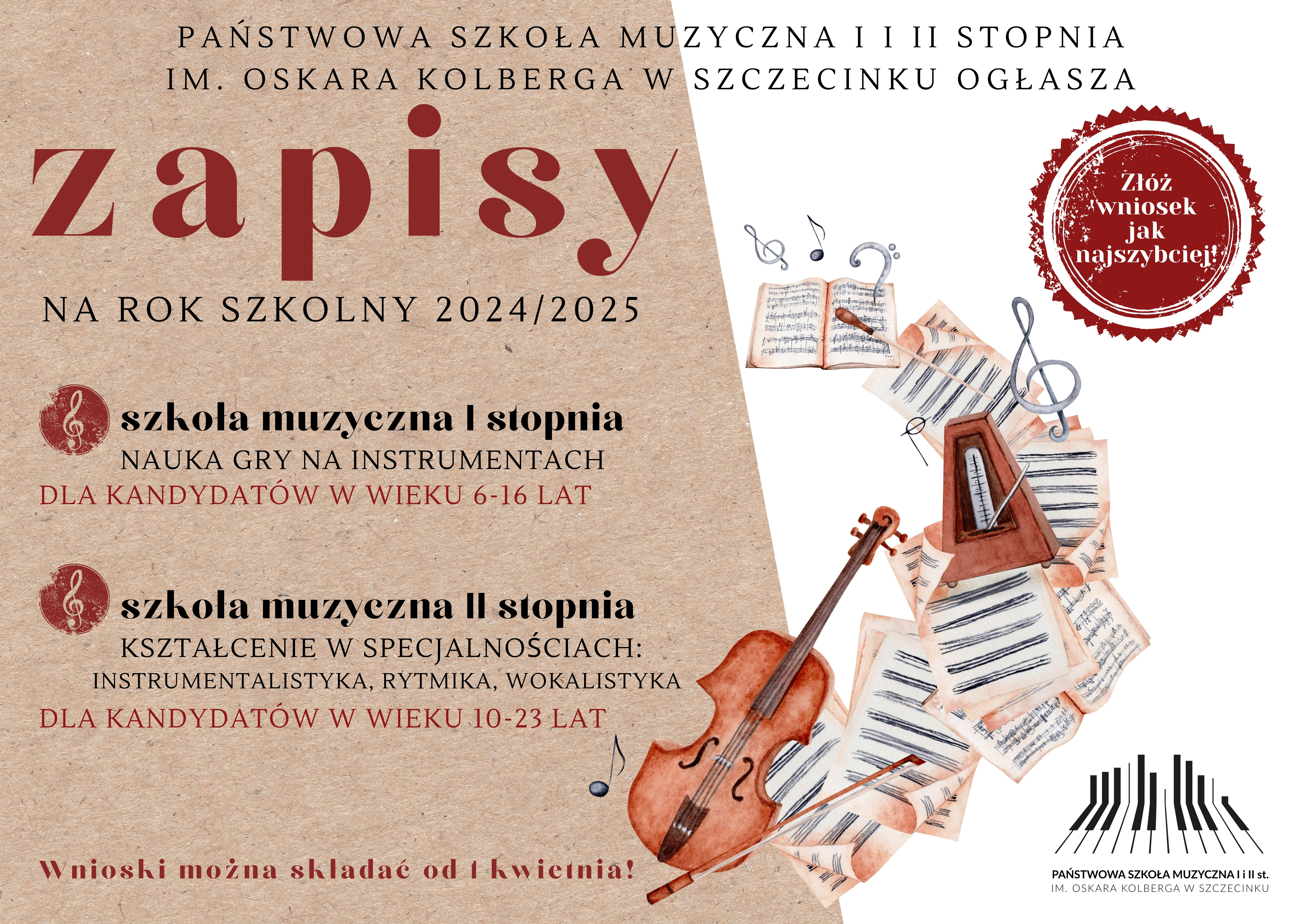 Zapisy do PSM I i II st. im. O. Kolberga w Szczecinku 21.03.2024 Zdjęcia (1) Pokaż zdjęcie 1 z galerii.