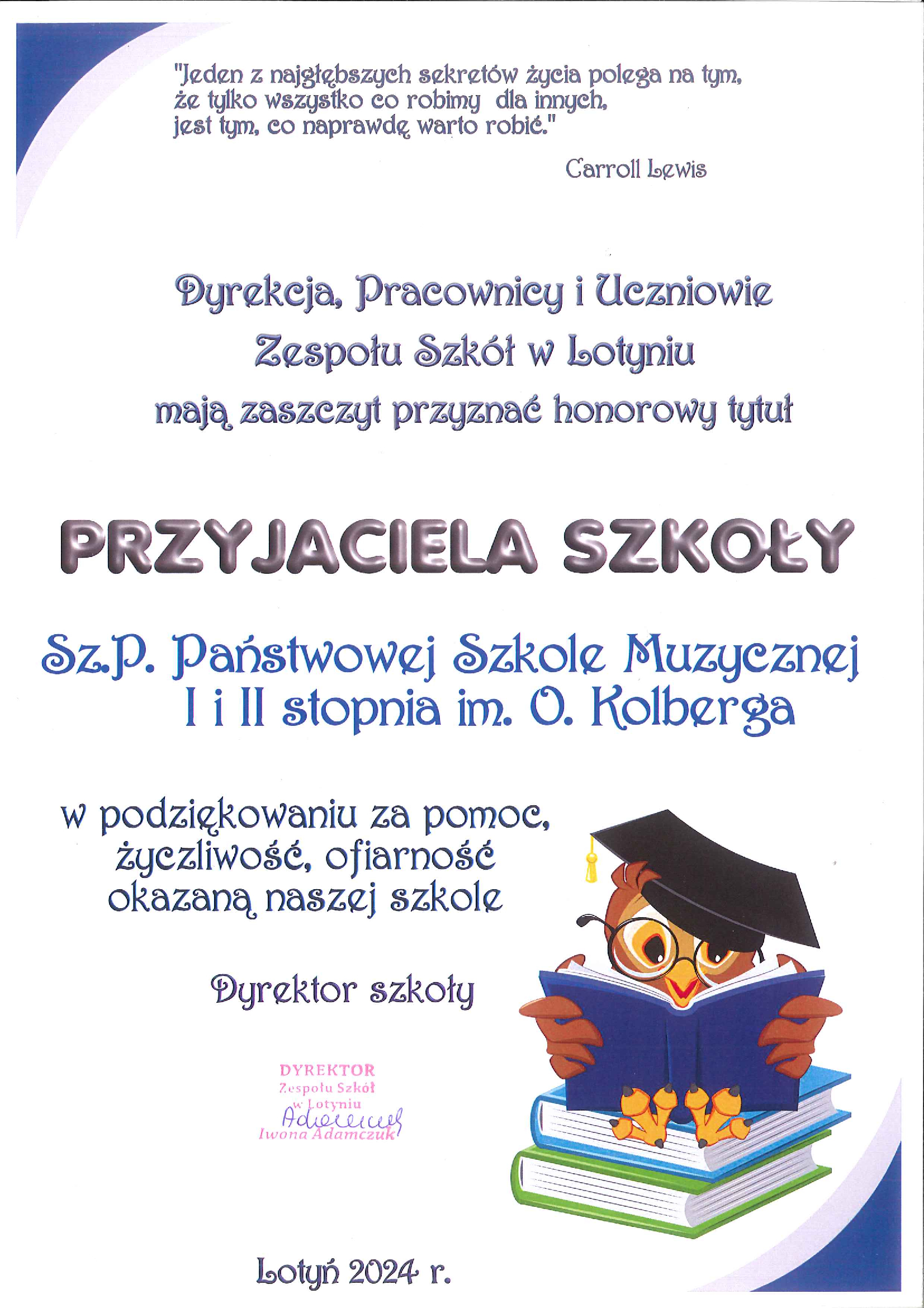 Zostaliśmy PRZYJACIÓŁMI Zespołu Szkół w Lotyniu!