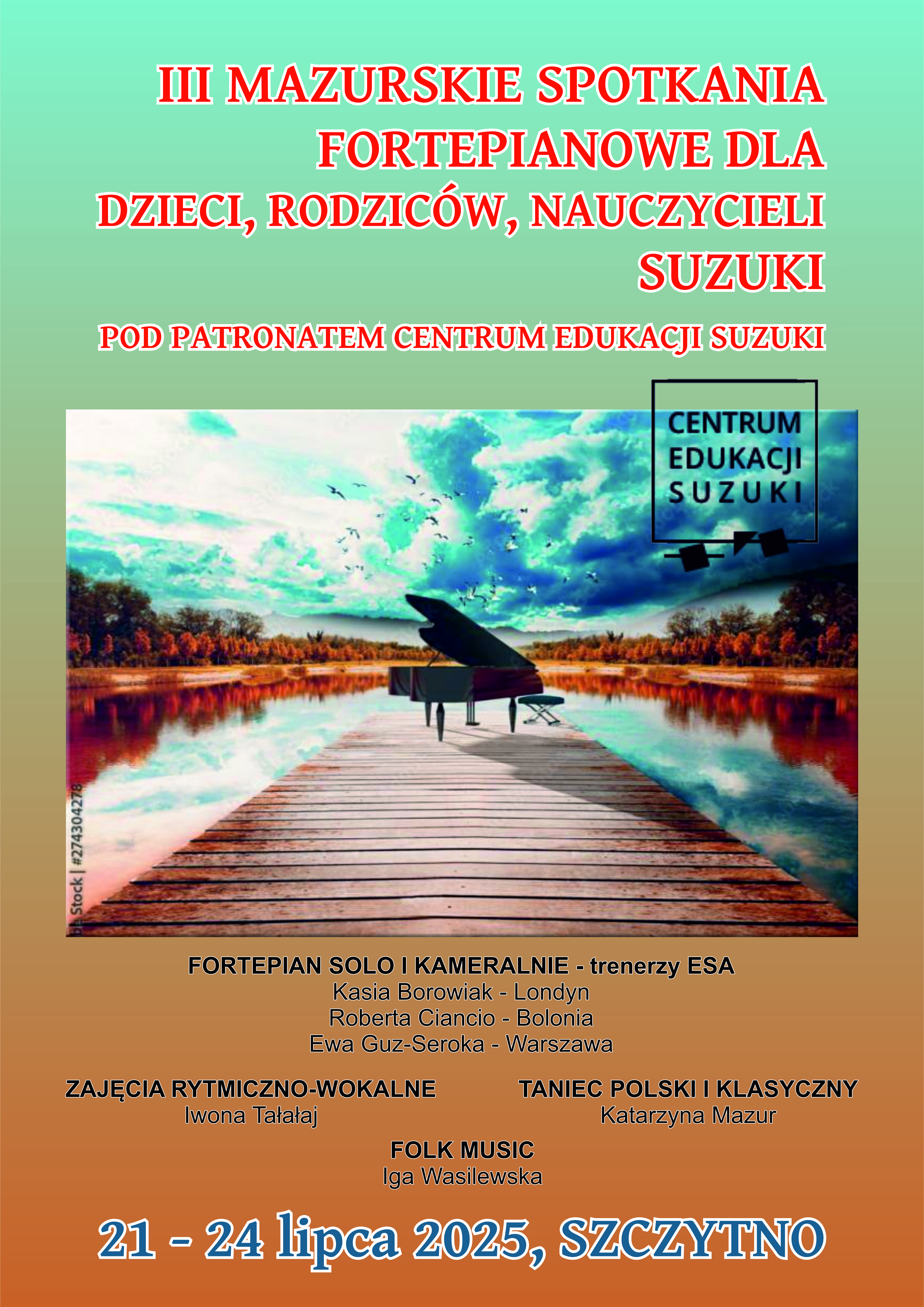 III Mazurskie Spotkania Fortepianowe dla dzieci, rodziców, nauczycieli SUZUKI - 21-24 lipca 2025 r.