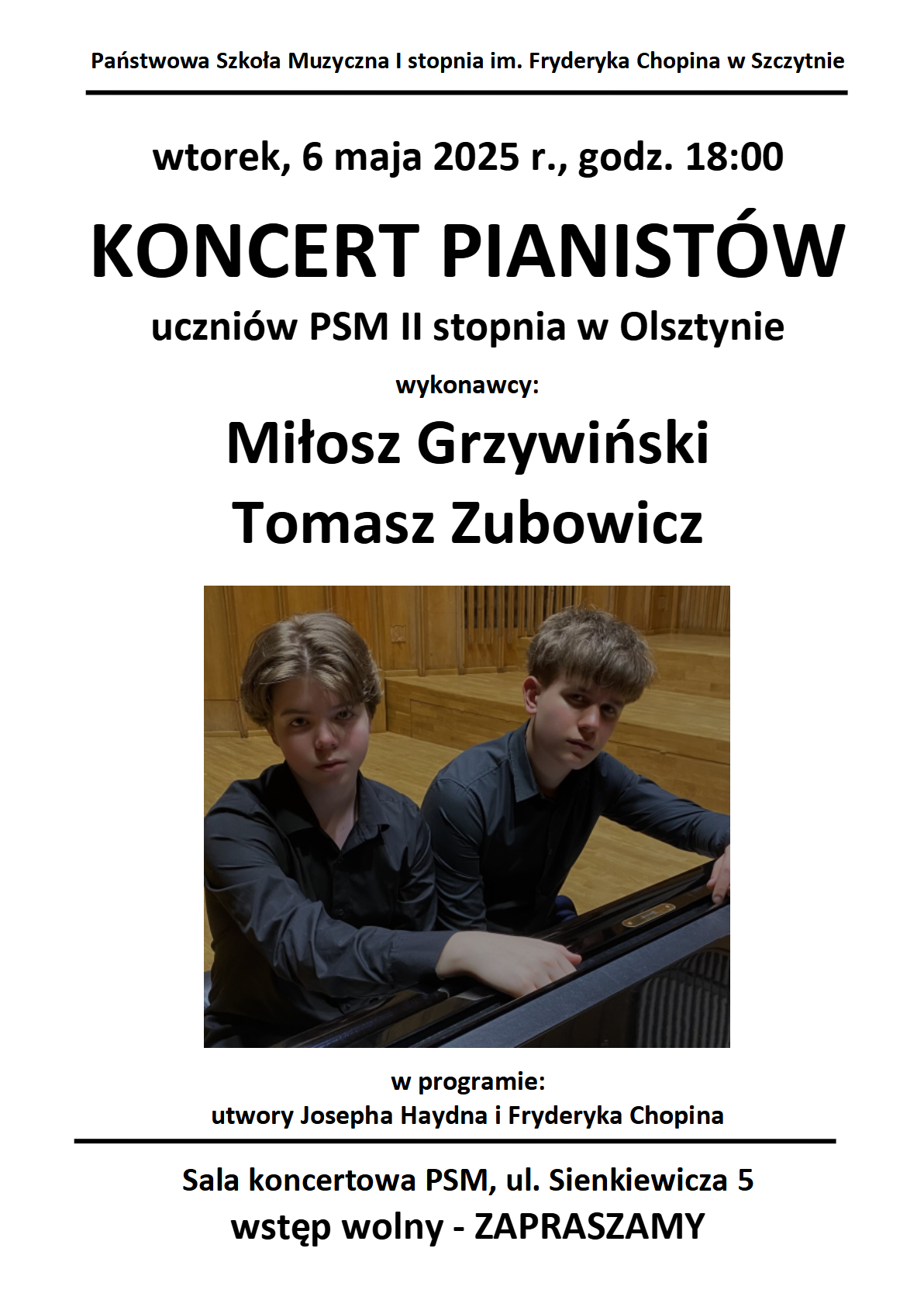 Koncert pianistów - uczniów PSM II stopnia w Olsztynie - 6 maja 2025 r.
