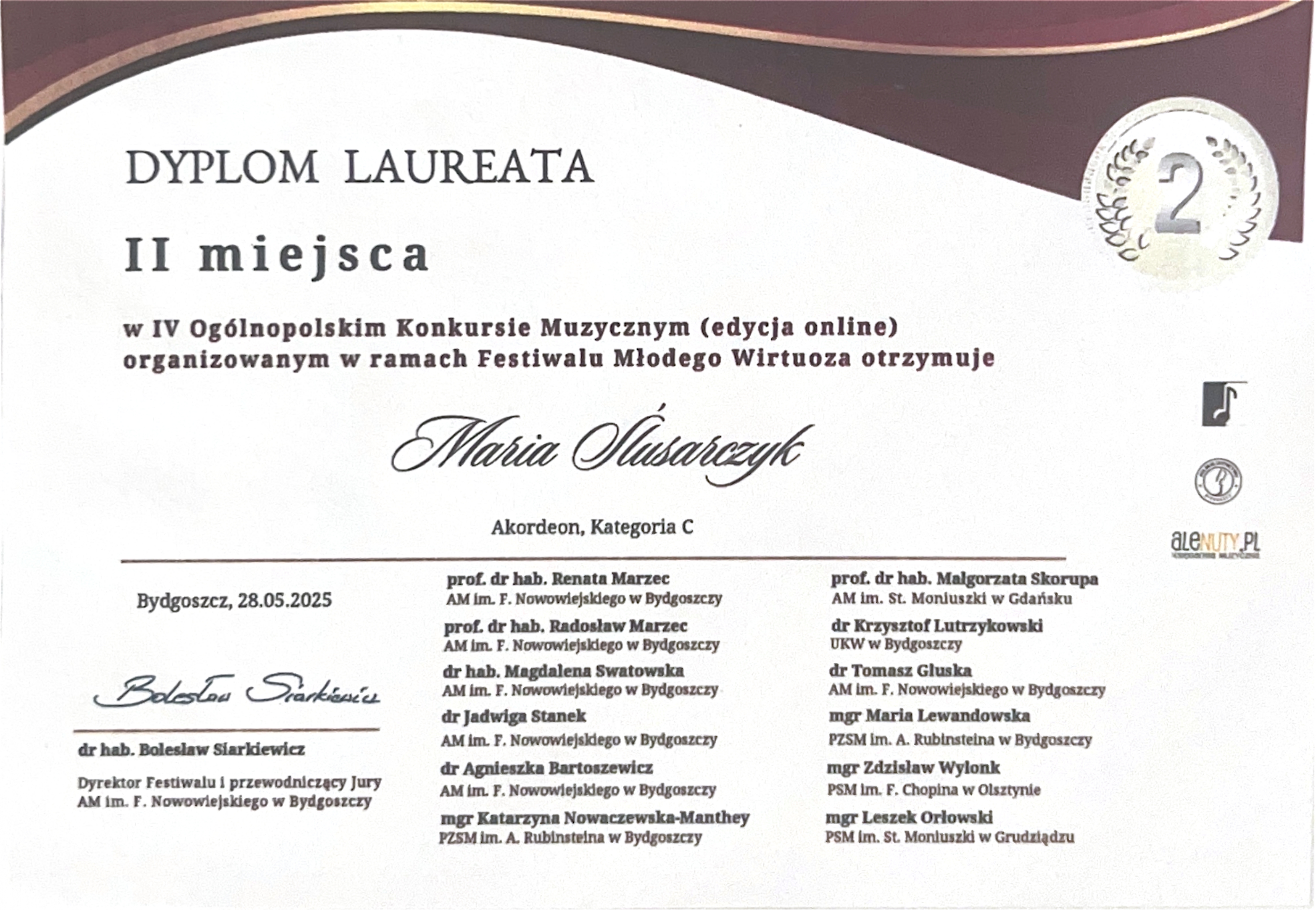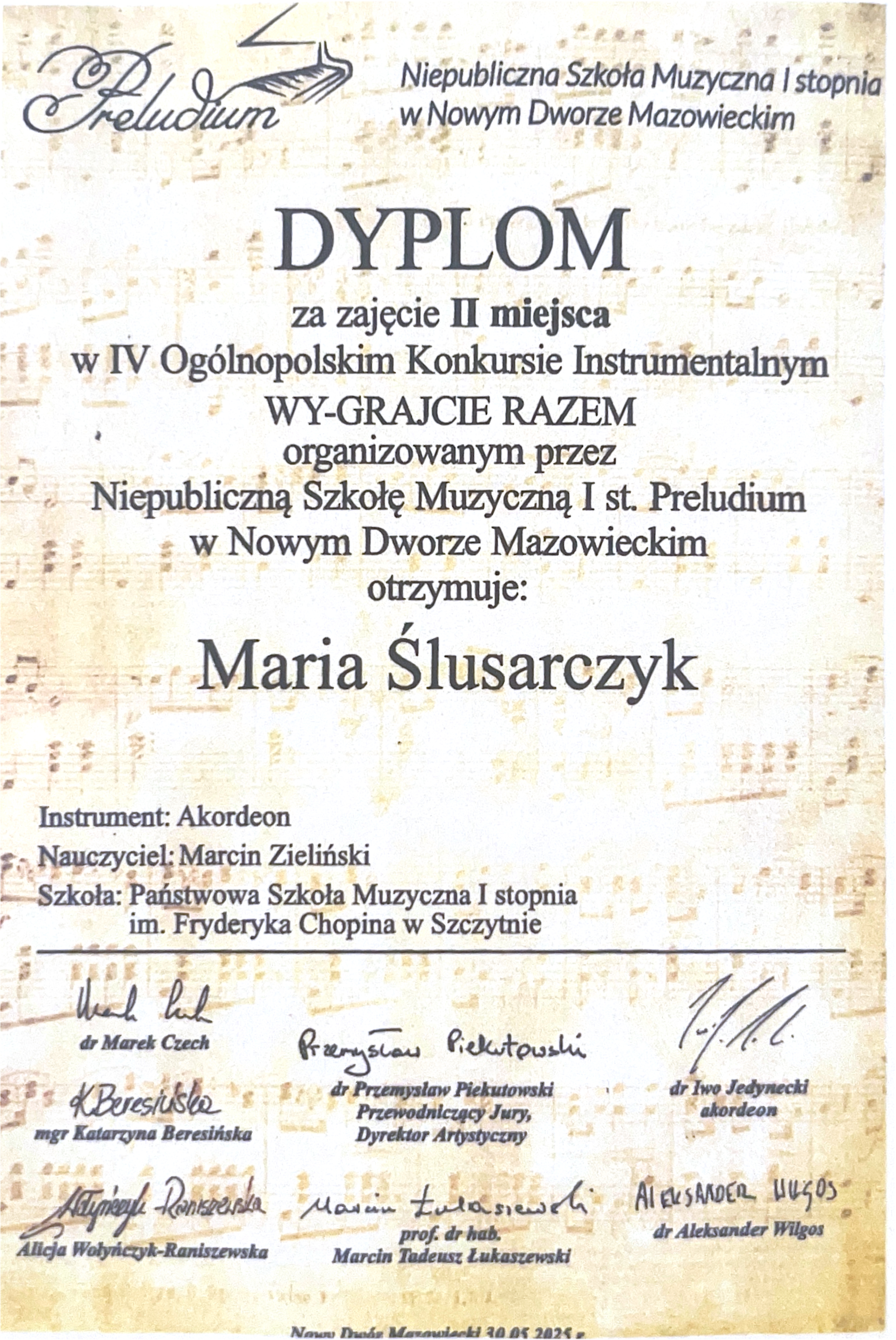 Maria Ślusarczyk - IV Ogólnopolski Konkurs Muzyczny w ramach Festiwalu Młodego Wirtuoza