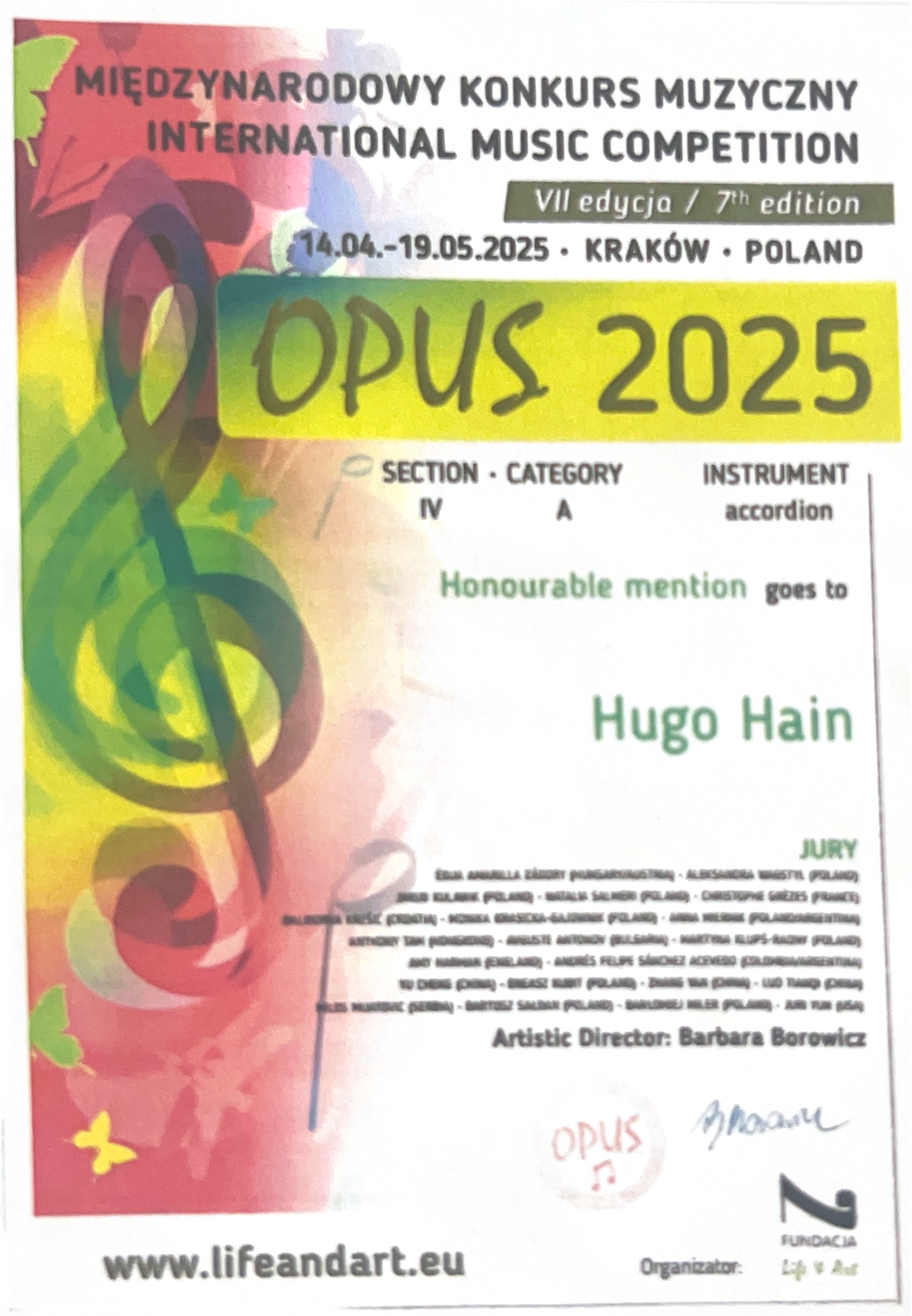 Hugo Hain - Międzynarodowy Konkurs Muzyczny OPUS 2025