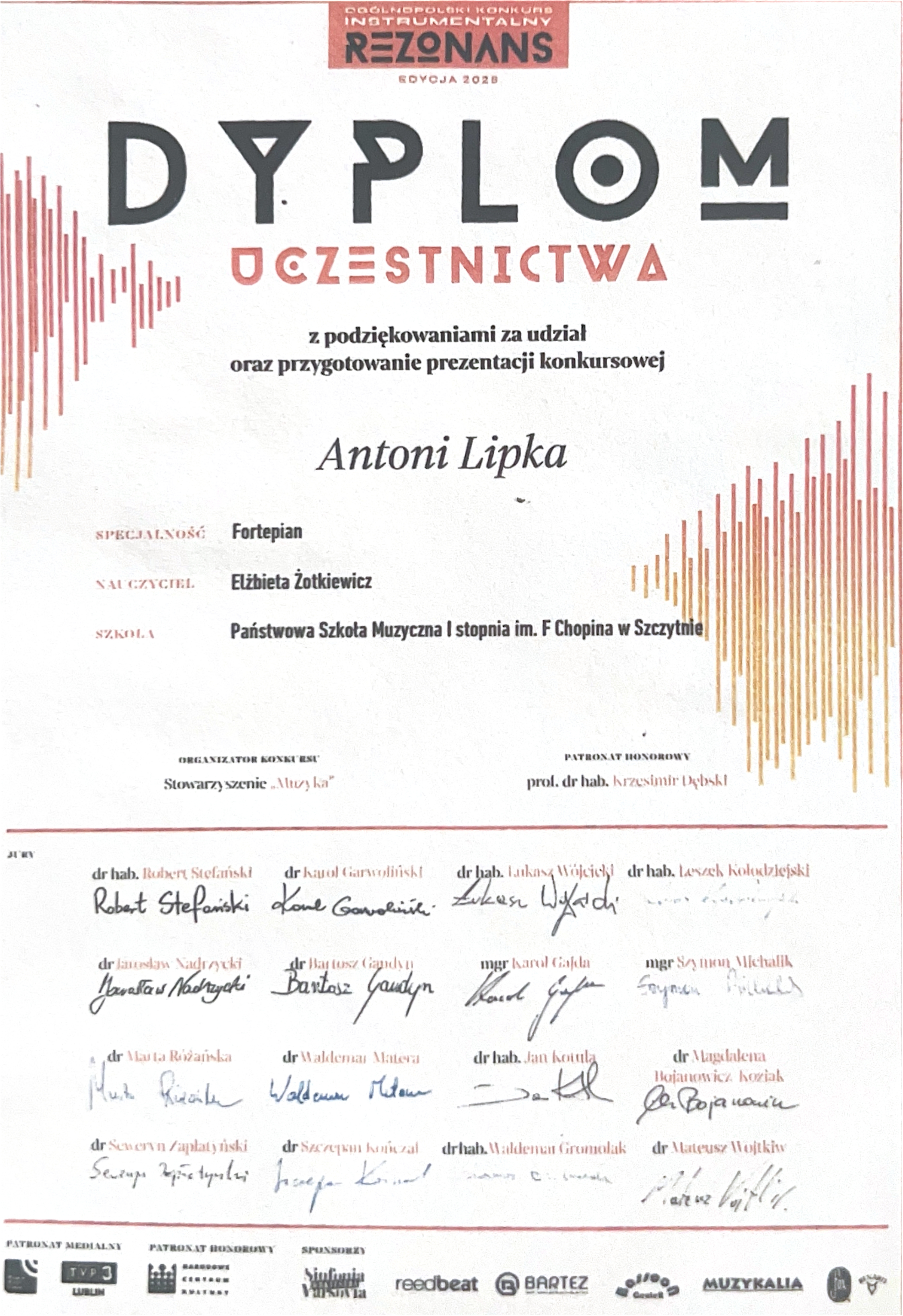Antoni Lipka - Ogólnopolski Konkurs Instrumentalny Rezonans
