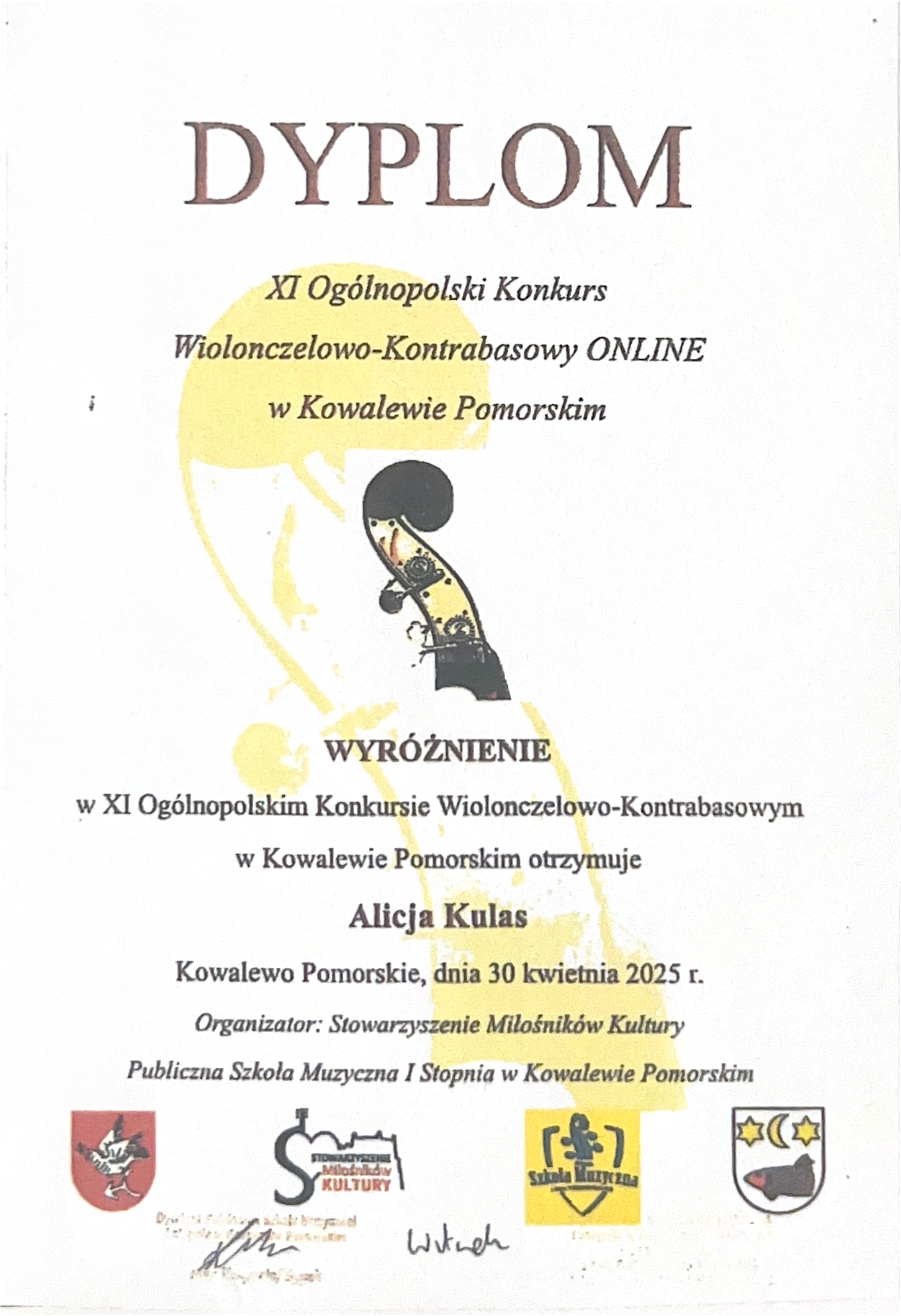 Alicja Kulas - XI Ogólnopolski Konkurs Wiolonczelowo-Kontrabasowy w Kowalewie Pomorskim