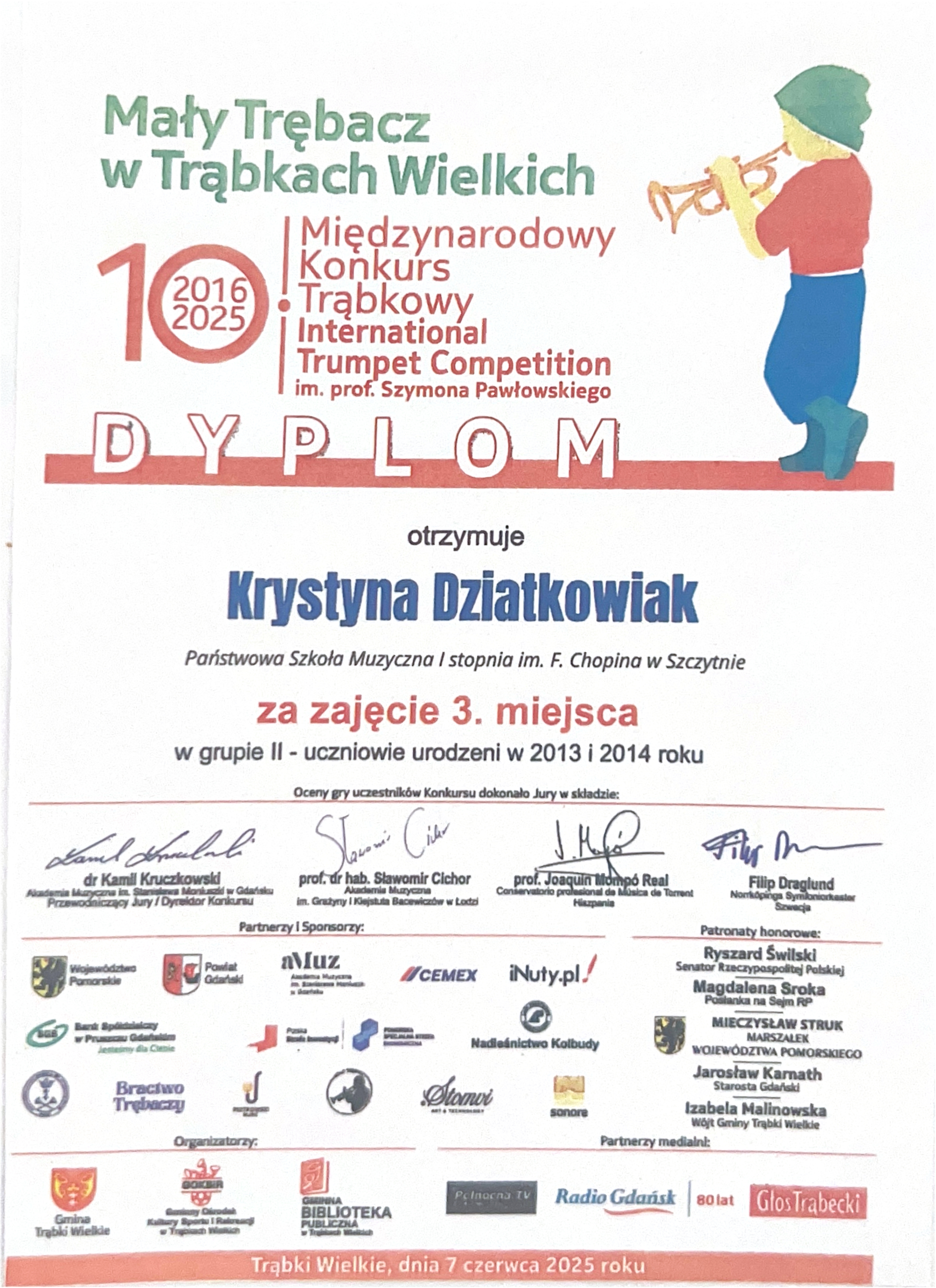 Krystyna Dziatkowiak - Międzynarodowy Konkurs Trąbkowy "Mały Trębacz" w Trąbkach Wielkich