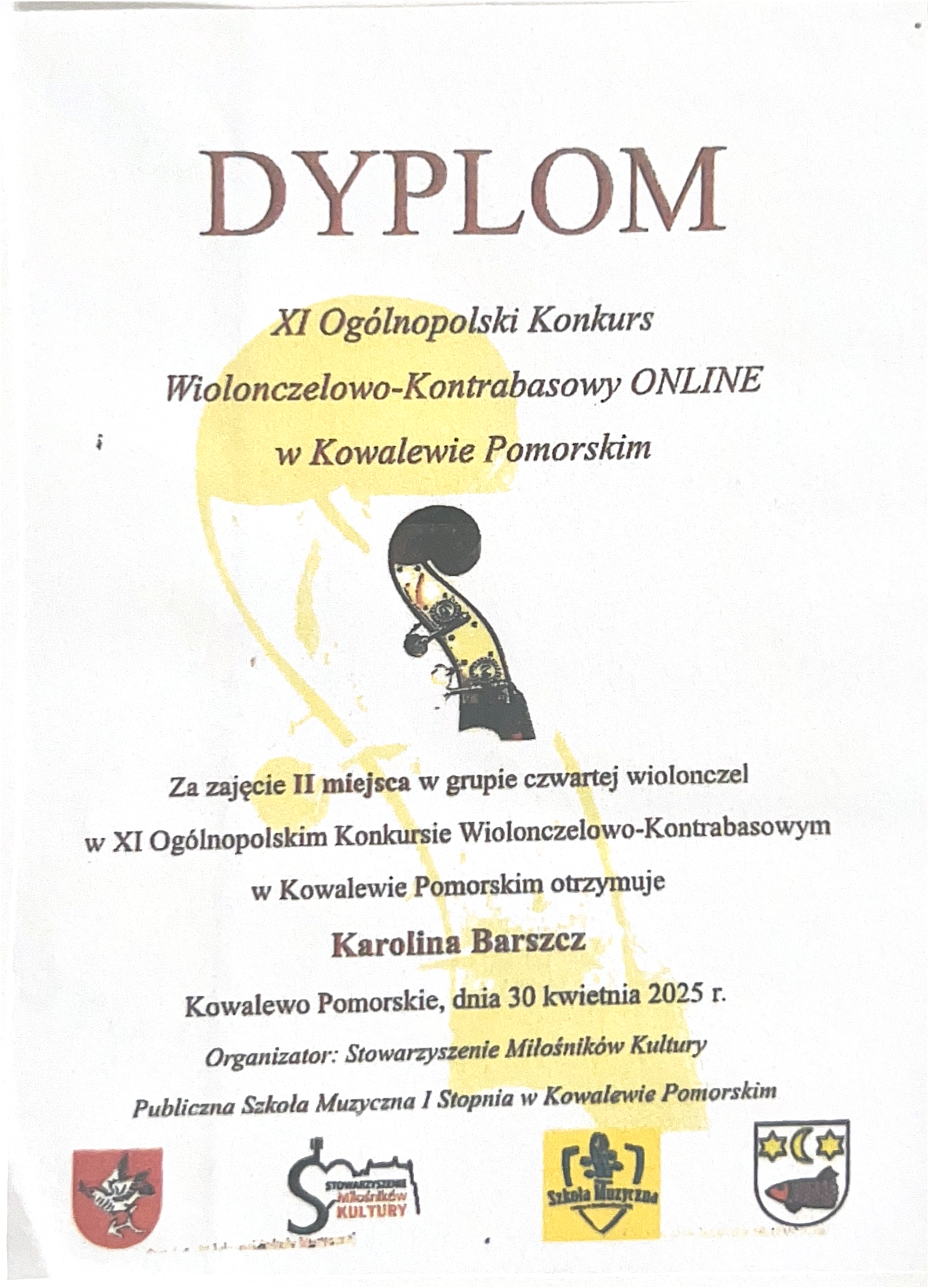 Karolina Barszcz - XI Ogólnopolski Konkurs Wiolonczelowo-Kontrabasowy w Kowalewie Pomorskim