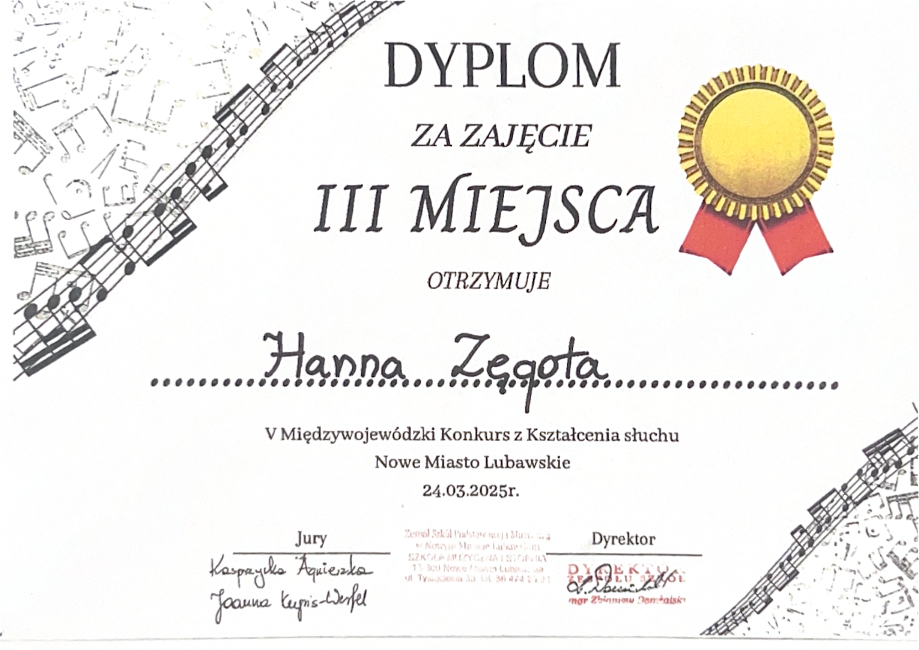 Hanna Zęgota - V Międzywojewódzki Konkurs z Kształcenia Słuchu w Nowym Mieście Lubawskim
