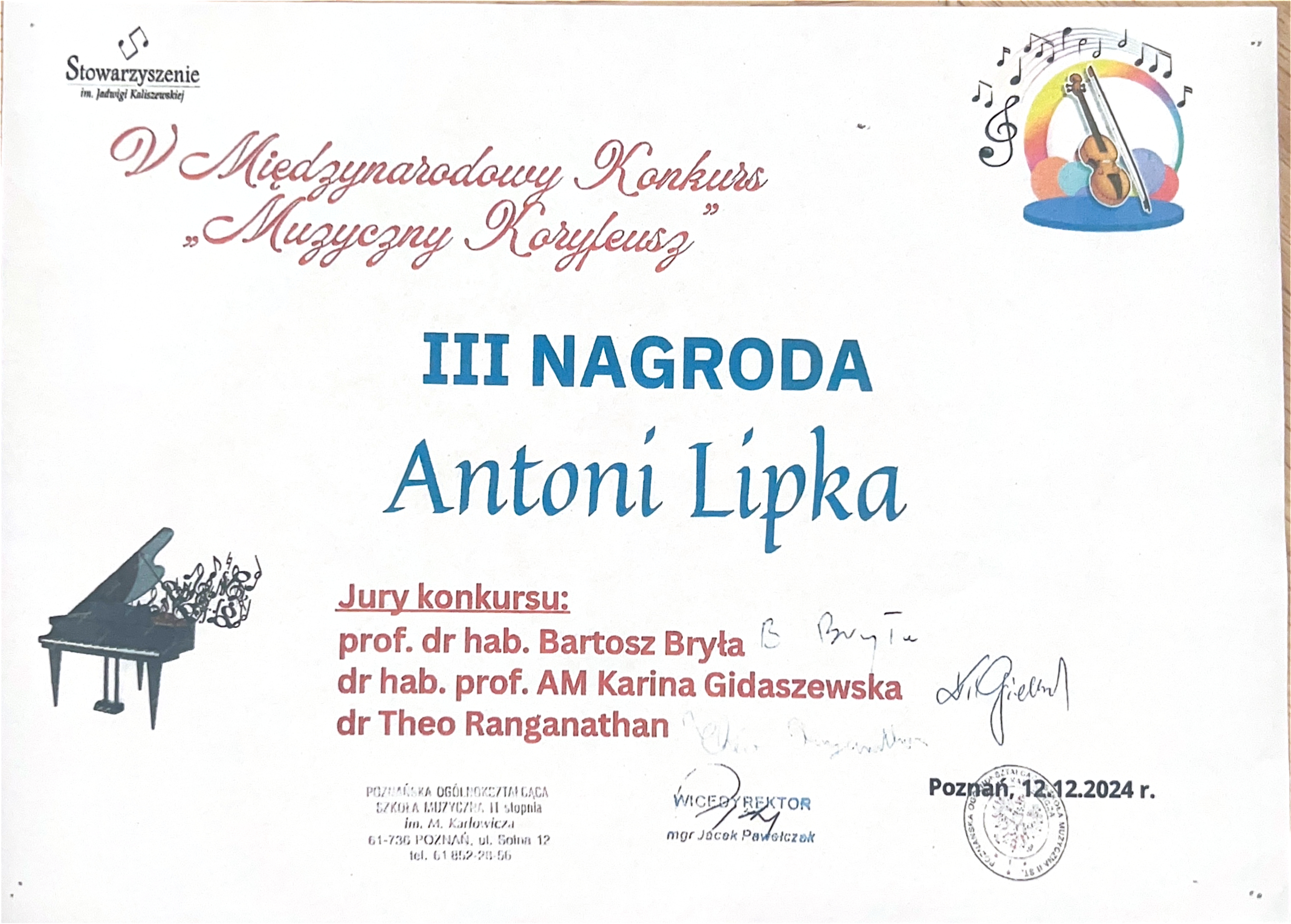 Antoni Lipka - V Międzynarodowy Konkurs Muzyczny Koryfeusz