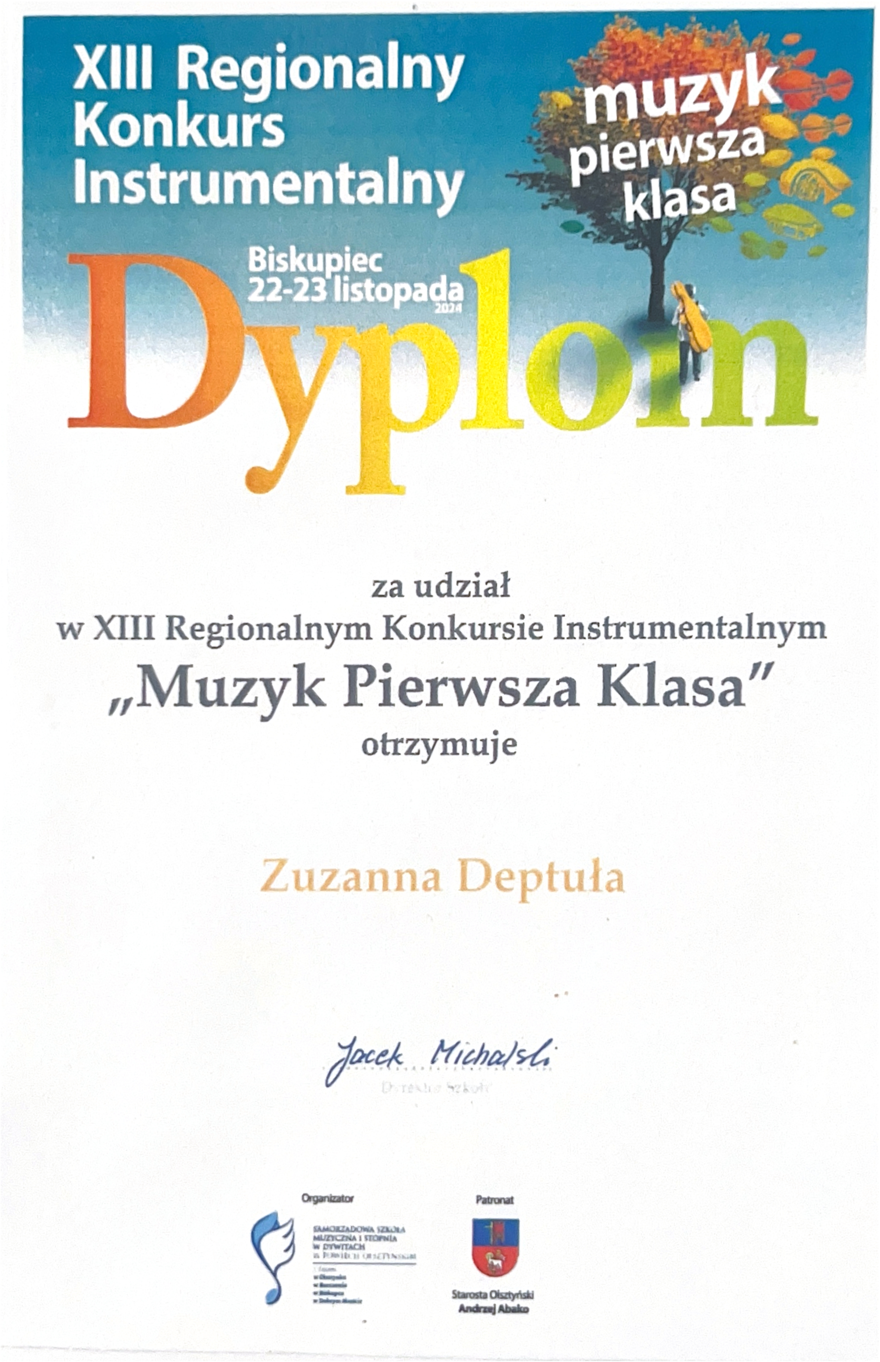 Zuzanna Deptuła - VIII Regionalny Konkurs Instrumentalny Muzyk Pierwsza Klasa