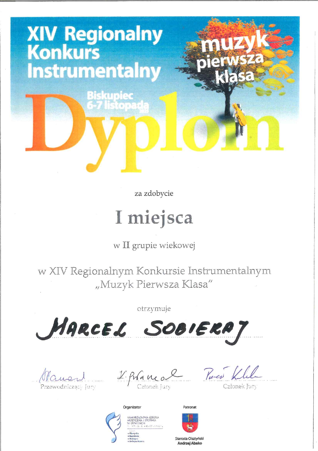 Marcel Sobieraj - XIV Regionalny Konkurs Instrumentalny "Muzyk Pierwsza Klasa"