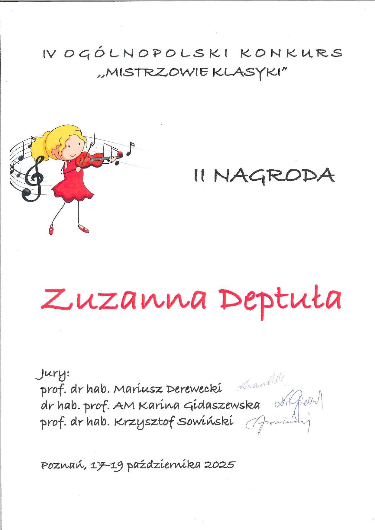 Zuzanna Deptuła - IV Ogólnopolski Konkurs "Mistrzowie Klasyki"