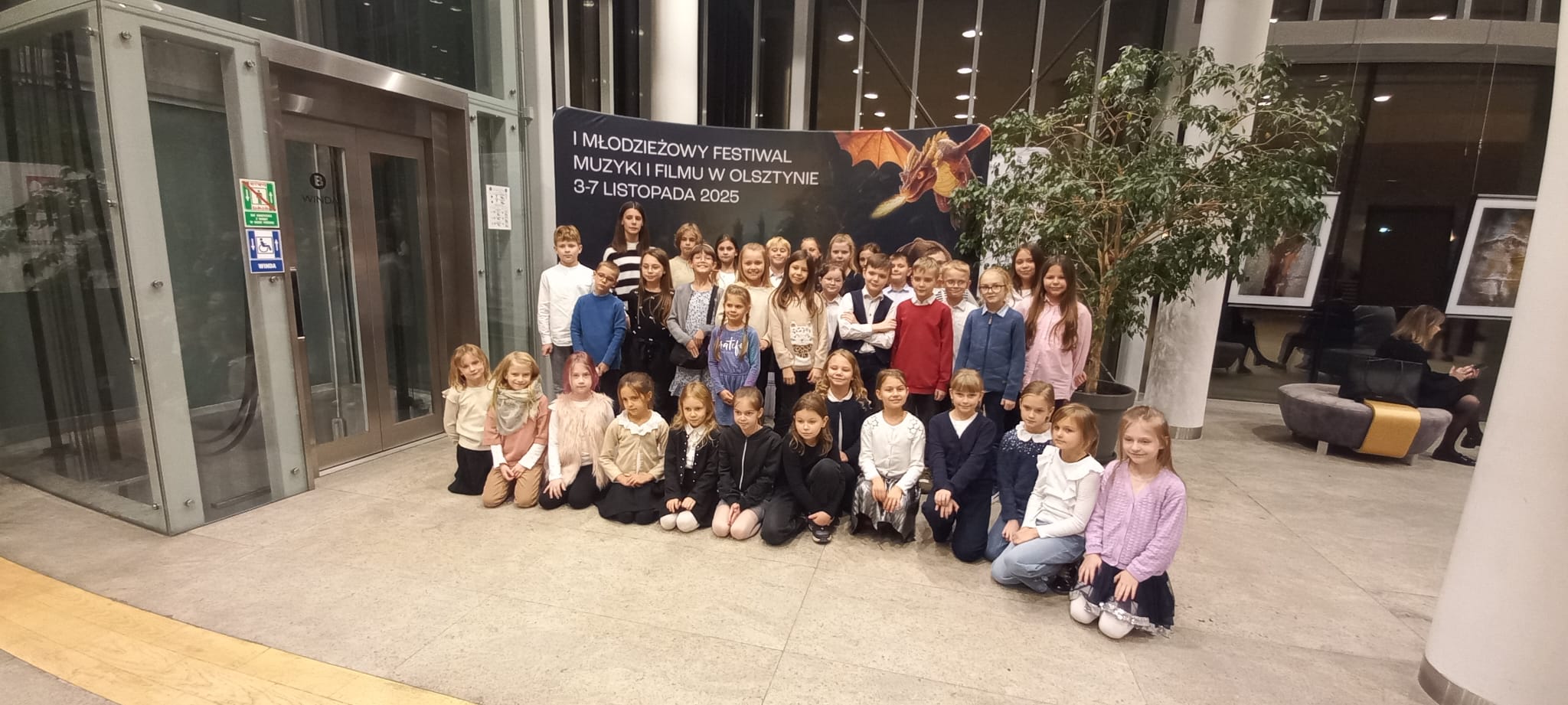W piątek, 7.11.2025r. nasi uczniowie wybrali się do Filharmonii Warmińsko-Mazurskiej w Olsztynie na koncert podsumowujący festiwal filmowy. Usłyszeli muzykę z filmów m.in. "Jak wytresować smoka", "Jurassic Park", "Tom i Jerry".