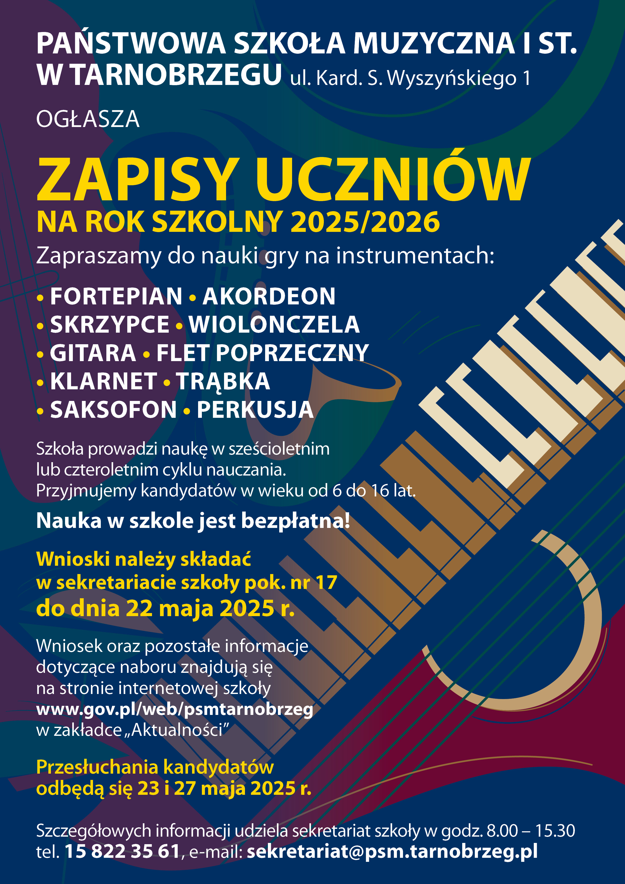 Informacje na temat zapisów uczniów na rok szkolny 2025/2026ZAPISY_UCZNIÓW_NA_ROK_SZKOLNY_2025-2026.docx 0.40MB Wniosek o przyjęcie do PSM I stopnia w Tarnobrzegu wraz z klauzulą informacyjną