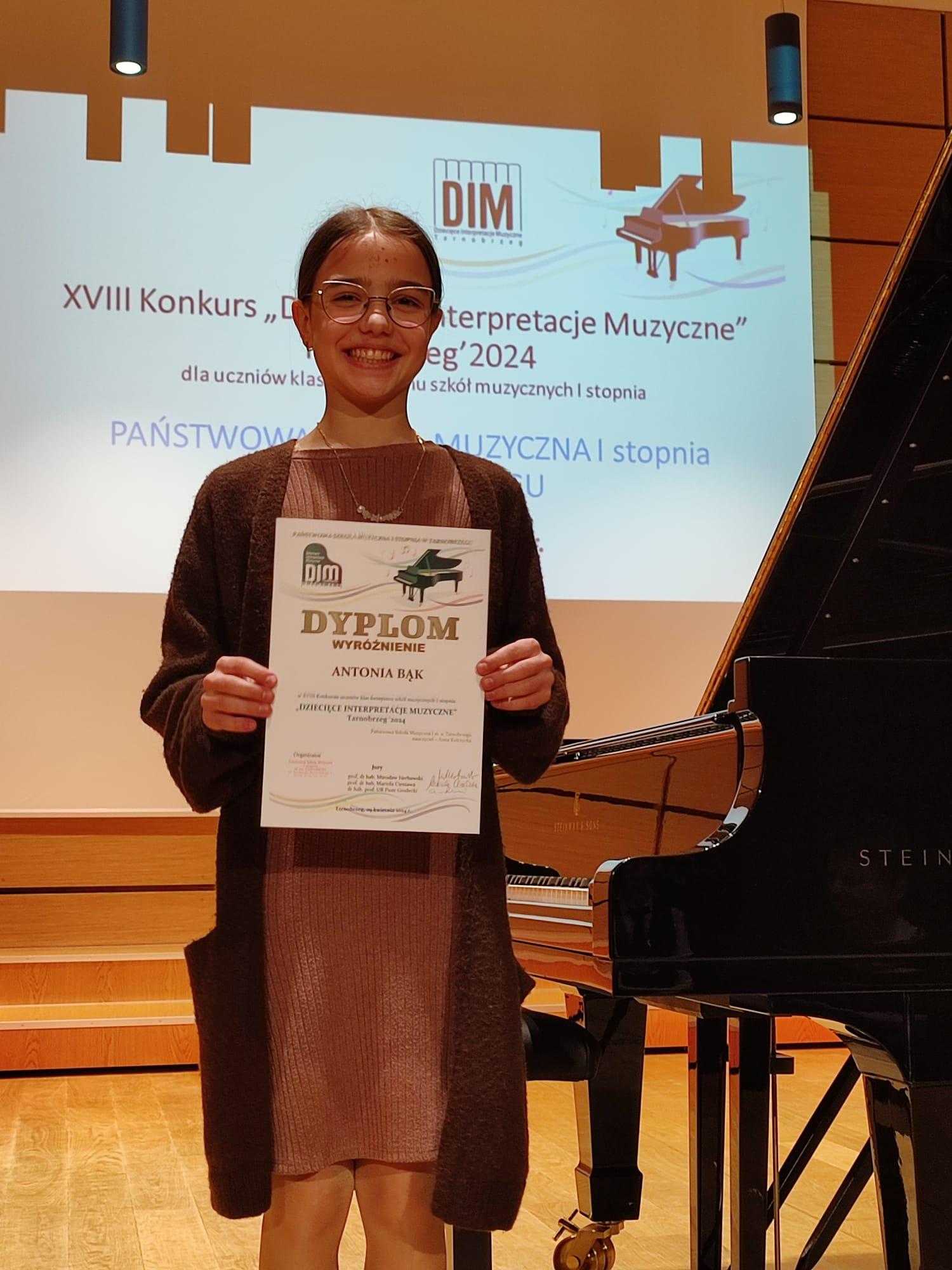 Antonia Bąk z klasy fortepianu Anny Wyrzykowskiej-Kulczyckiej zdobyła wyróżnienie.