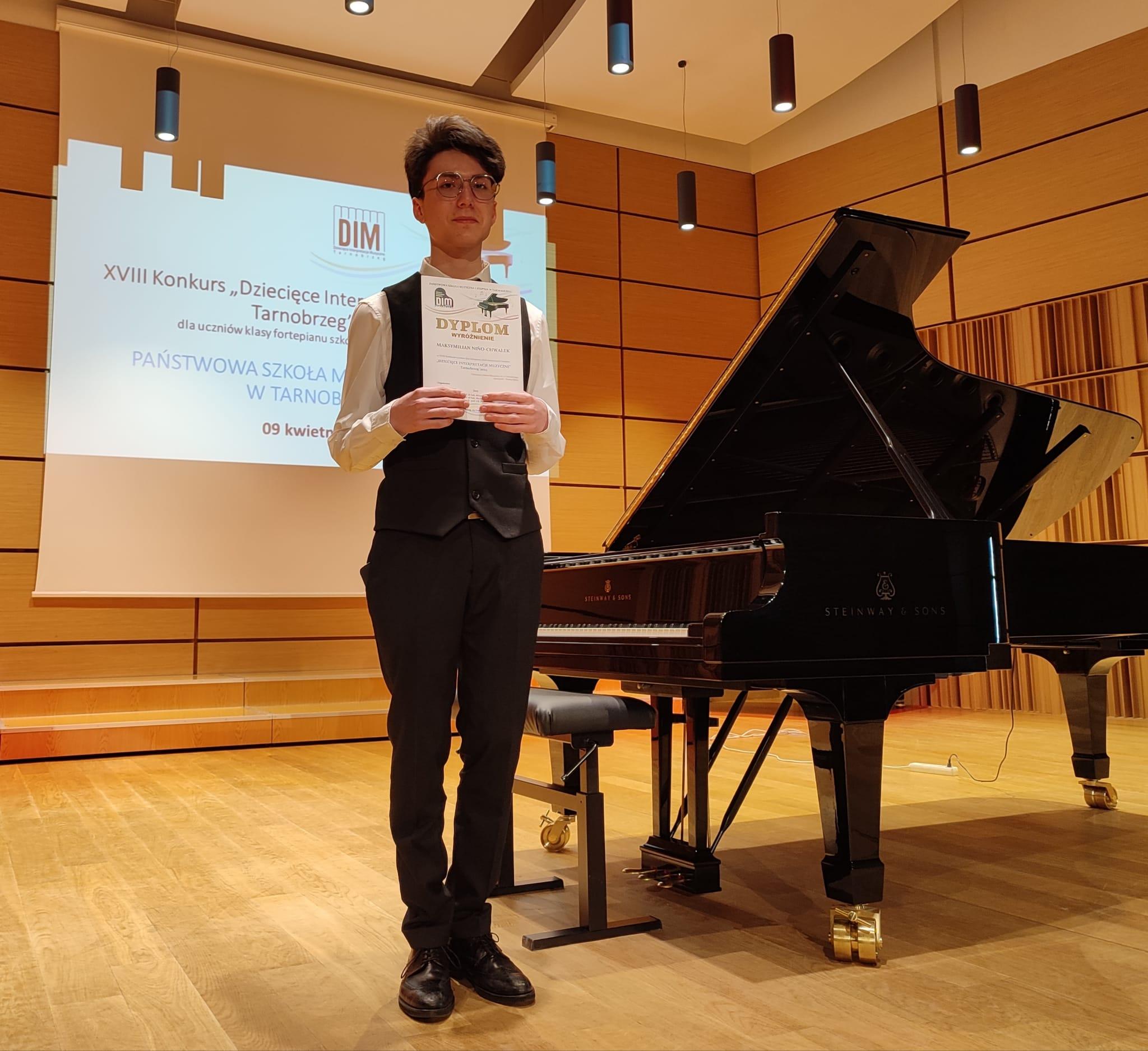 Maksymilian Nino Chwałek z klasy fortepianu Renaty Skóry zdobył wyróżnienie.