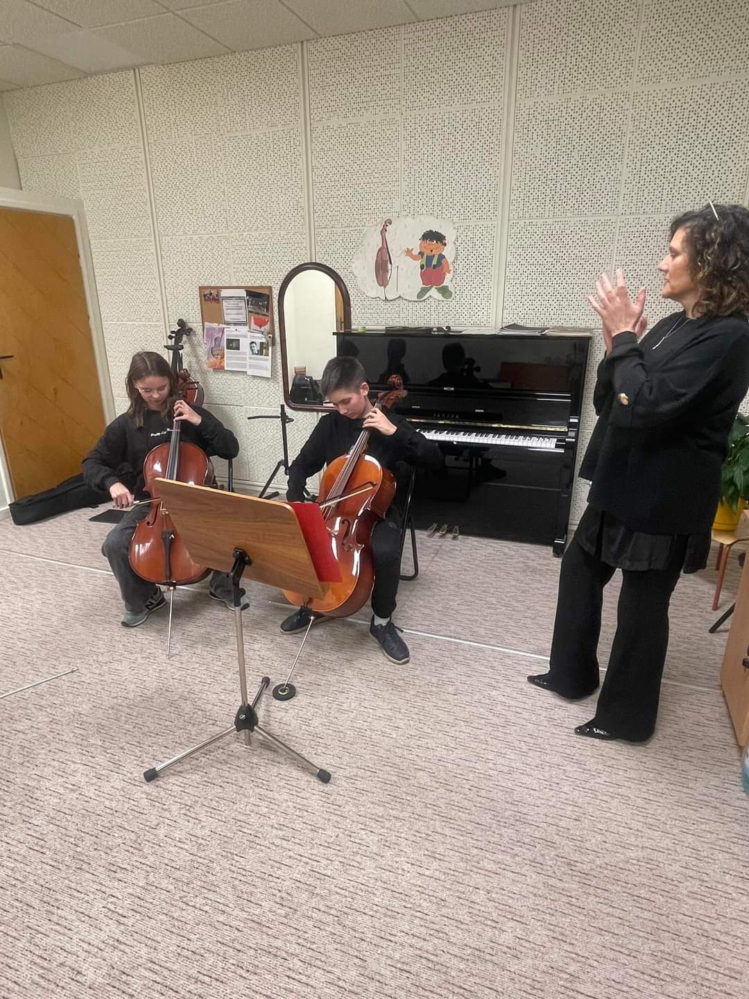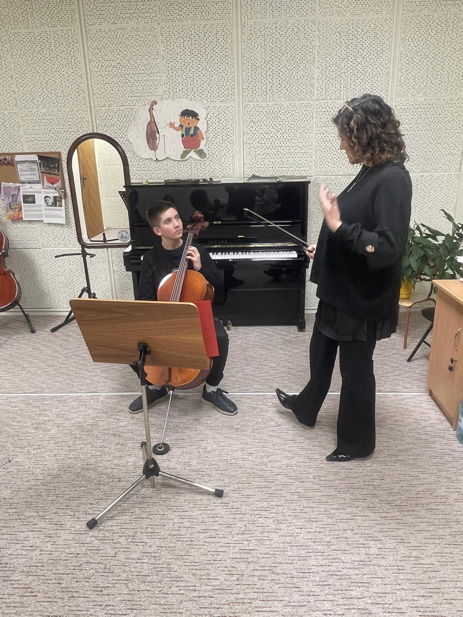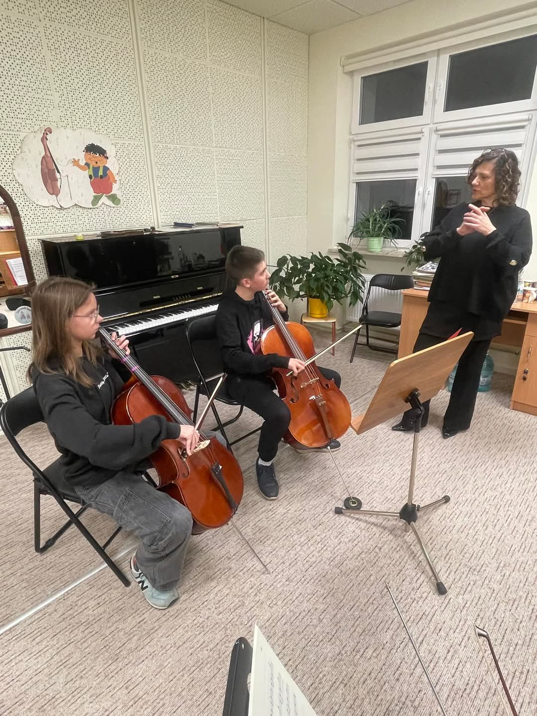 W dniu 20 listopada 2024 r. w naszej szkole odbyły się warsztaty wiolonczelowe z Panią Profesor Barbarą Łypik-Sobaniec z Akademii Muzycznej im. Krzysztofa Pendereckiego w Krakowie. Wszyscy uczniowie klasy wiolonczeli skorzystali pracując z Panią Profesor nad kluczowymi zagadnieniami techniki wiolonczelowej i aparatu gry. Wszystko przebiegało w miłej i życzliwej atmosferze zabawyz dźwiękiem. To był bardzo owocny czas dla naszej klasy wiolonczeli.
