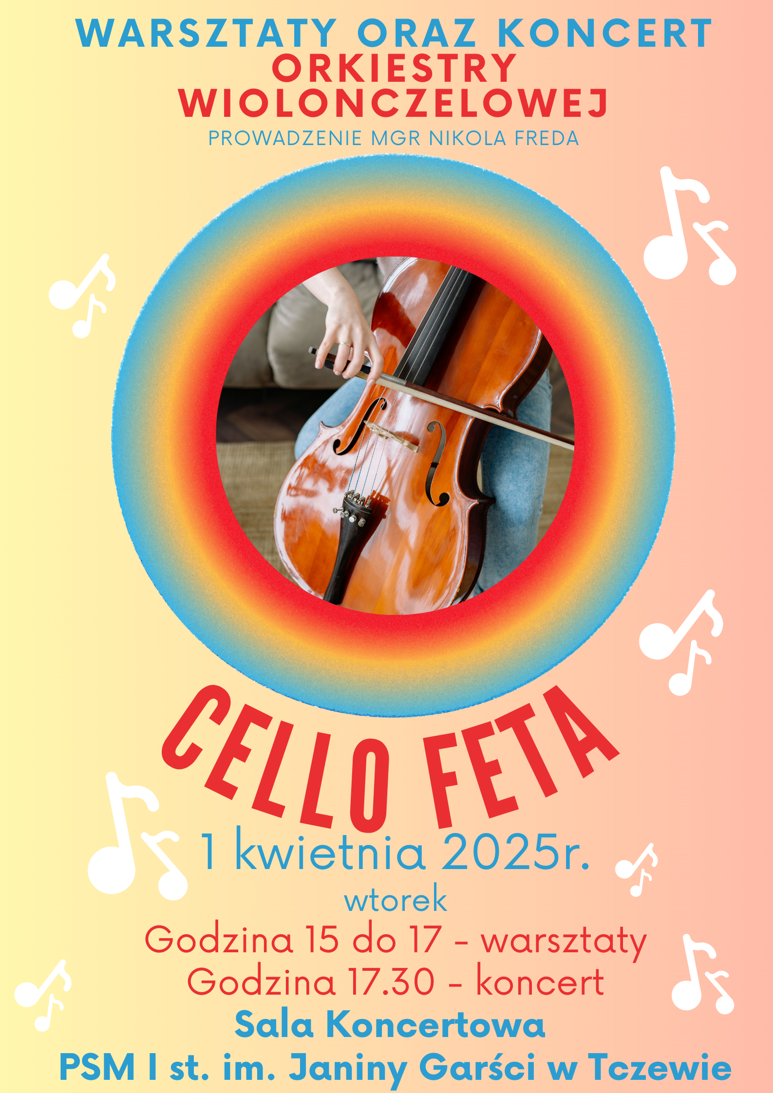 Serdecznie zapraszamy wszystkich wiolonczelistów do udziału w WARSZTATACH - ORKIESTRZE WIOLONCZELOWEJ oraz KONCERCIE.