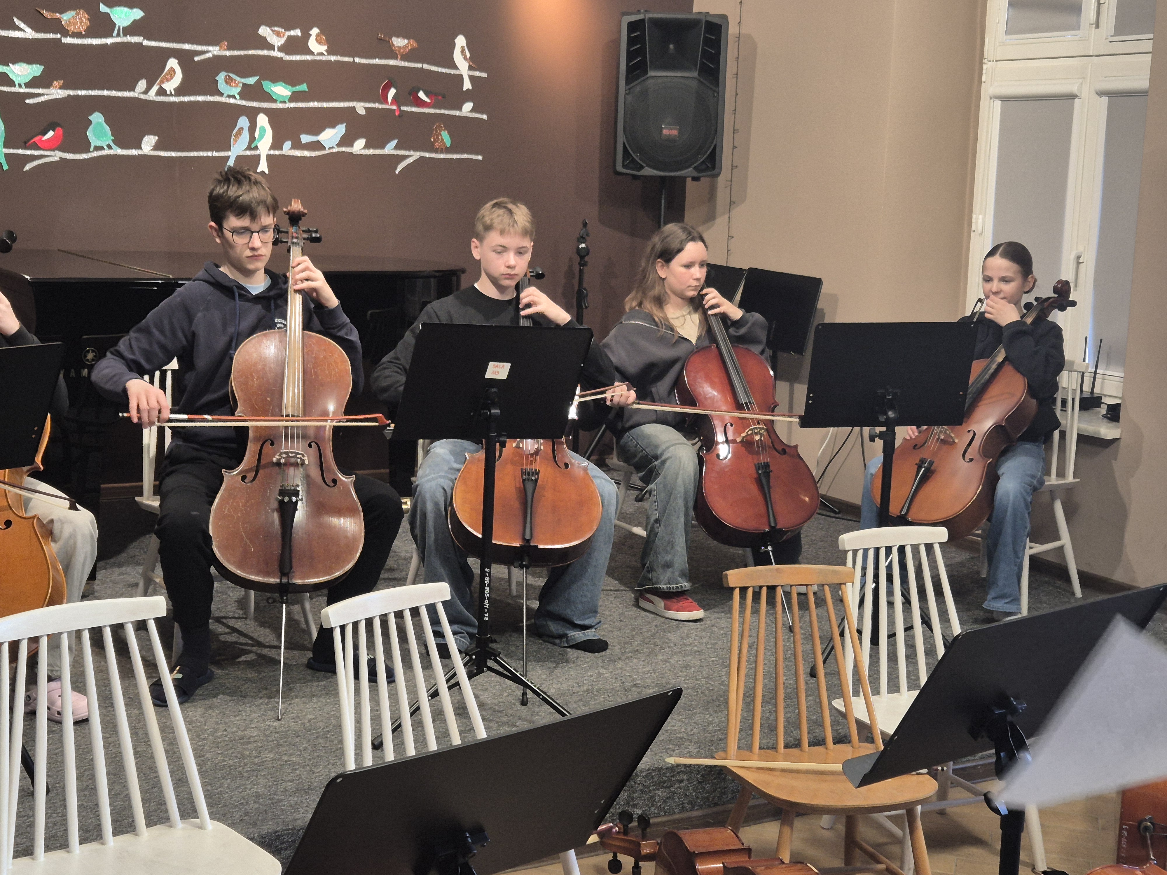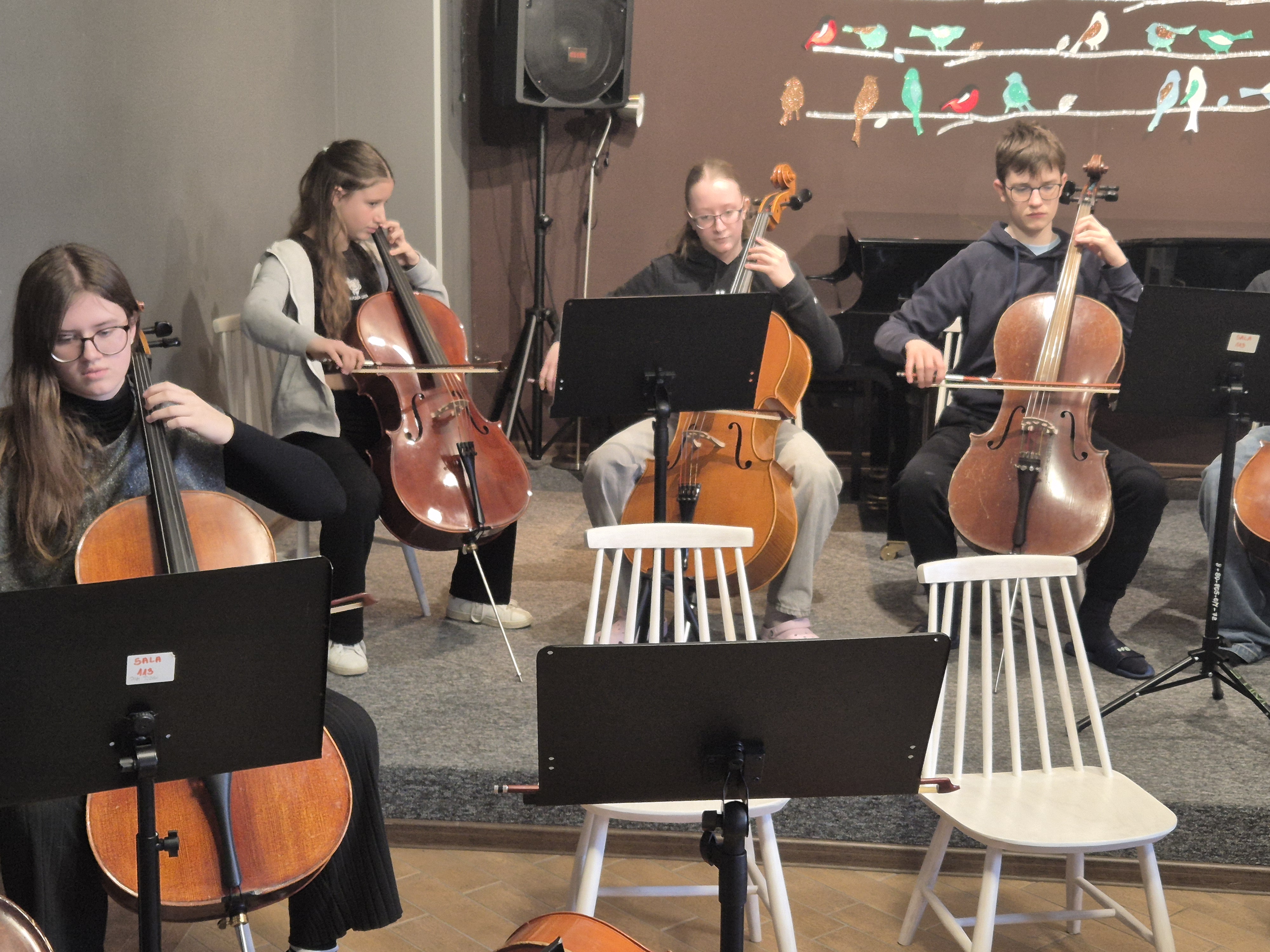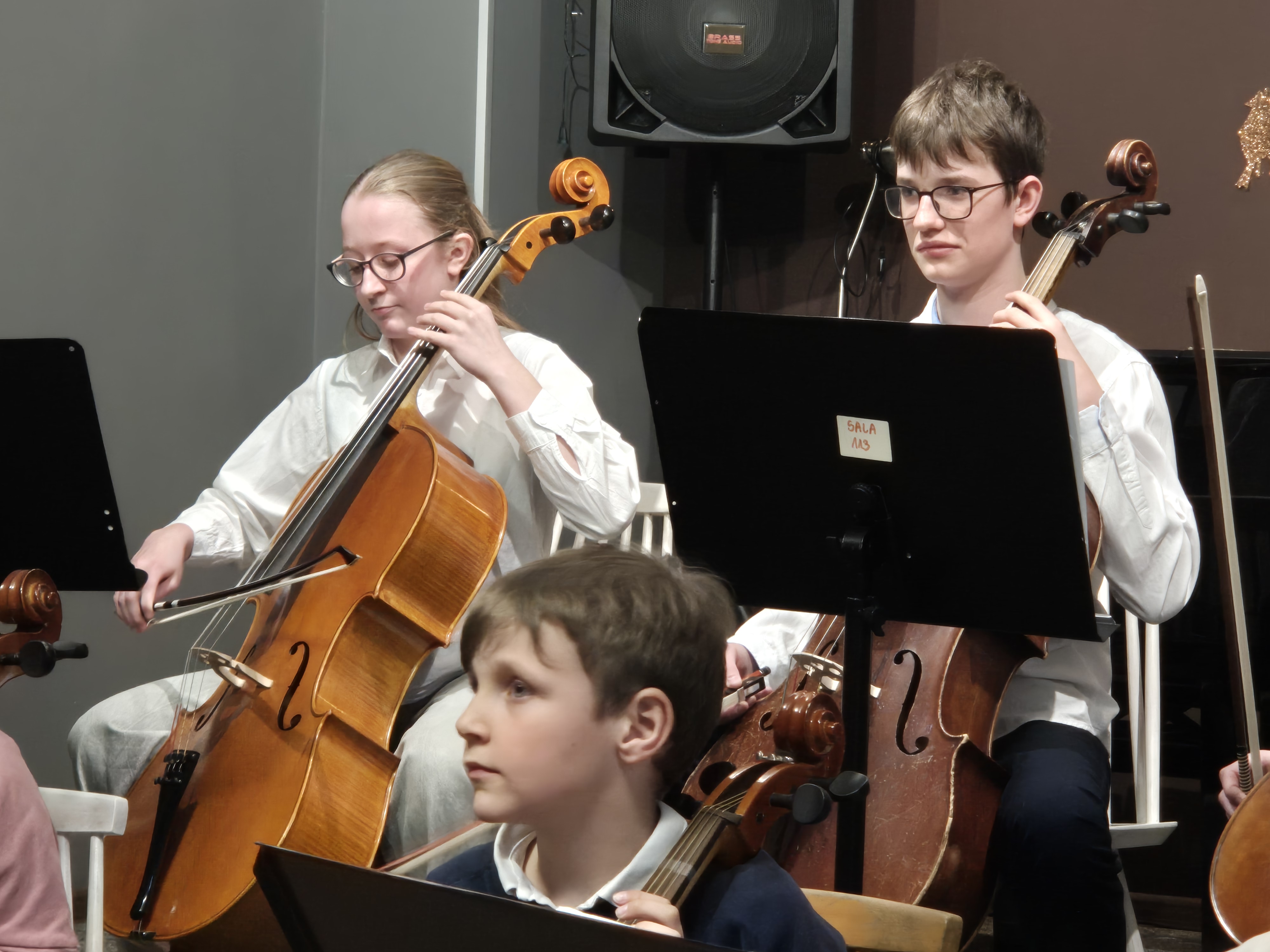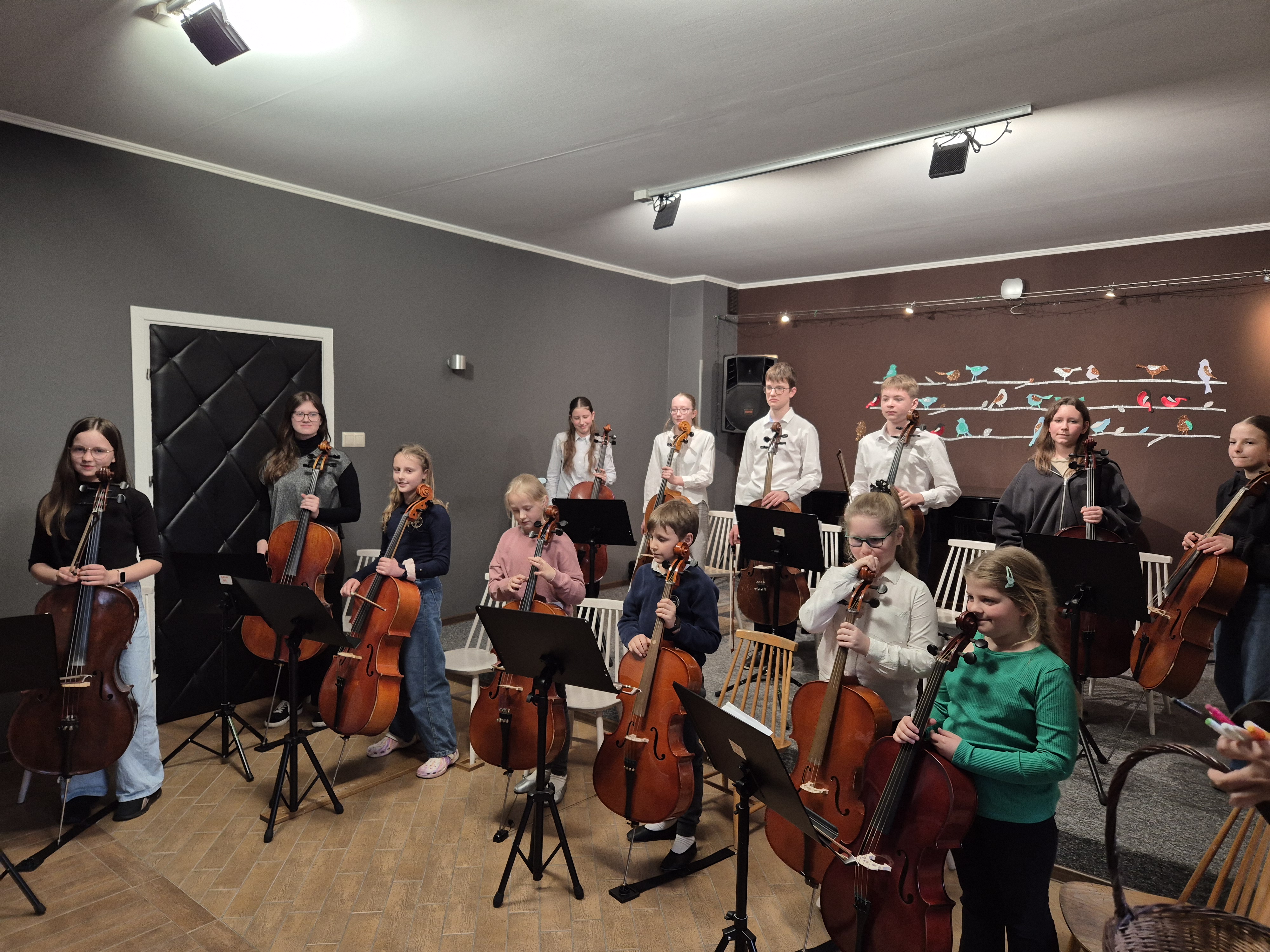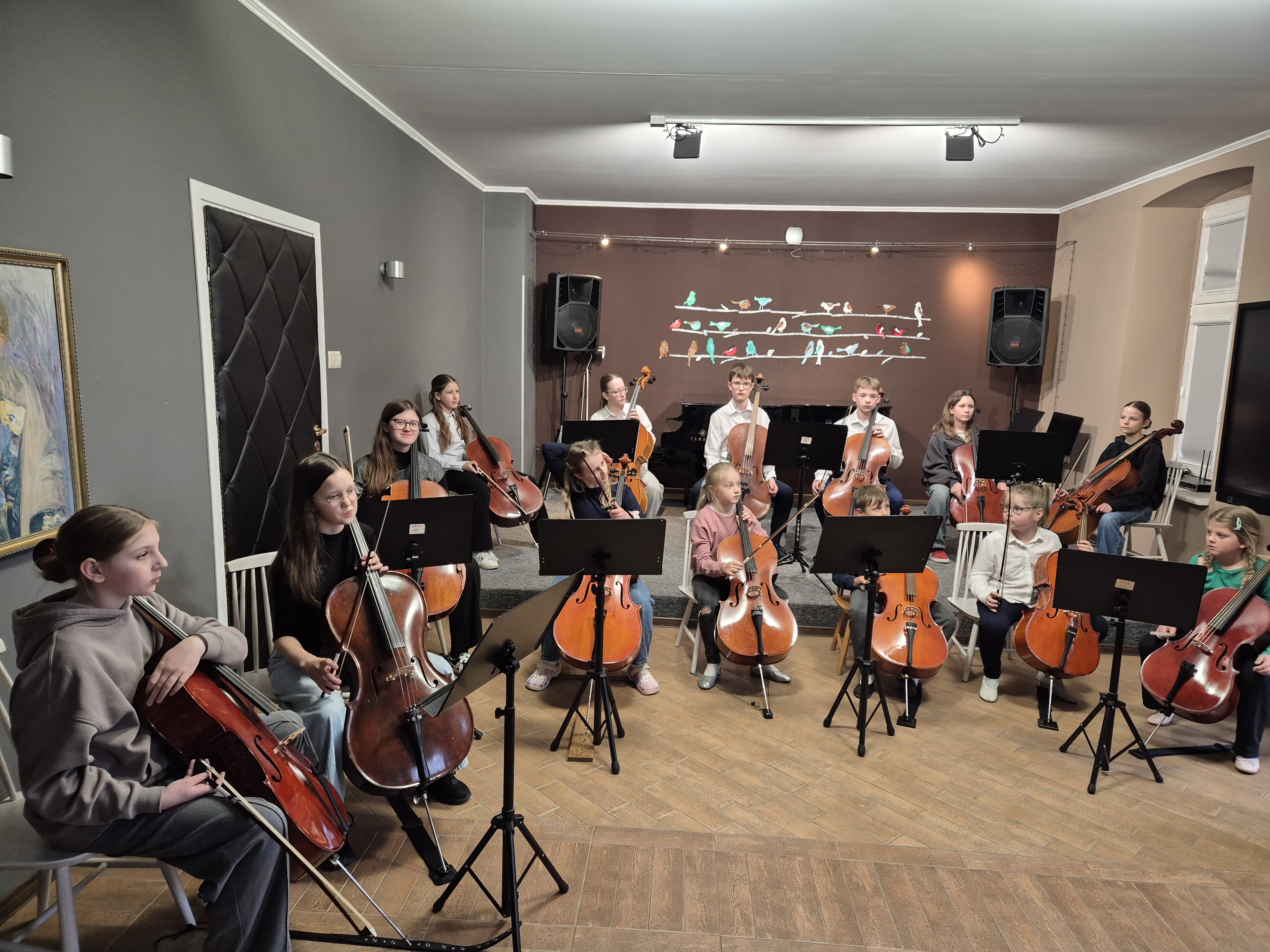 1 kwietnia 2025 r. (i to nie żart...) mieliśmy w sali koncertowej szkoły muzycznej wiolonczelową fetę - świętowanie poprzez wspólne muzykowanie.
