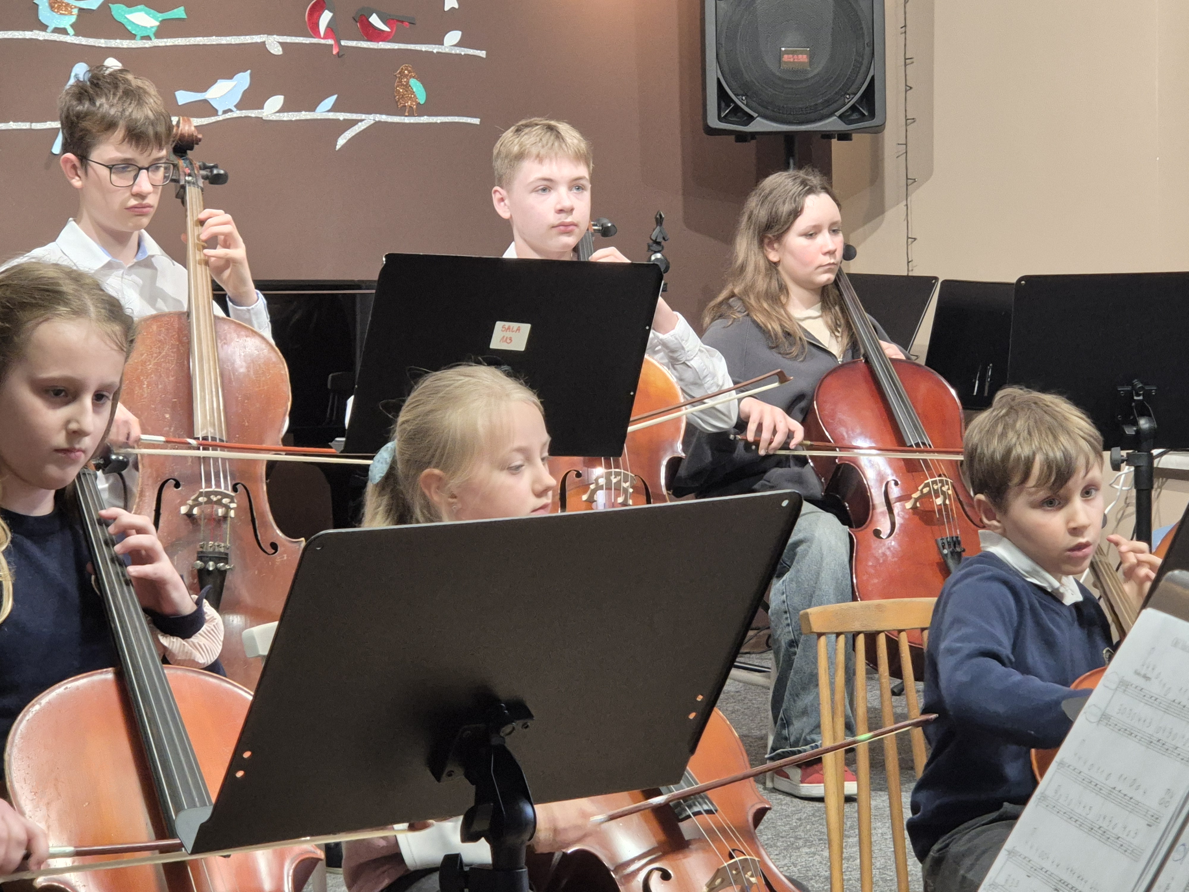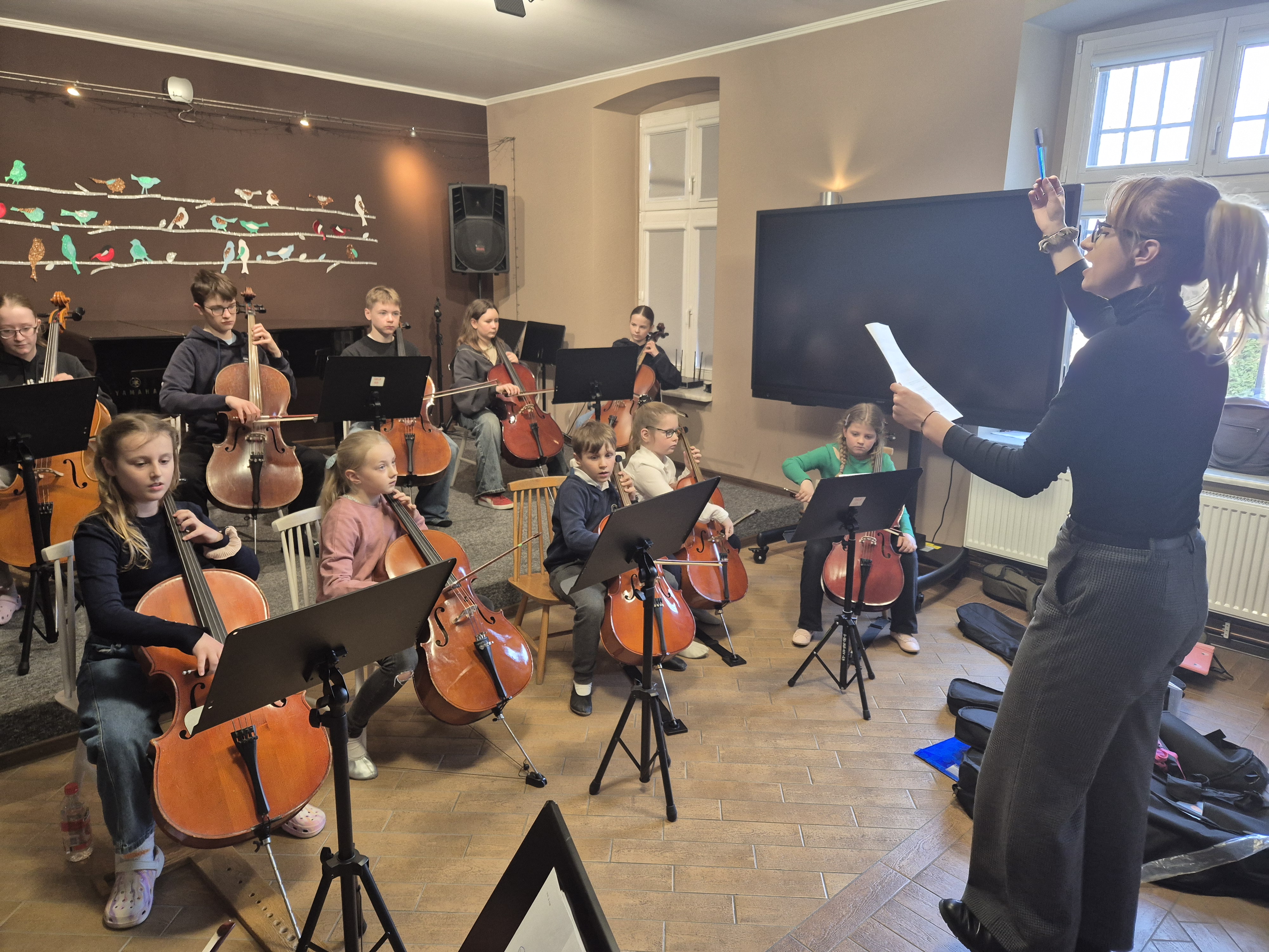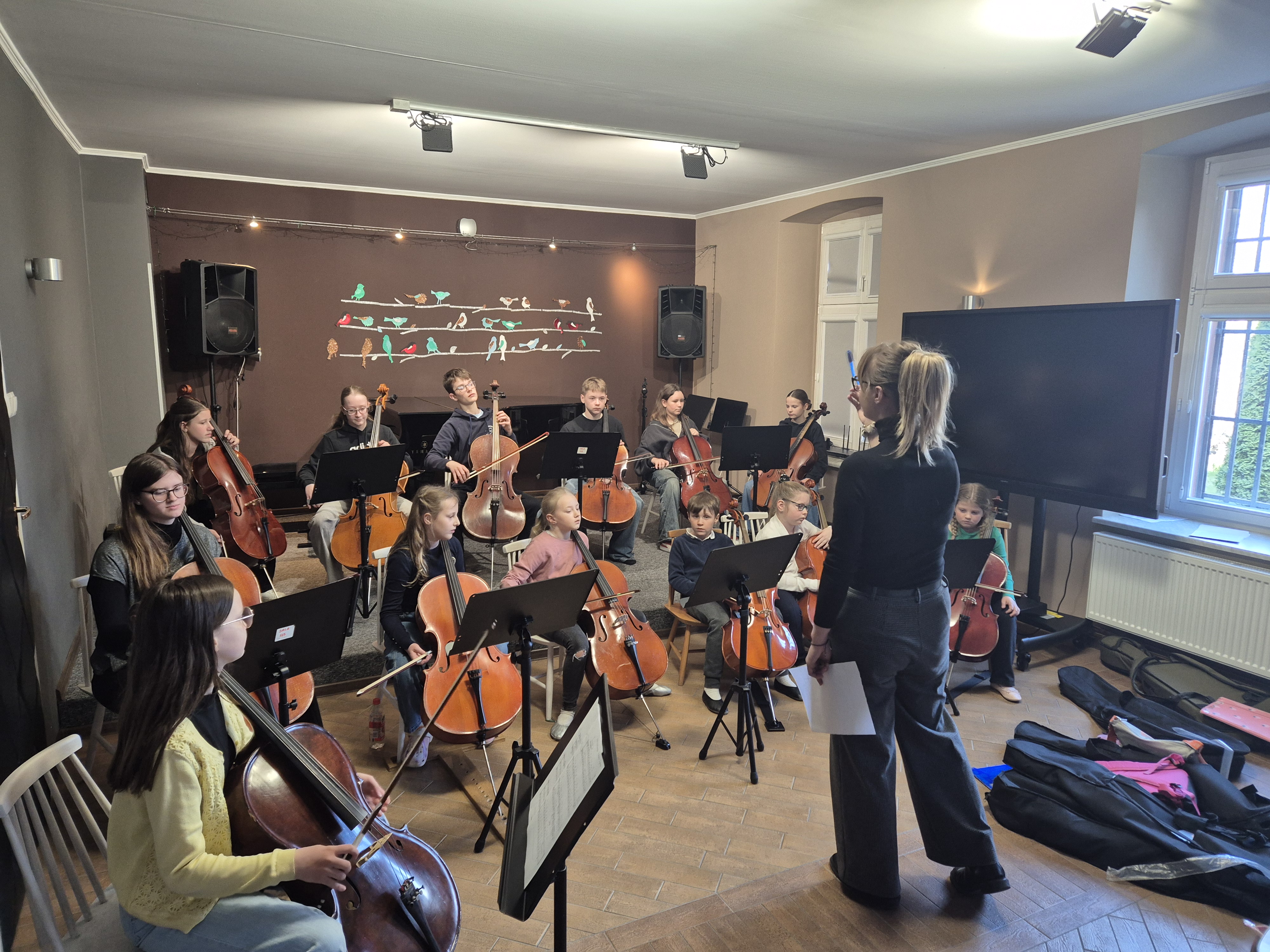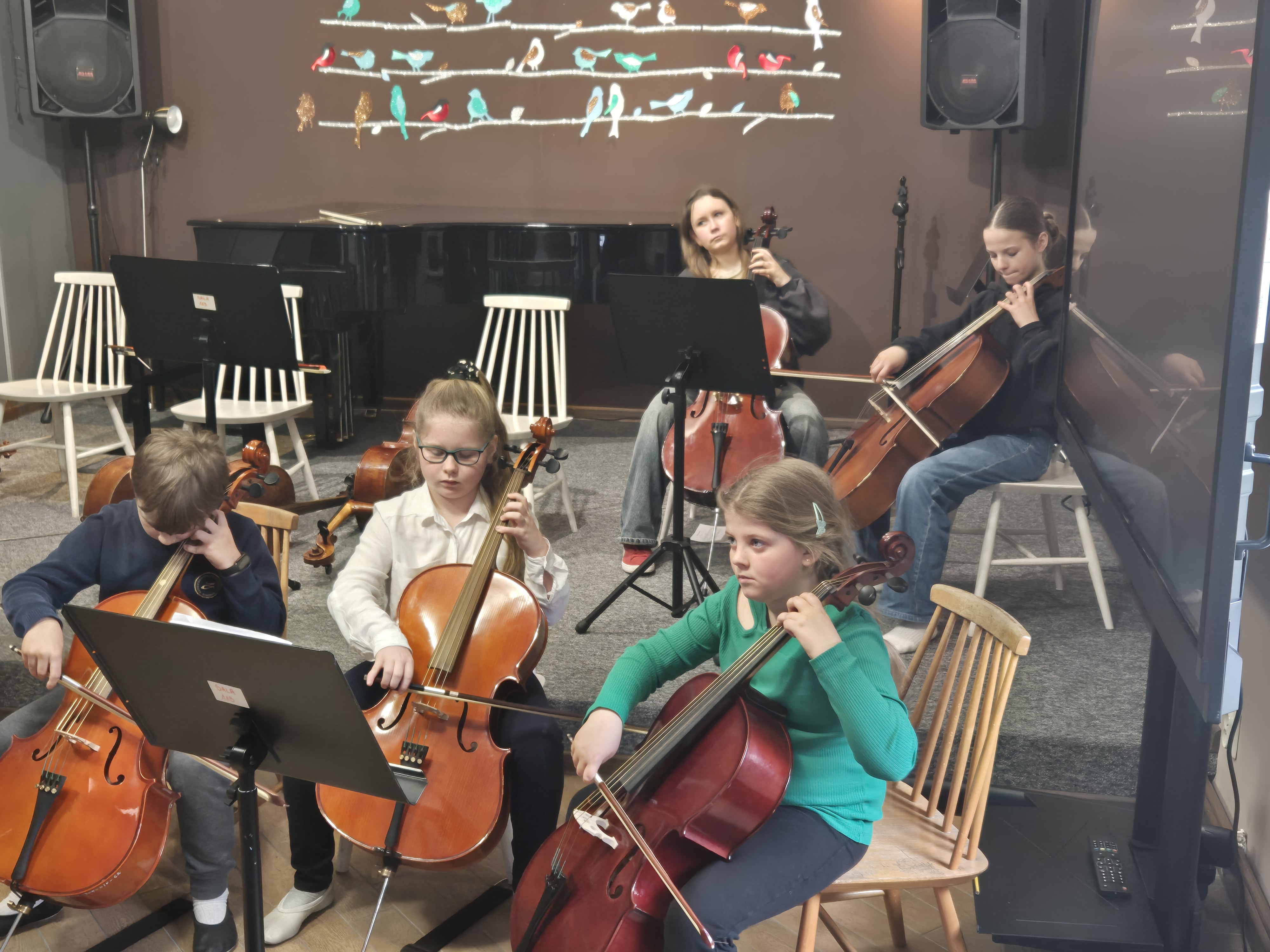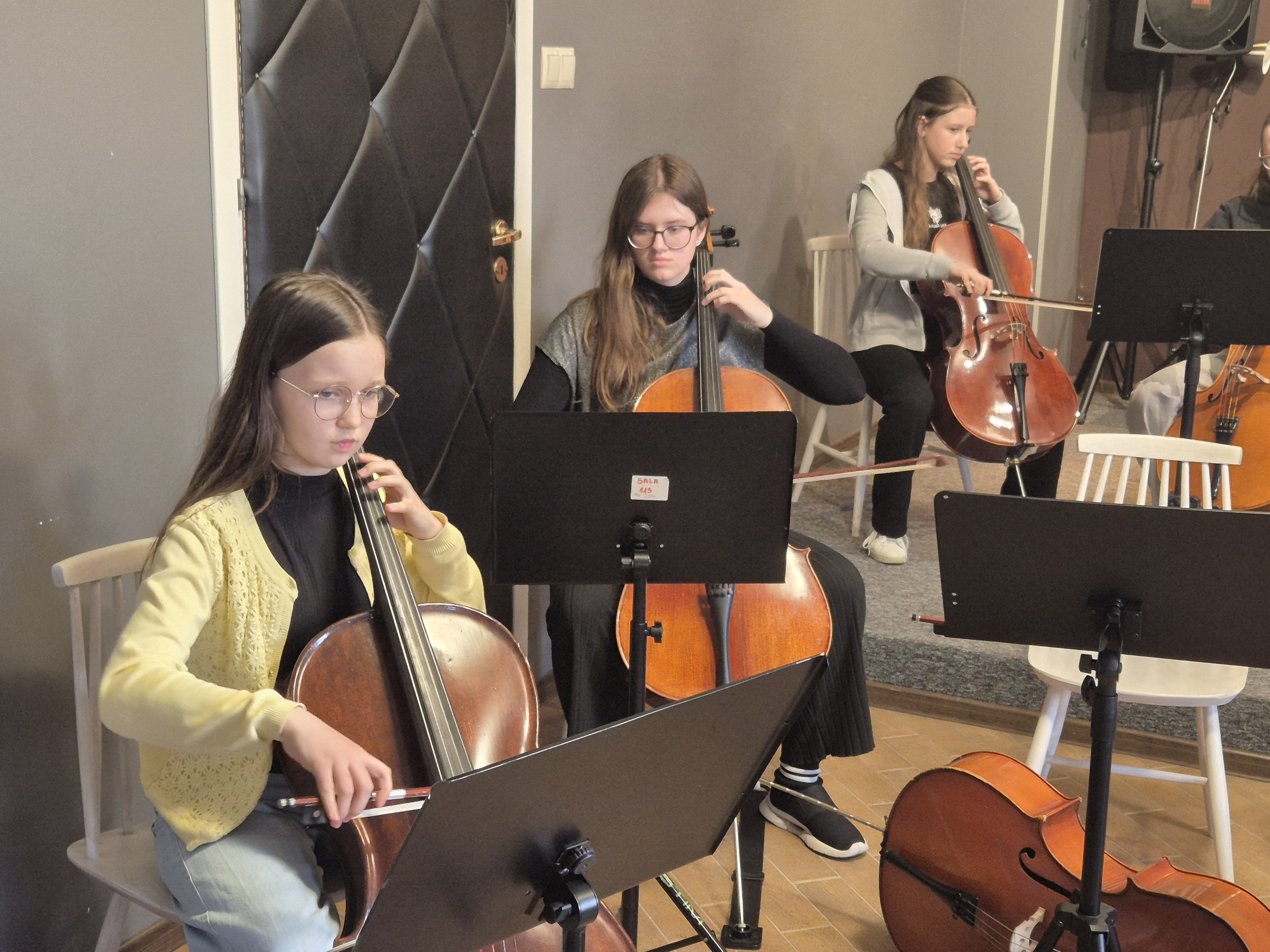 1 kwietnia 2025 r. (i to nie żart...) mieliśmy w sali koncertowej szkoły muzycznej wiolonczelową fetę - świętowanie poprzez wspólne muzykowanie.