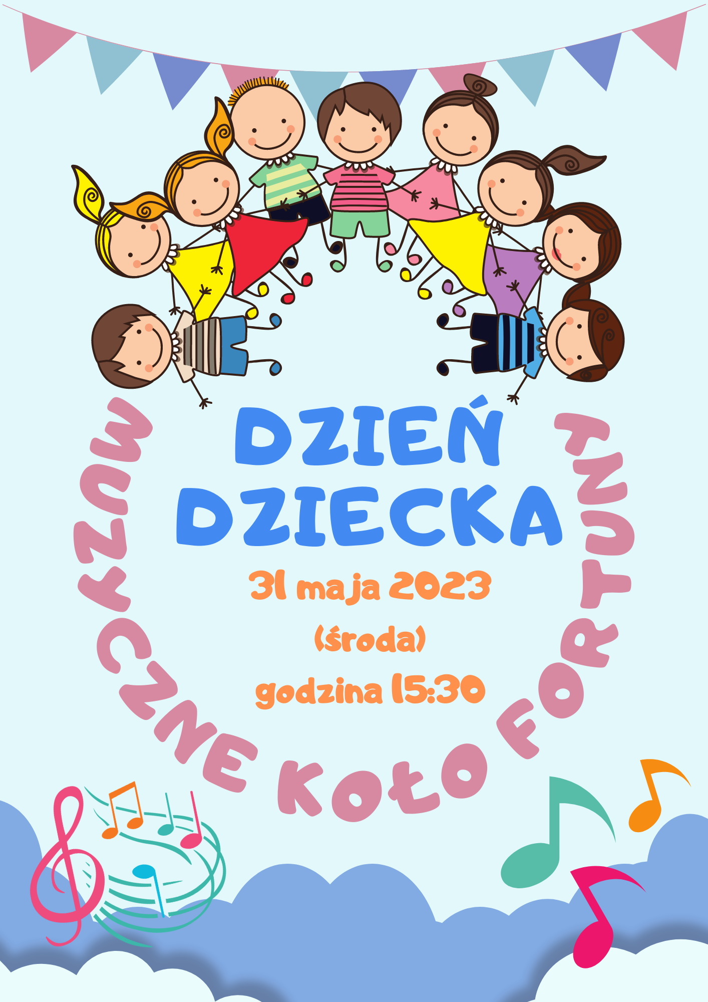 Z okazji dnia dziecka zapraszamy wszystkich naszych uczniów na "Muzyczne koło fortuny", które odbędzie się 31 maja 2023 r. o godzinie 15:30 w sali koncertopwej PSM w Tczewie.