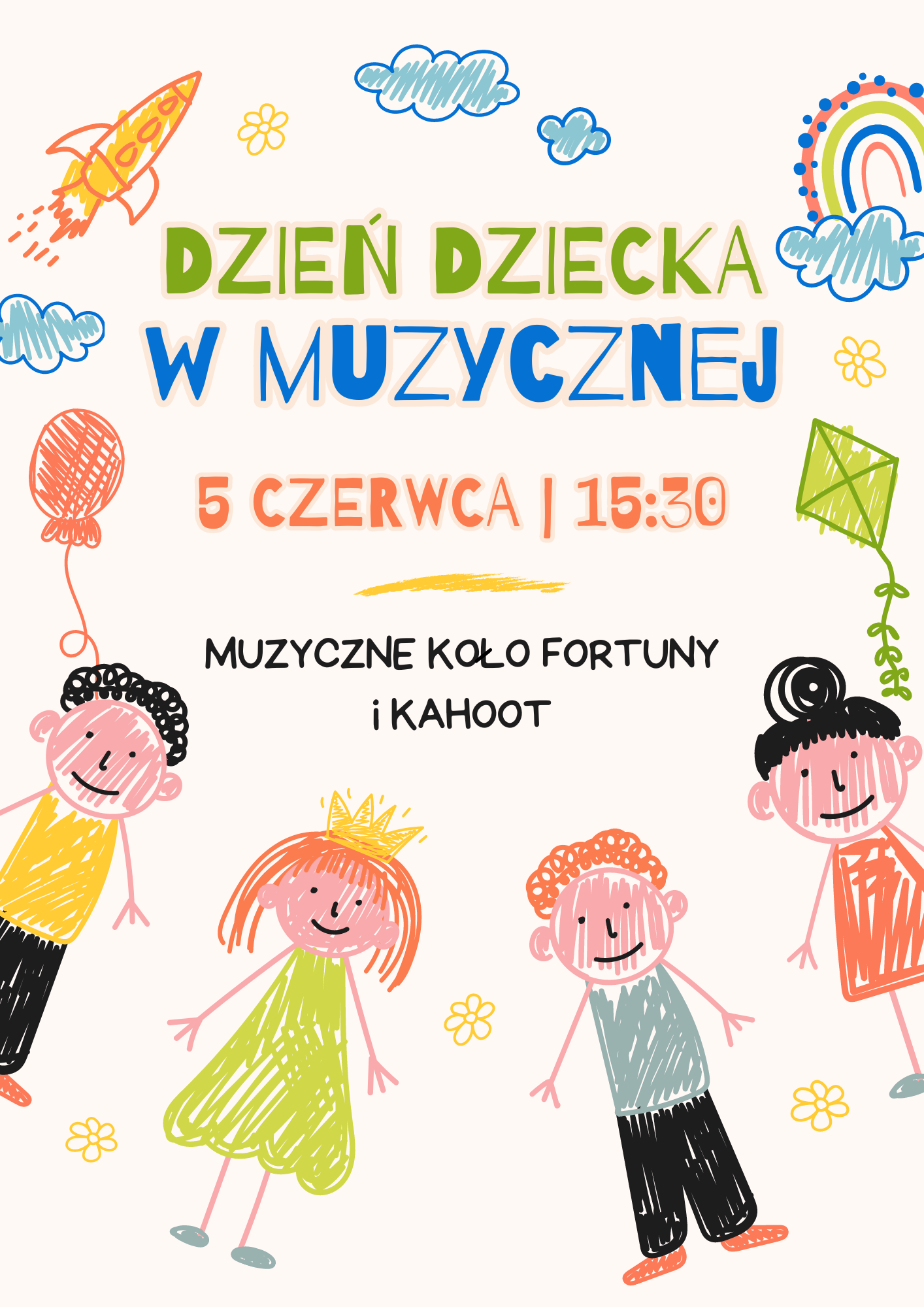 Wszystkich uczniów z okazji Dnia Dziecka zapraszamy na wspólne świętowanie i wspólną zabawę - 05 czerwca 2024 r. na godzinę 15:30, do sali koncertowej szkoły muzycznej zapraszamy na Muzyczne koło fortuny oraz Kahoot.