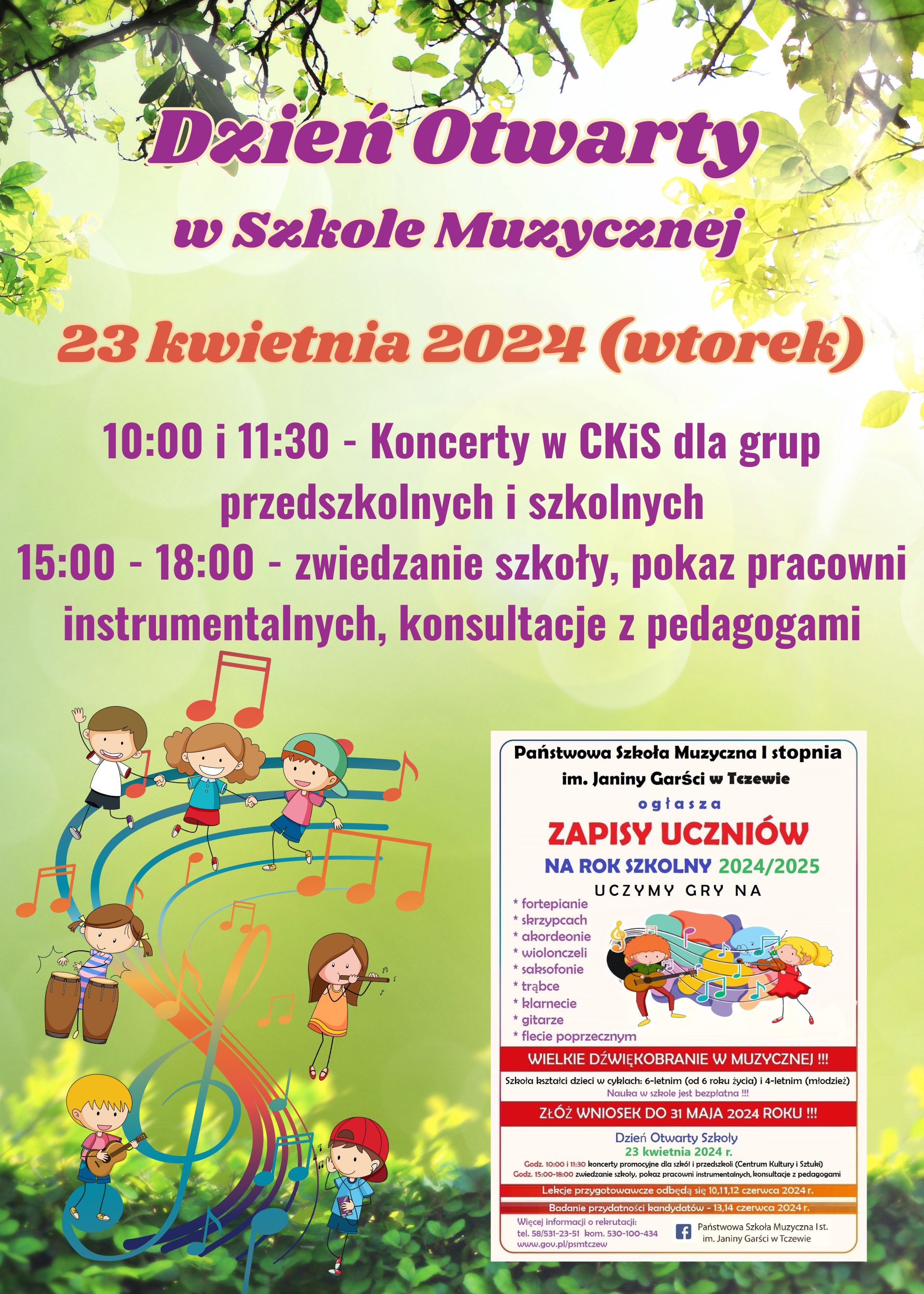 23 kwietnia 2024 (wtorek) zapraszamy na DZIEŃ OTWARTY SZKOŁY MUZYCZNEJ!!