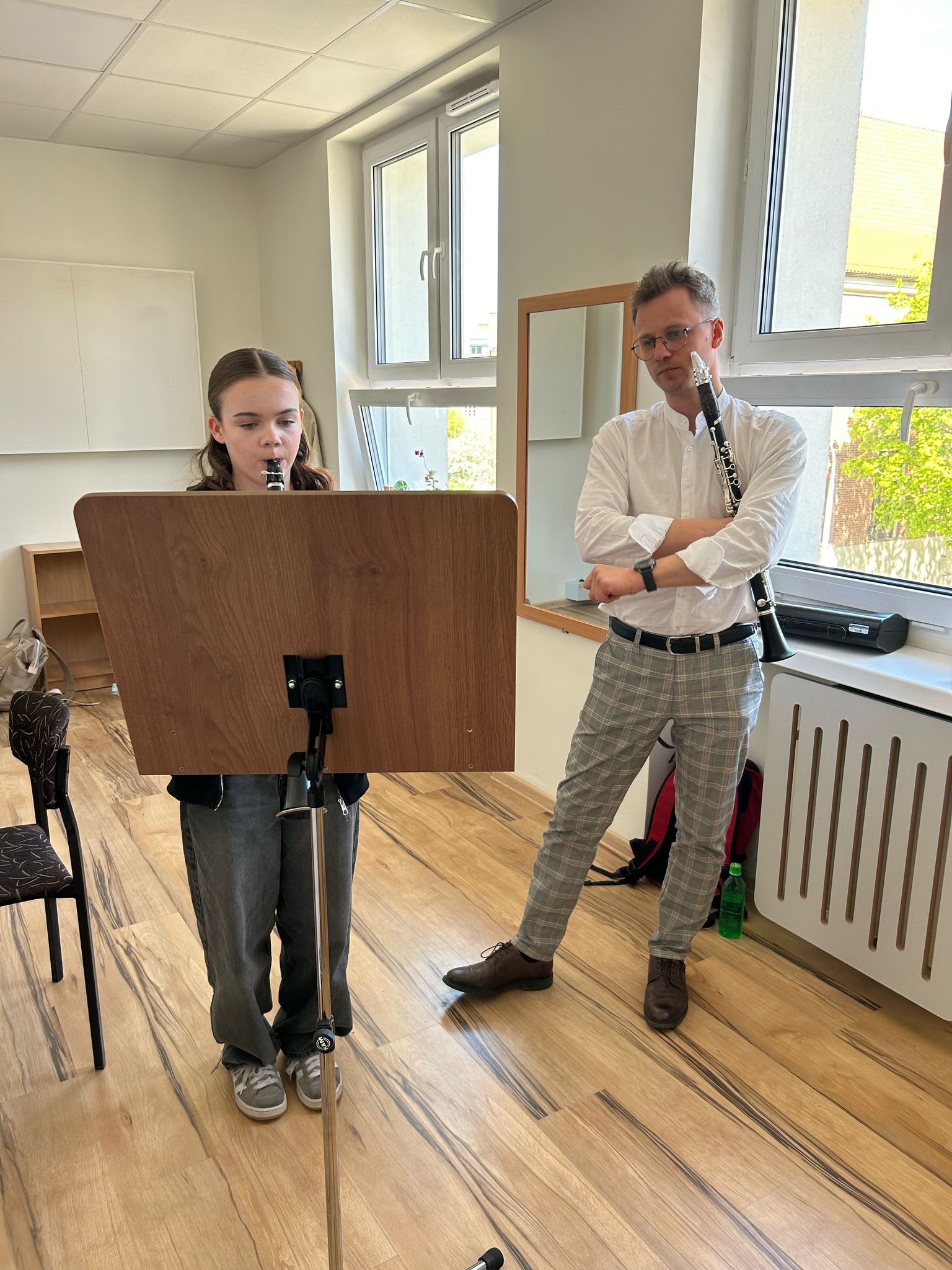 Na pół kroku przed wypoczynkiem majowym krótka fotorelacja z Gdańskiego Międzynarodowego Festiwalu Instrumentów Dętych, który odbył się 28 kwietnia 2025 r. w Ogólnokształcącej Szkole Muzycznej I i II st. w Gdańsku. W warsztatach i wykładach uczestniczyła nasza uczennica - Amelia Szwoch, wraz ze swoją nauczycielką klarnetu p. Aleksandrą Głowacką. Amelia pracowała podczas warsztatów pod czujnym okiem i uchem dwóch profesorów: Alesandro Travaglini (Włochy) oraz Dawida Głowackiego (Gdańsk). Lekcje mistrzowskie i wykłady to wspaniała okazja do zdobywania wiedzy i doświadczenia.