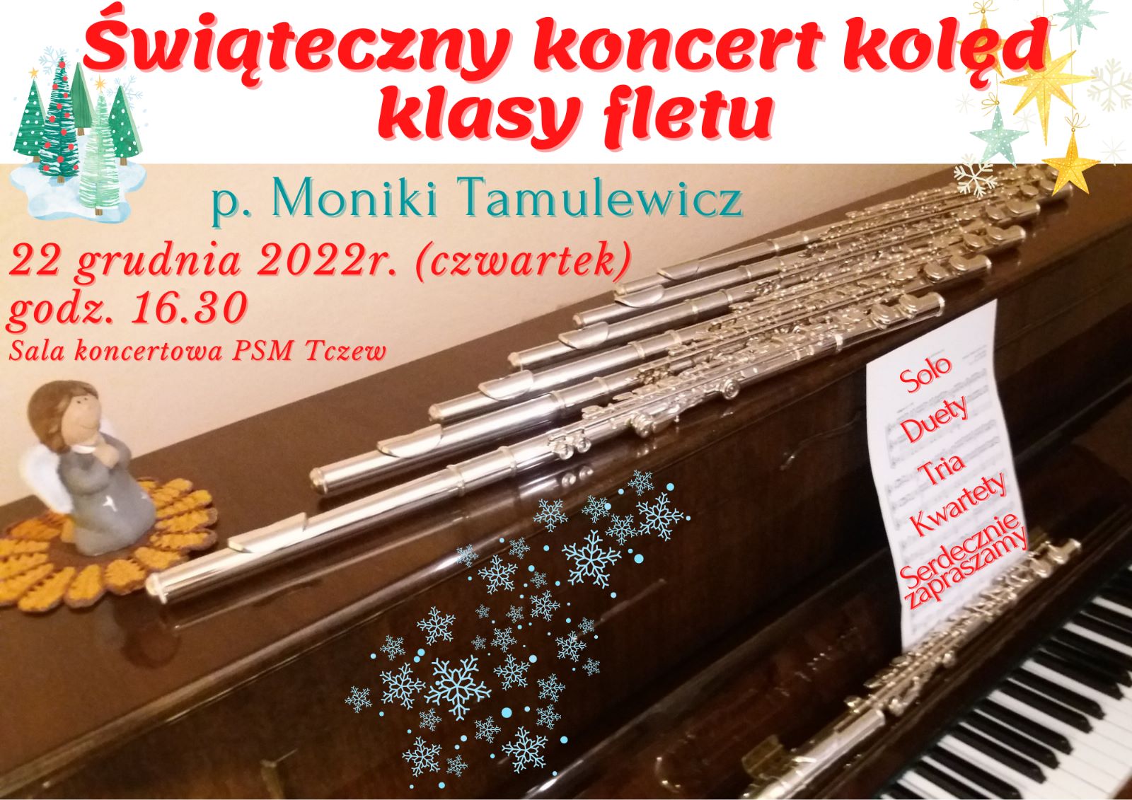 22.12.2022 (czwartek) godzina 16:30 – Świąteczny koncert kolęd klasy fletu p. Moniki Tamulewicz.