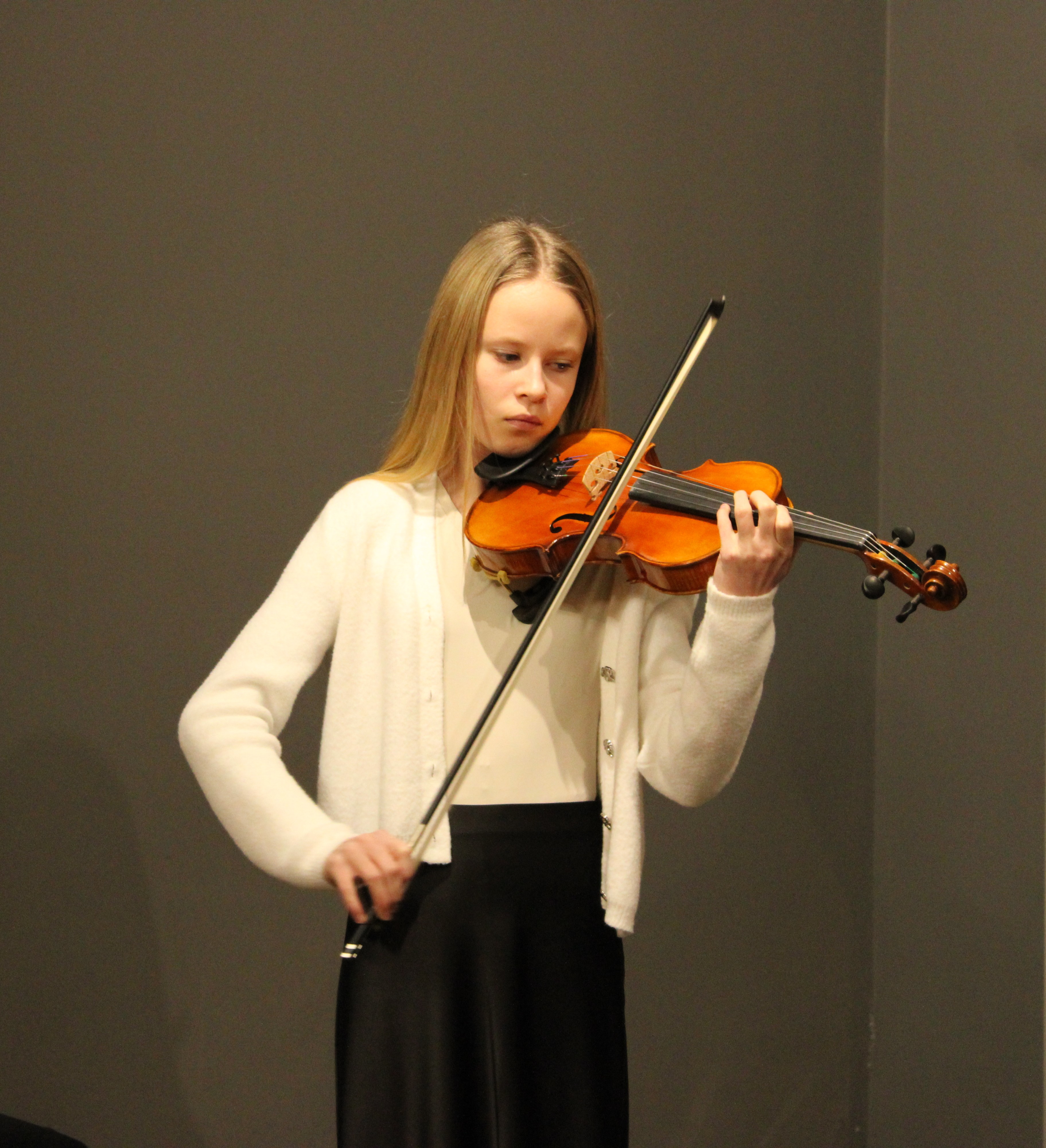 03 lutego 2025r. na Karnawałowym koncercie w wykonaniu skrzypków - uczniów p. Marty Kołodziejskiej-Kacprzak, usłyszeć mogliśmy tańce polskie, ragtime, piosenki z wariacjami, wesołego "Łosia Patataja", a także prawdziwą zimę ze skrzypiącym śniegiem i zamiecią. Wszystkim uczniom przy fortepianie towarzyszyła p. Monika Madej-Strukiel. Wielka brawa dla wszystkich wykonawców.