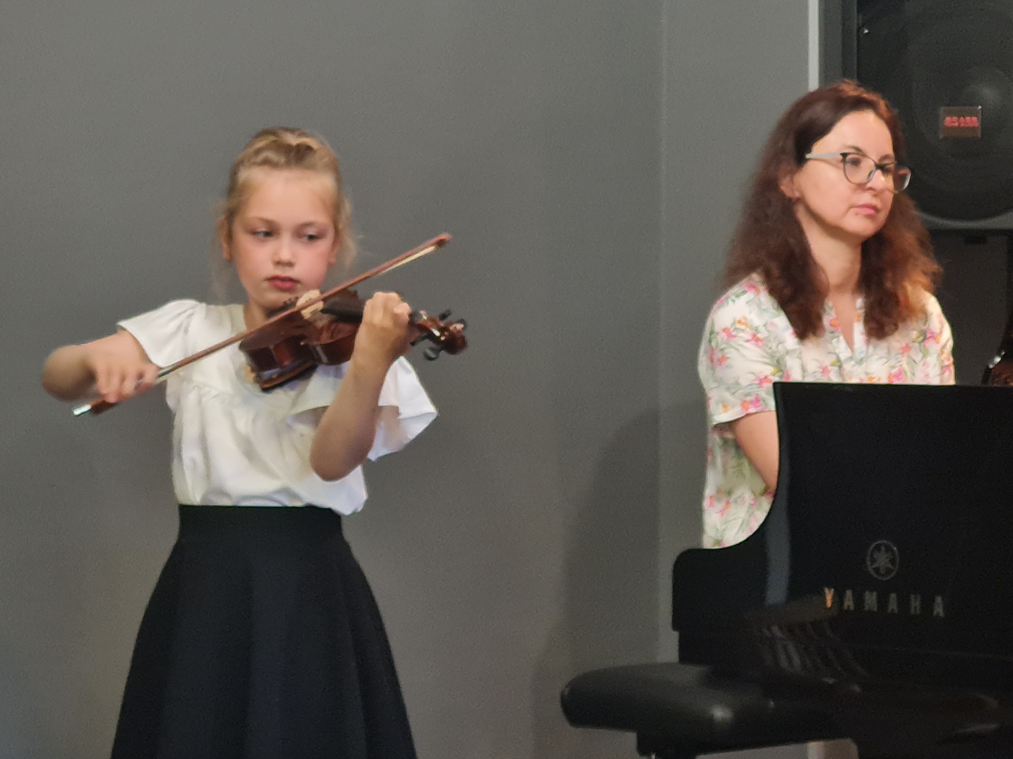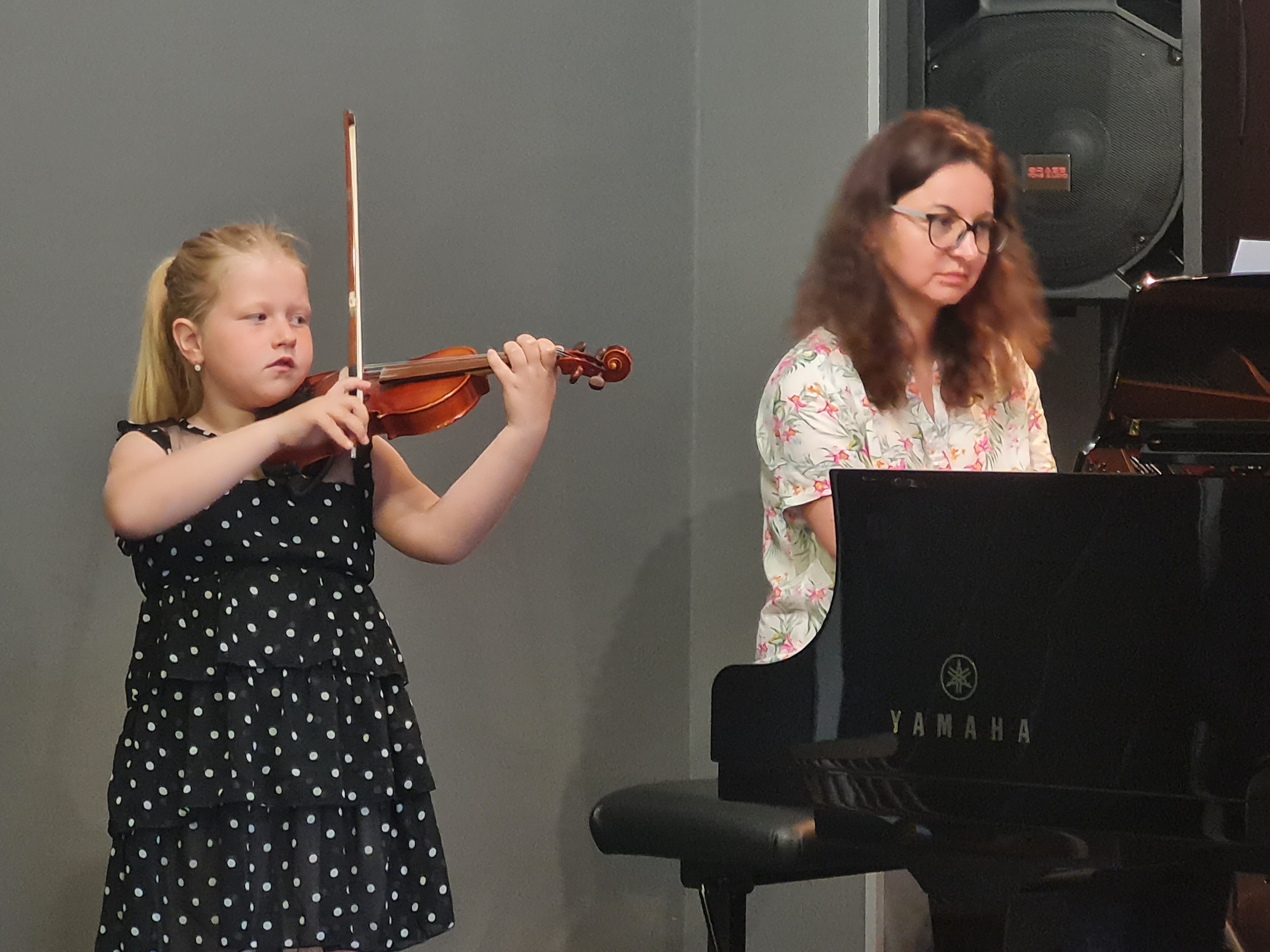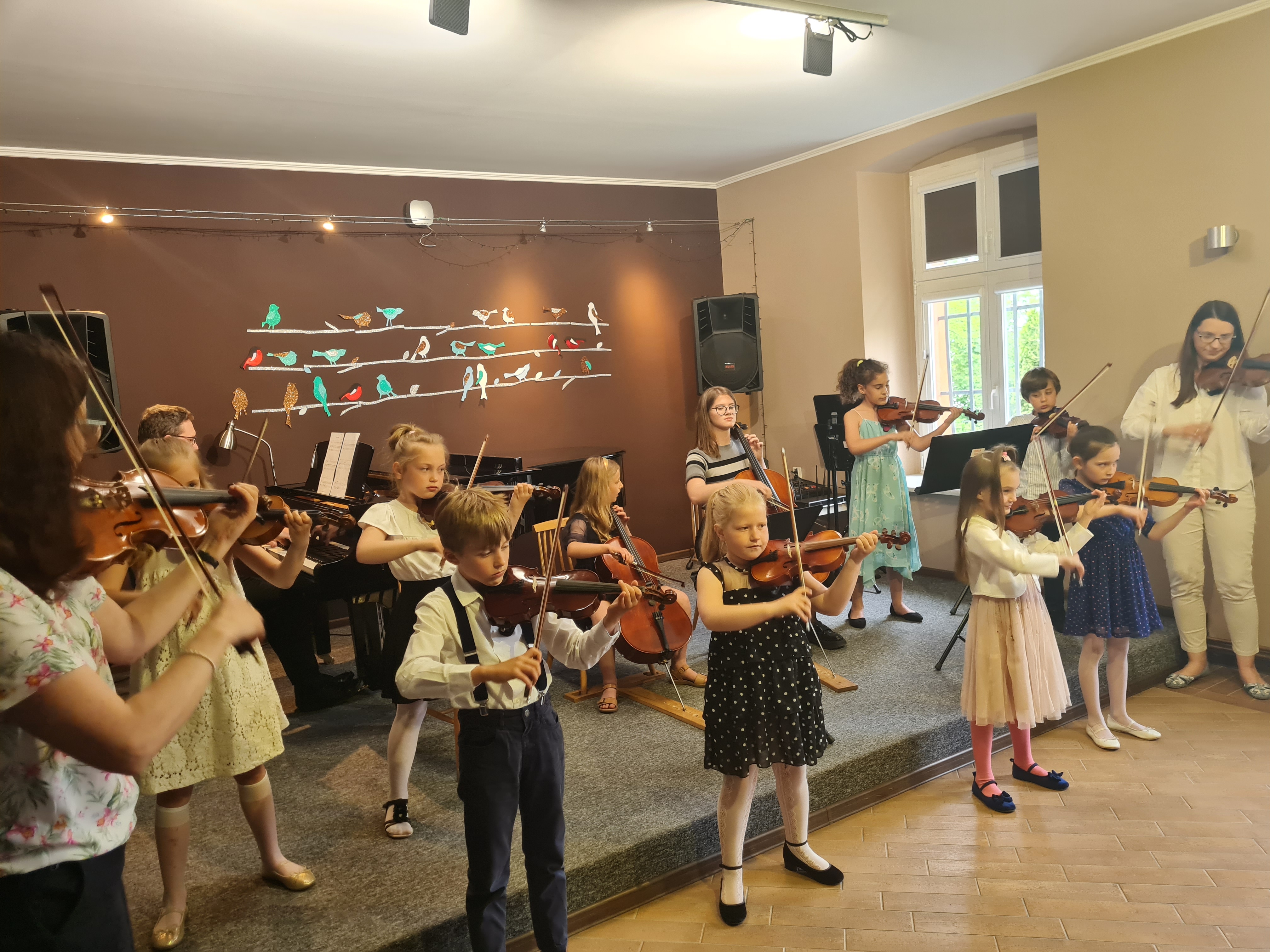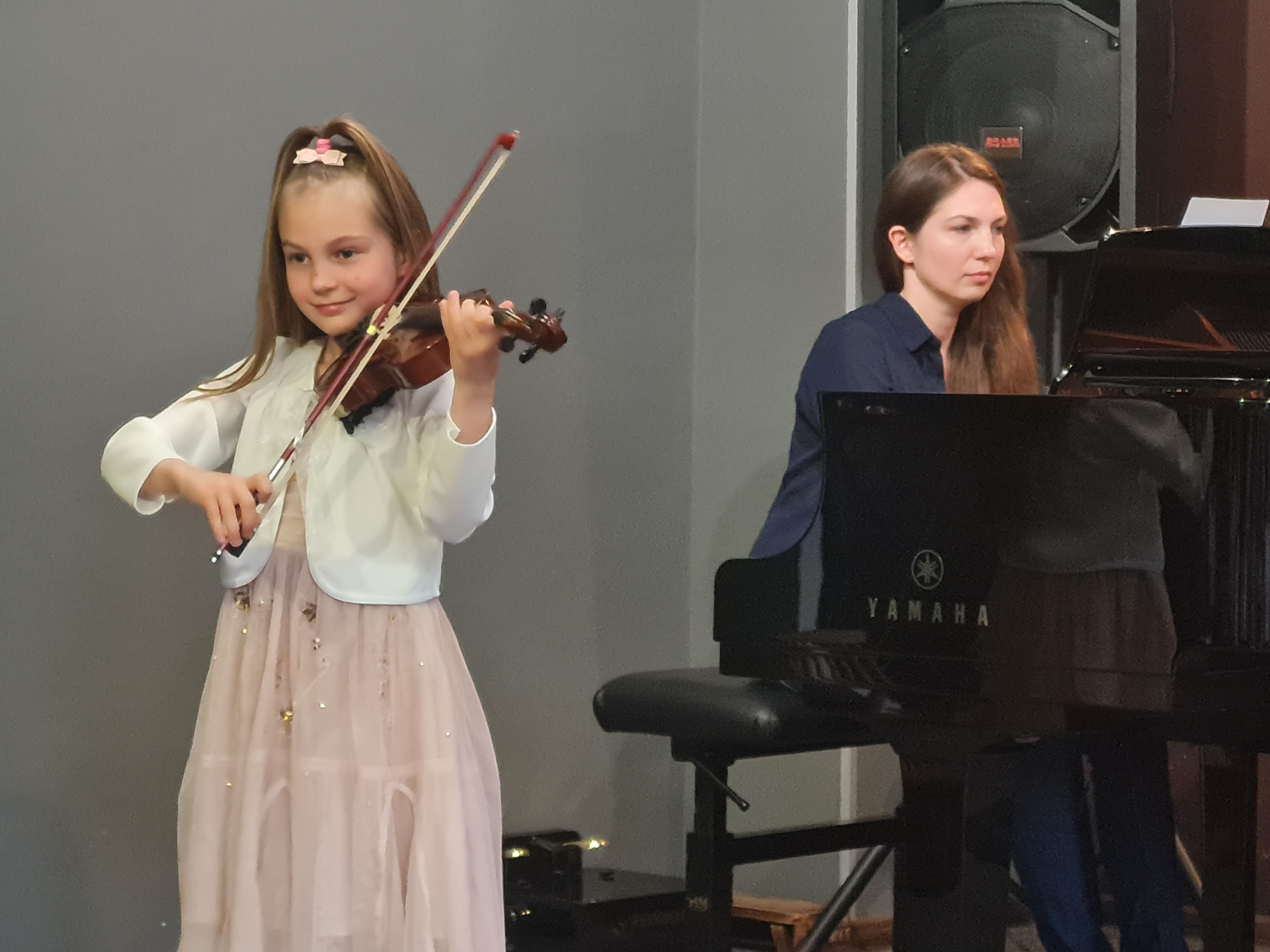 Skrzypkowie, wiolonczelistki i gitarzyści zagrali swój wielki KONCERT 1 KLASA. Na scenie wystąpiło 17 pierwszoklasistów: 6 skrzypaczek, 2 skrzypków, 2 wiolonczelistki, 3 gitarzystki, 4 gitarzystów. A do tego uczniowie przygotowali muzyczne niespodzianki - wszyscy gitarzyści wraz z nauczycielami wykonali "Wiosenny wietrzyk" Tatiany Stachak, a skrzypkowie (wraz z nauczycielkami) i wiolonczelistki wykonali "The First Boogie" Matuszewskiego. Młodym artystom na scenie towarzyszyli pianiści: p. Marcin Hinz i p. Filip Grzelachowski.