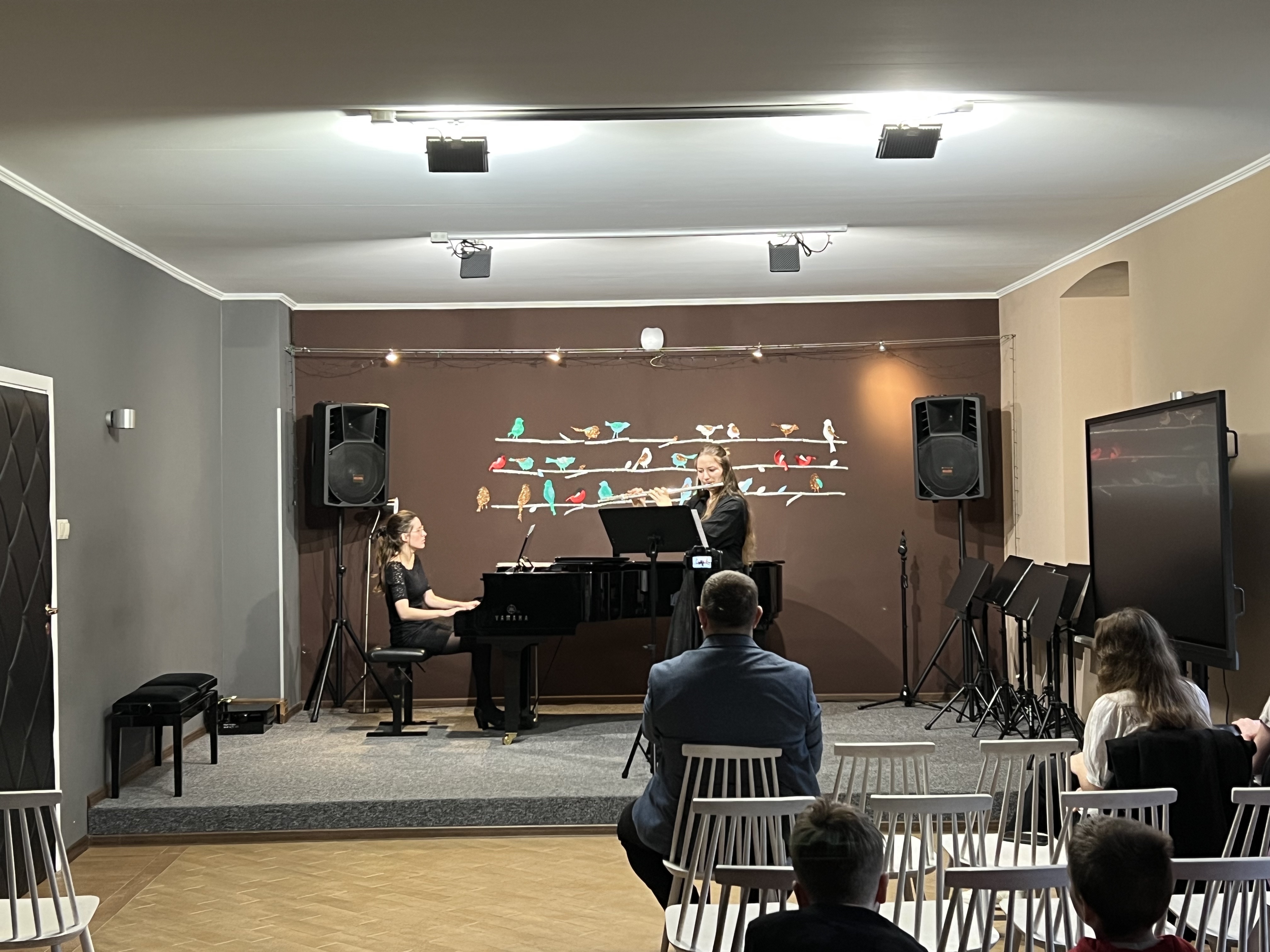26 marca 2025 r. do naszej szkoły po 6 latach nauki w II stopniu, powróciła z KONCERTEM, absolwentka klasy fletu mgr Moniki Tamulewicz - WERONIKA ZABOROWSKA. W jej wykonaniu usłyszeliśmy: Giovanni Battista Pergolesi - Koncert G-dur (cz.I - Spiritoso, cz. II - Adagio, cz. III - Allegro spiritoso), Eugene Bozza - Aria, Wojciech Kilar - Sonatina (cz. I - Allegro, cz. II - Andante con moto, cz. III - Rondo-Allegro). Weronice przy fortepianie towarzyszyła p. Justyna Korpak.