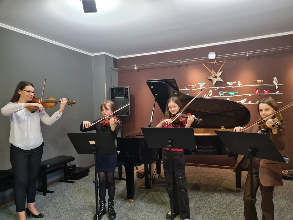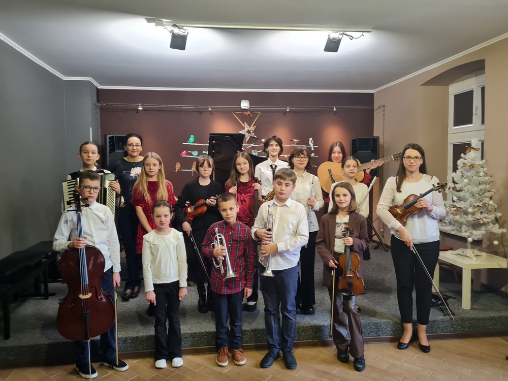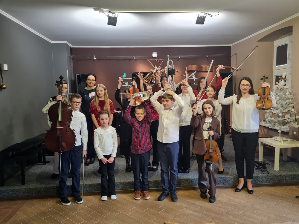 10 stycznia 2023 r. w naszej szkole odbył się drugi Koncert kolęd dla przedszkolaków i uczniów z Tczewa. Naszą szkołę odwiedzili uczniowie ze Szkoły Podstawowej nr 12 i Nr 5 oraz przedszkolaki z Przedszkola Chatka Puchatka oraz Przedszkola "Pan Słonik". Atmosfera była prawdziwie świąteczna: wspólne śpiewanie kolęd i pastorałek, uśmiechy i wielkie brawa publiczności, radość z muzykowania wśród naszych uczniów - wykonawców koncertu. Na scenie wystąpili: Jerzy Kiedrowski, Konstanty Liss, Maja Midura, Julianna Pienihakkinen, Paulina Kaptur, Jan Mania, Łucja Kowal, Iga Skórka, Maria Netka, Julia Allaut, Iga Bakuła, Agata Sikorska, Martyna Gorlikowska oraz dwie nauczycielki: pianistka p. Alicja Hawryluk i skrzypaczka p. Marta Kołodziejska-Kacprzak. Dla naszych gości była to też lekcja muzyki o instrumentach tj.: fortepian, skrzypce, akordeon, wiolonczela, trąbka, flet poprzeczny, gitara, saksofon. Koncert prowadziła p. Marta Kołodziejska-Kacprzak. Miłą, słodką, pokoncertową niespodziankę przygotowali zaproszeni goście dla wykonawców - nasi uczniowie poczuli się bardzo docenieni :)