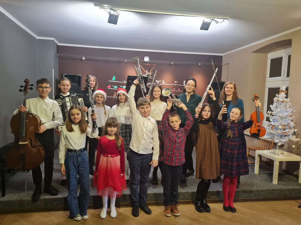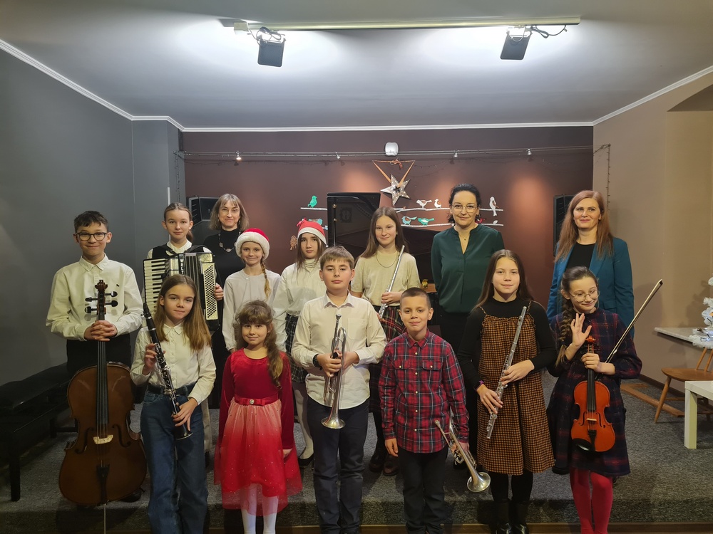 9 stycznia 2023 r. naszą szkołę odwiedzili uczniowie ze Szkoły Podstawowej nr 5 oraz przedszkolaki z Przedszkola Sióstr Miłosierdzia Bożego oraz Przedszkola Chatka Puchatka. Zaprosiliśmy ich na "Koncert kolęd". Atmosfera była prawdziwie świąteczna: wspólne śpiewanie kolęd i pastorałek, uśmiechy i wielkie brawa publiczności, radość z muzykowania wśród naszych uczniów - wykonawców koncertu. Na scenie wystąpili: Julita Zduńczyk, Kornelia Dunajska, Rozalia Kamrowska, Aleksandra Wołoszyk, Antonina Grzybek, Karolina Kuczyńska, Jerzy Kiedrowski, Konstanty Liss, Franciszek Panek, Maja Midura, Amelia Szwoch oraz dwie nauczycielki - pianistki p. Alina Dombrowska i p. Alicja Hawryluk. Dla naszych gości była to też lekcja muzyki o instrumentach tj.: fortepian, skrzypce, akordeon, wiolonczela, klarnet, trąbka, flet poprzeczny. Koncert prowadziła p. Anna Bukowska.