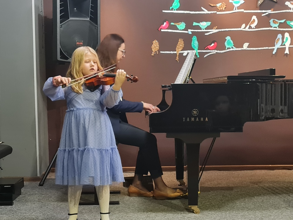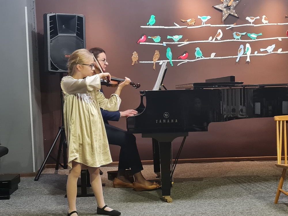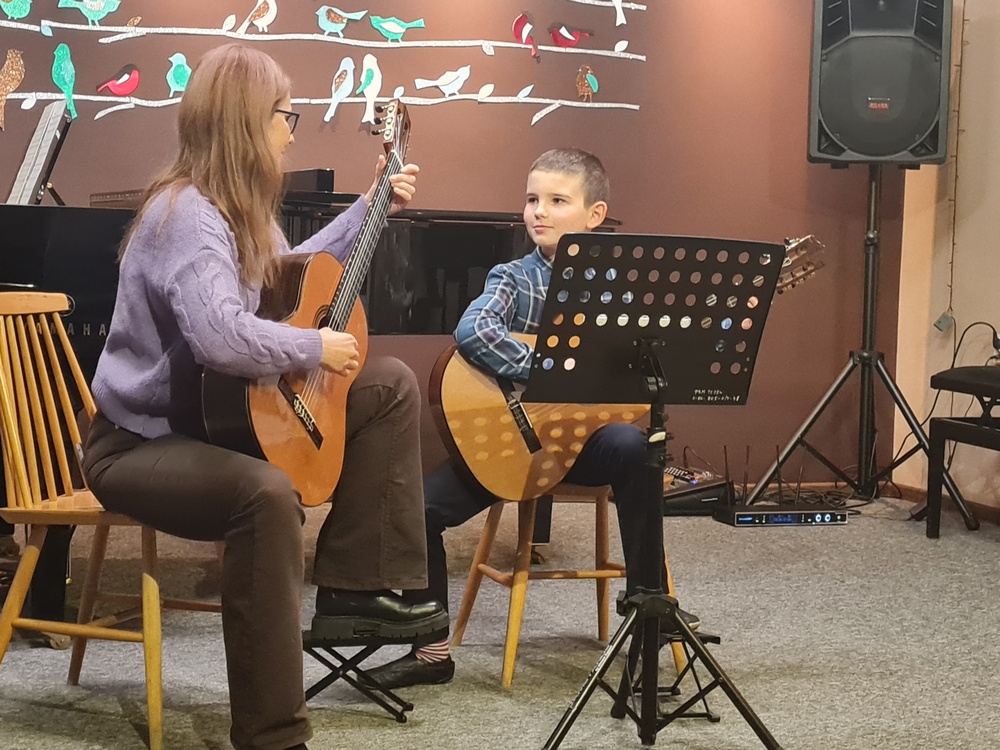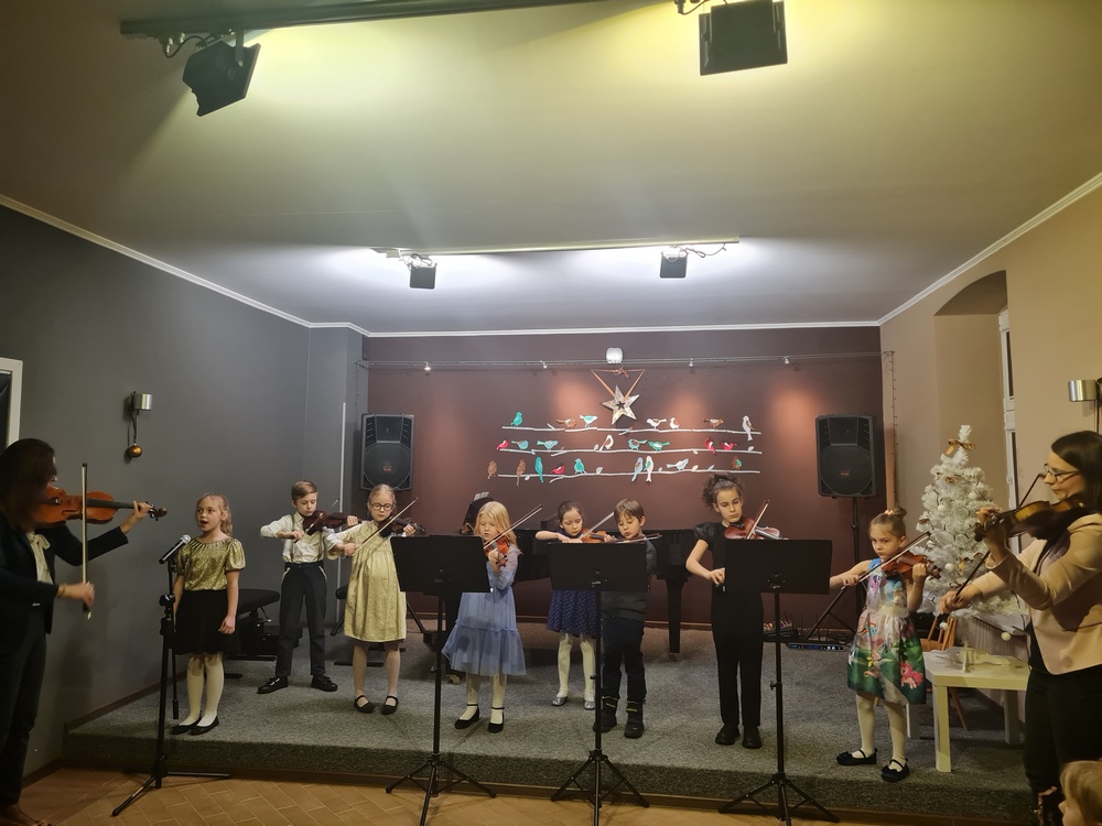 Koncert klas 1 uczniów z sekcji strunowej odbył się 12 stycznia 2023 r. o godzinie 16:30 w sali koncertowej PSM w Tczewie. Publiczność wypełniła salę po brzegi, a na scenie zaprezentowali się skrzypkowie: Milena, Miroslava, Aniela, Filip, Kajetan, Marysia, Liwia, Nadia z klasy skrzypiec p. Marty Kołodziejskiej-Kacprzak i p. Aldony Śmietańskiej oraz gitarzyści: Maria, Oskar, Oliwia, Jakub, Stanisław, Liliana, Aleksander z klasy gitary p. Anny Bukowskiej i p. Antoniego Jędrzejewskiego. Każdy z uczniów zaprezentował utwór dowolny, a na koniec najpierw wszyscy skrzypkowie wraz z nauczycielkami wykonali wspólnie kolędę "Wśród nocnej ciszy", a następnie do skrzypków dołączyli gitarzyści i cała publiczność by stworzyć największy chór w Tczewie i wspólnie kolędować. Prowadzeniem koncertu zajęła się kierownik sekcji - p. Marta Kołodziejska-Kacprzak.